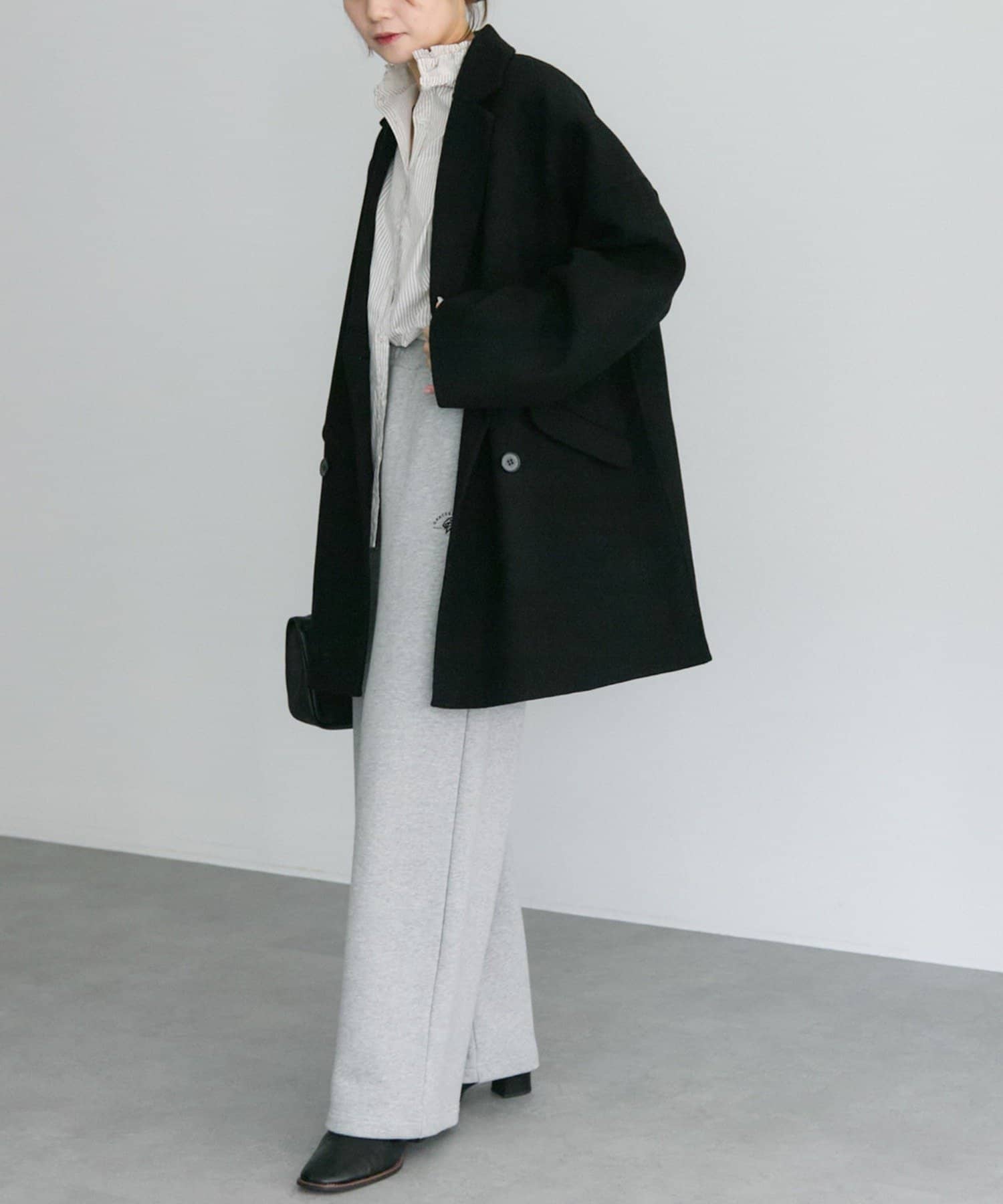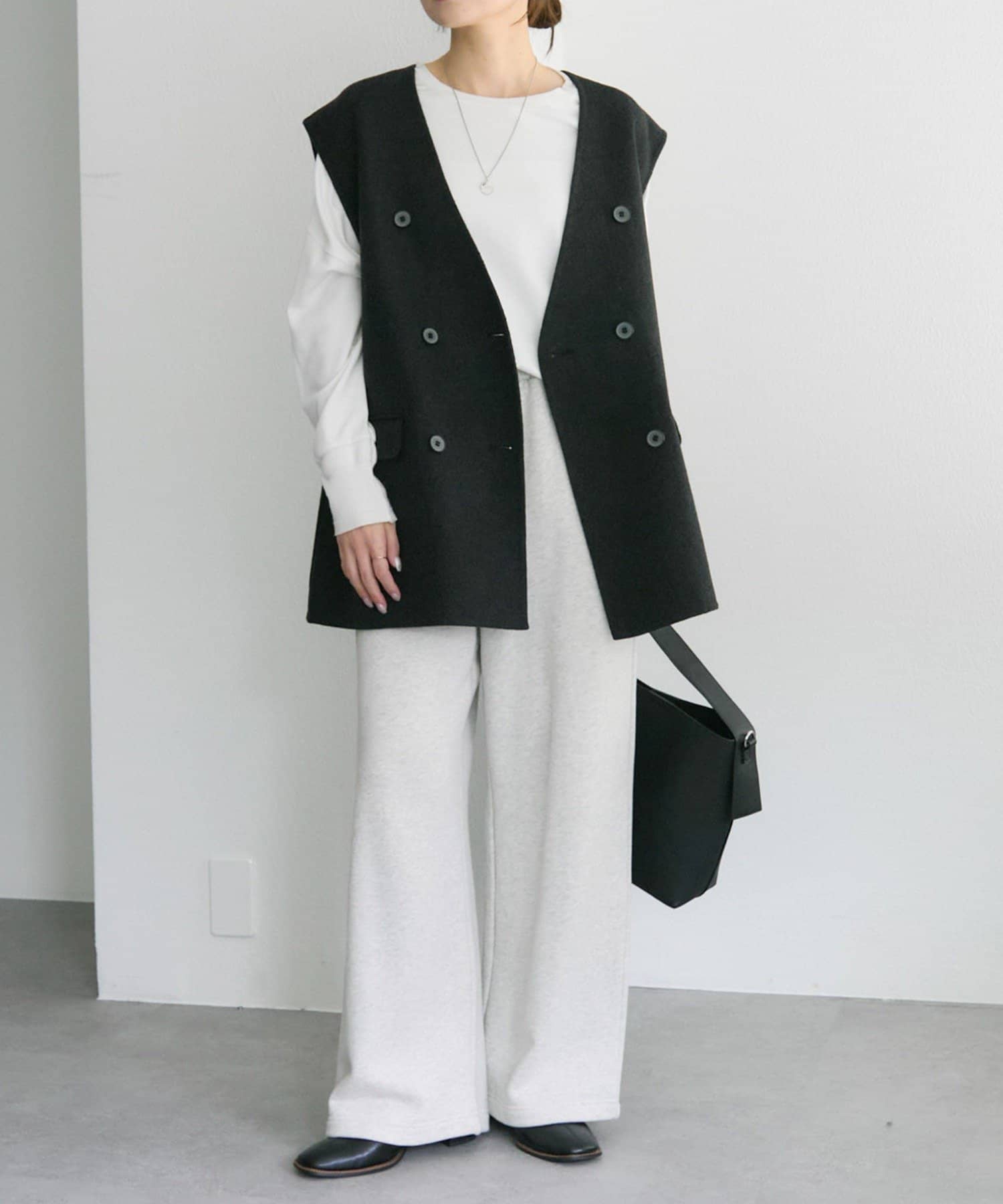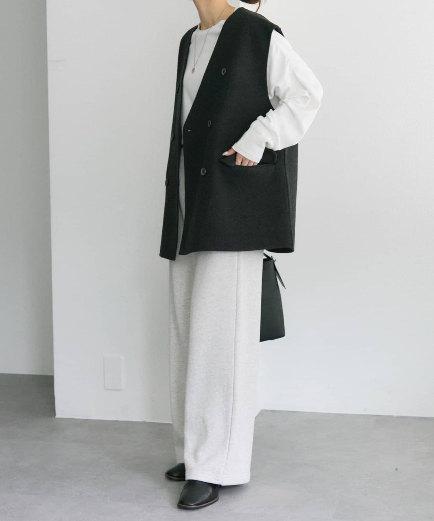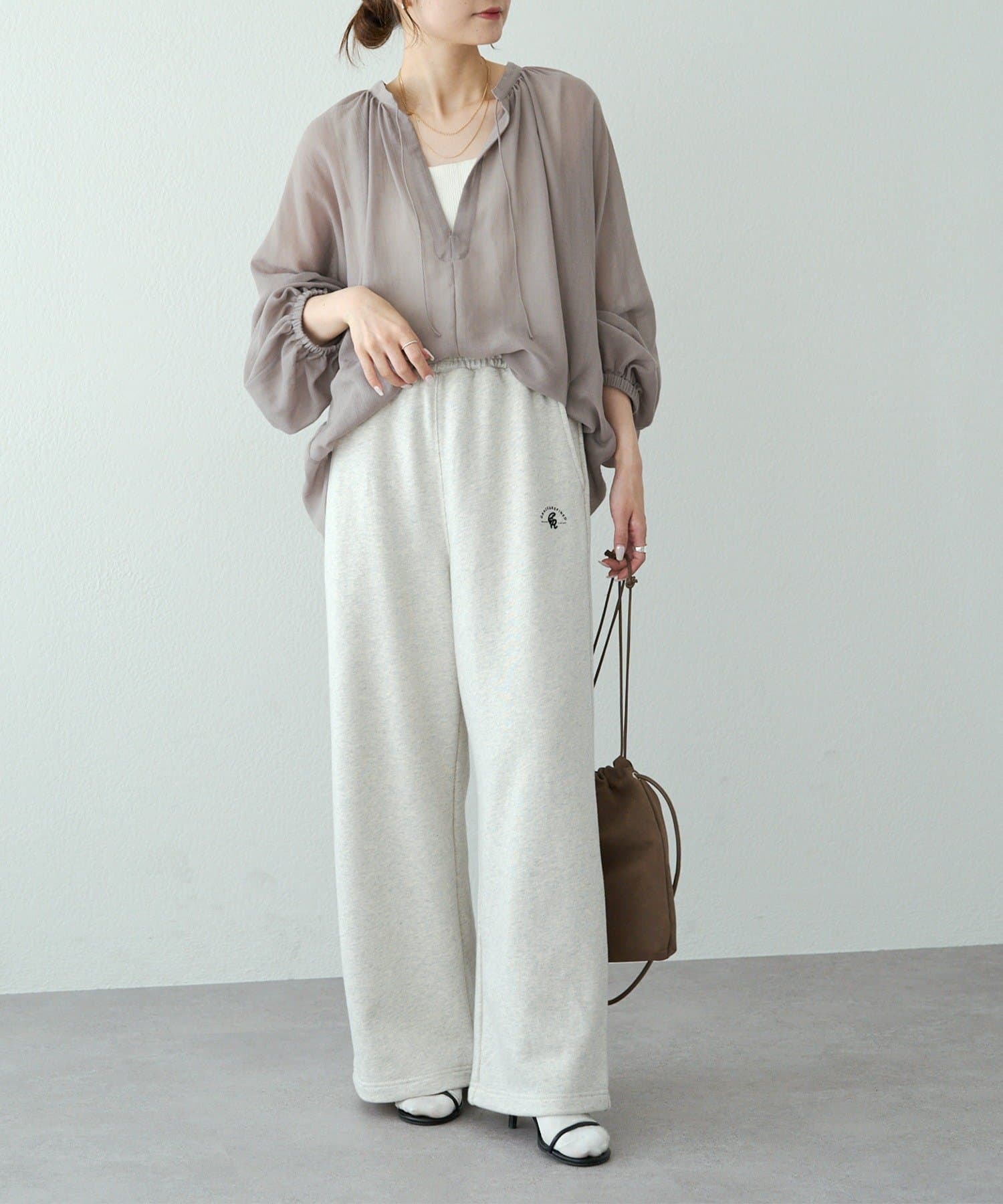 滑らかな表面感でカジュアルなスウェット生地もキレイ見えし、大人カジュアルスタイルにハマるアイテムに。
