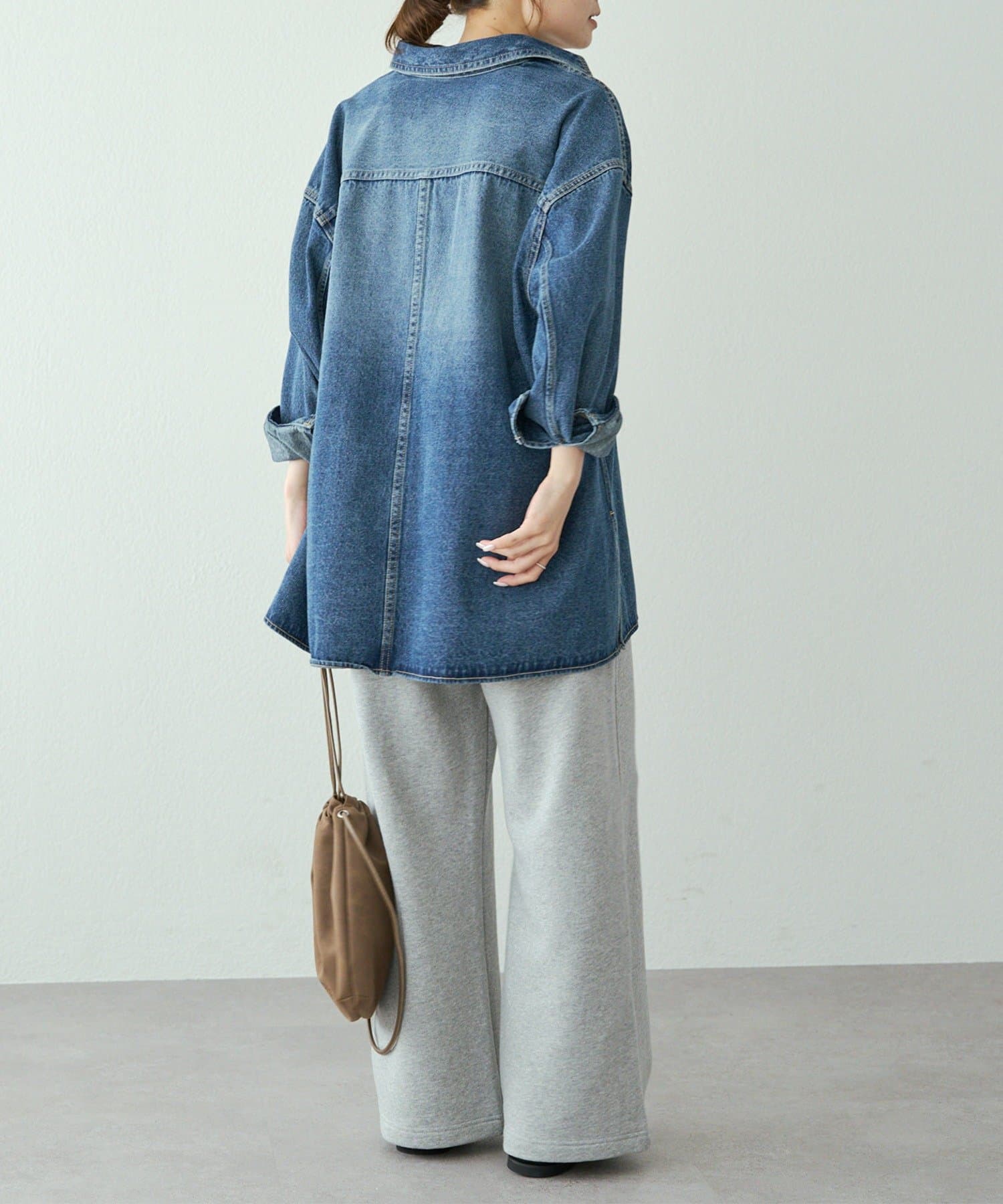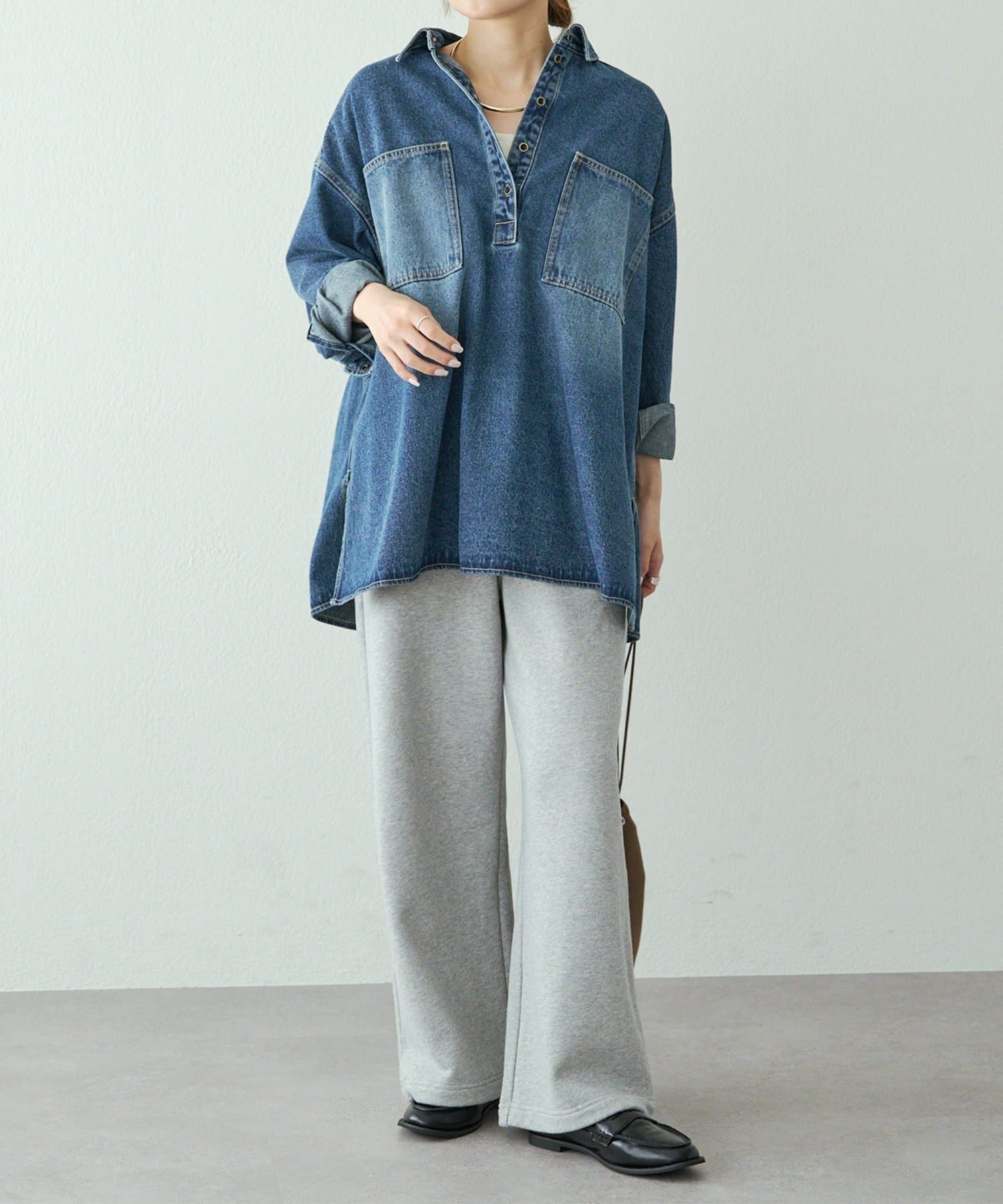 デニムシャツやボーダーカットソーなどのトップスでカジュアルな装いから、