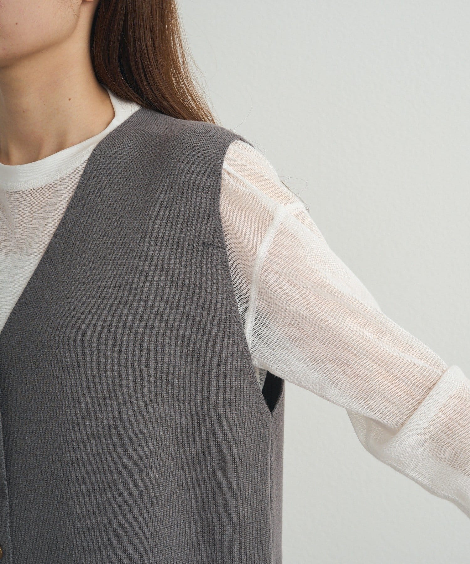サラッとした軽やかな触り心地の12Gで編まれたニット生地。