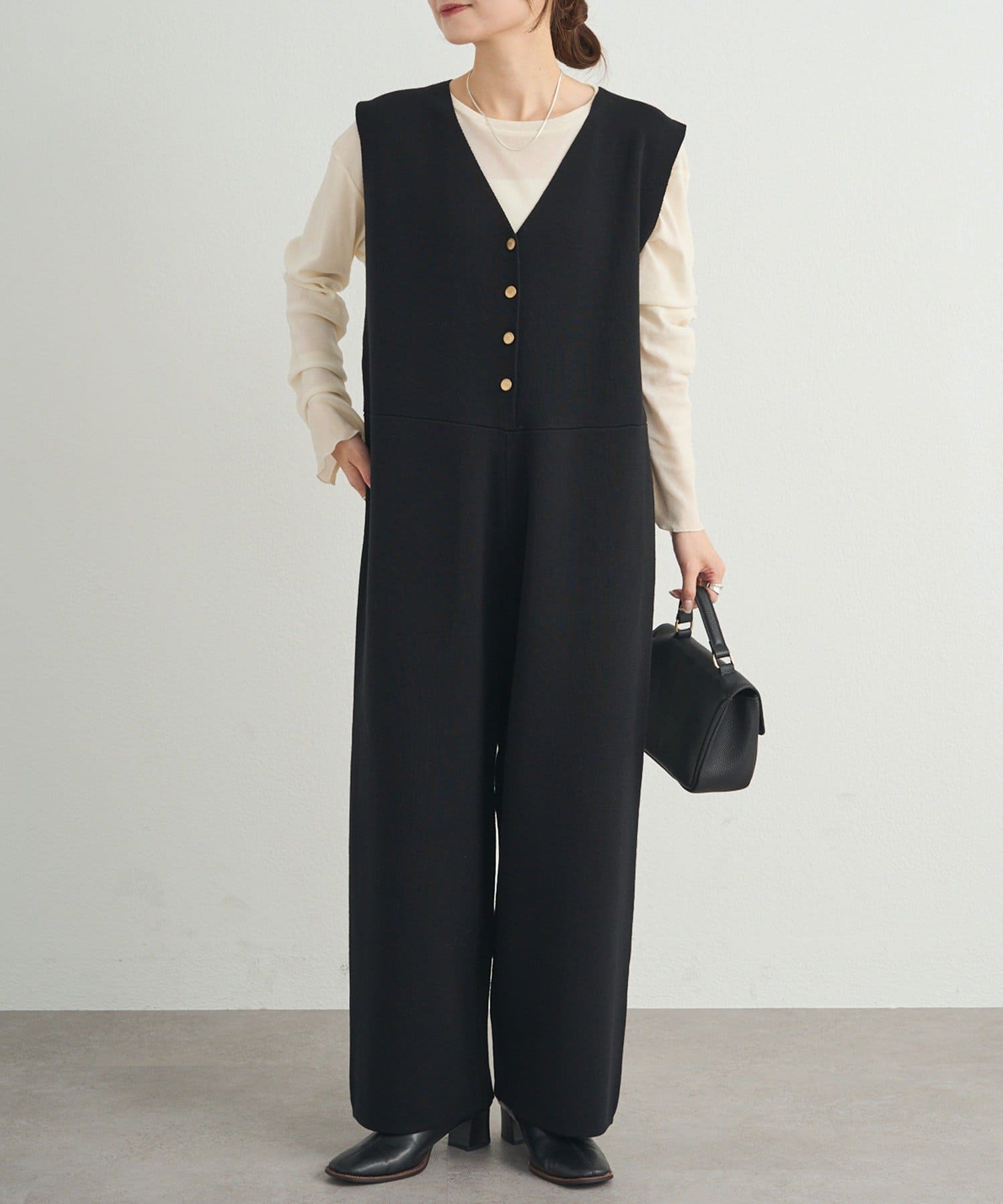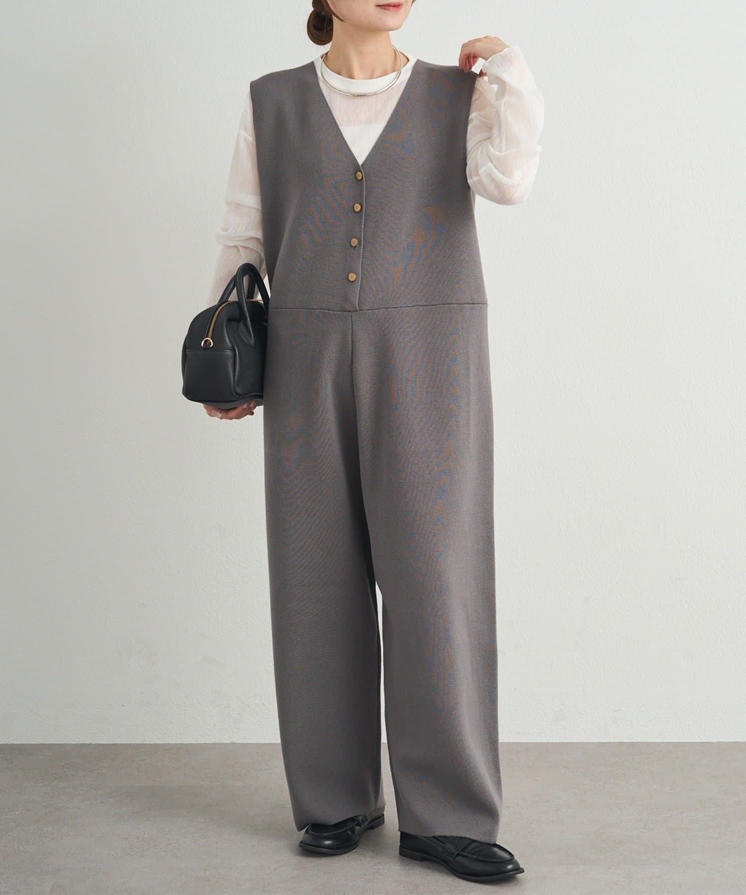 ニット特有のストレッチ性があり、着心地抜群なサロペットは、オンオフ問わず着まわせるキレイめアイテムです。