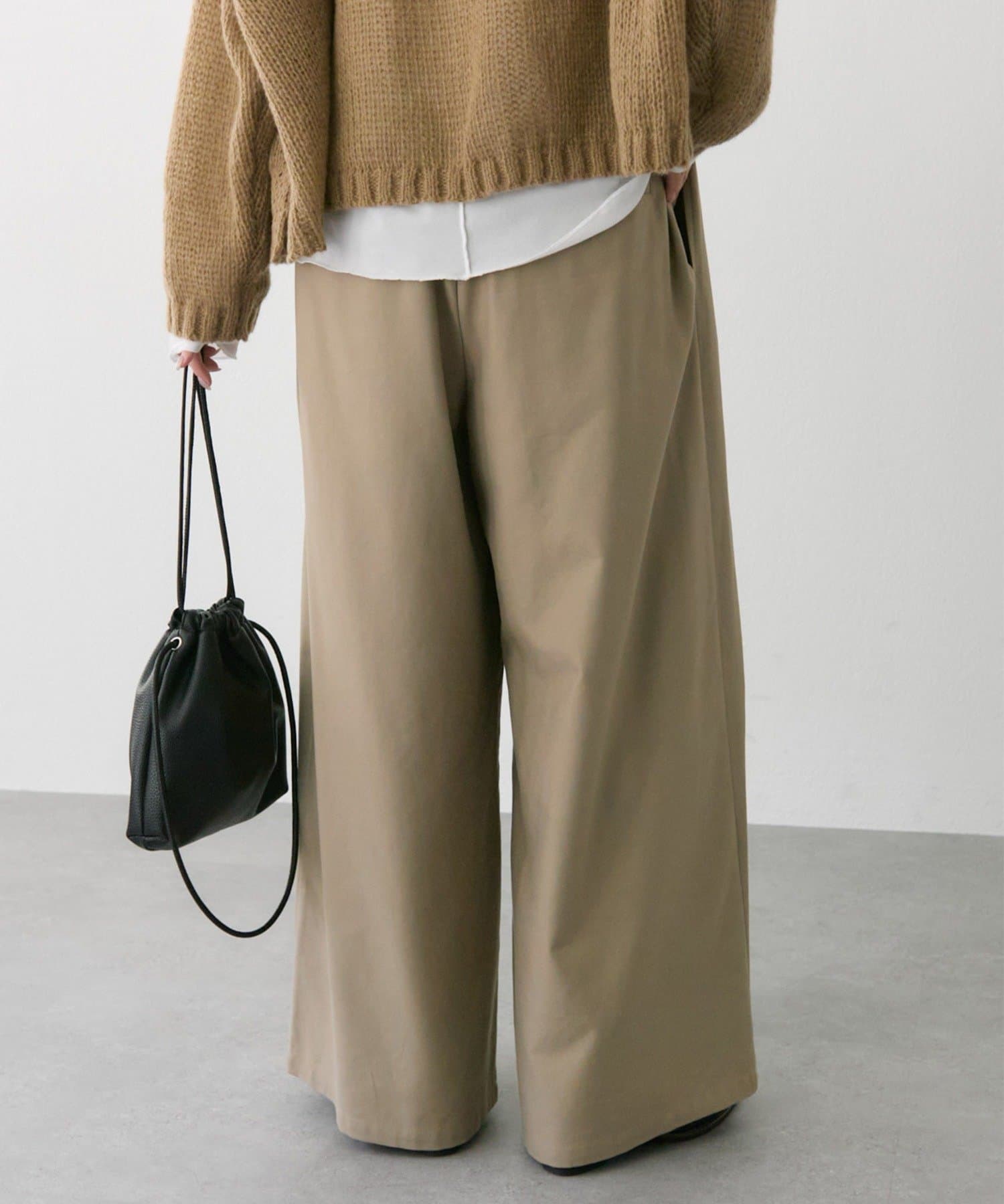ゆったりとしたワイドシルエットにウエストのサイドゴムでリラクシーな履き心地◎