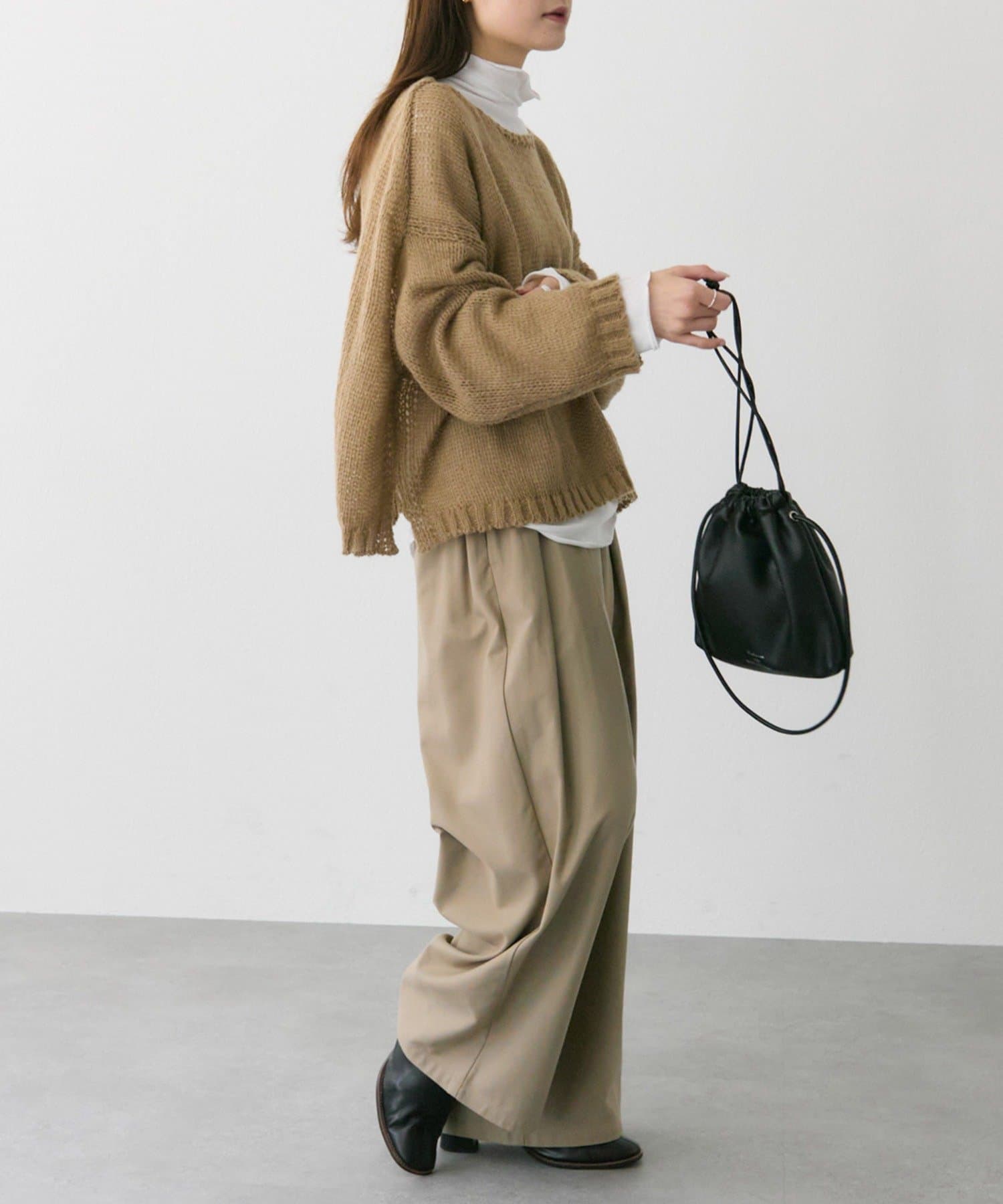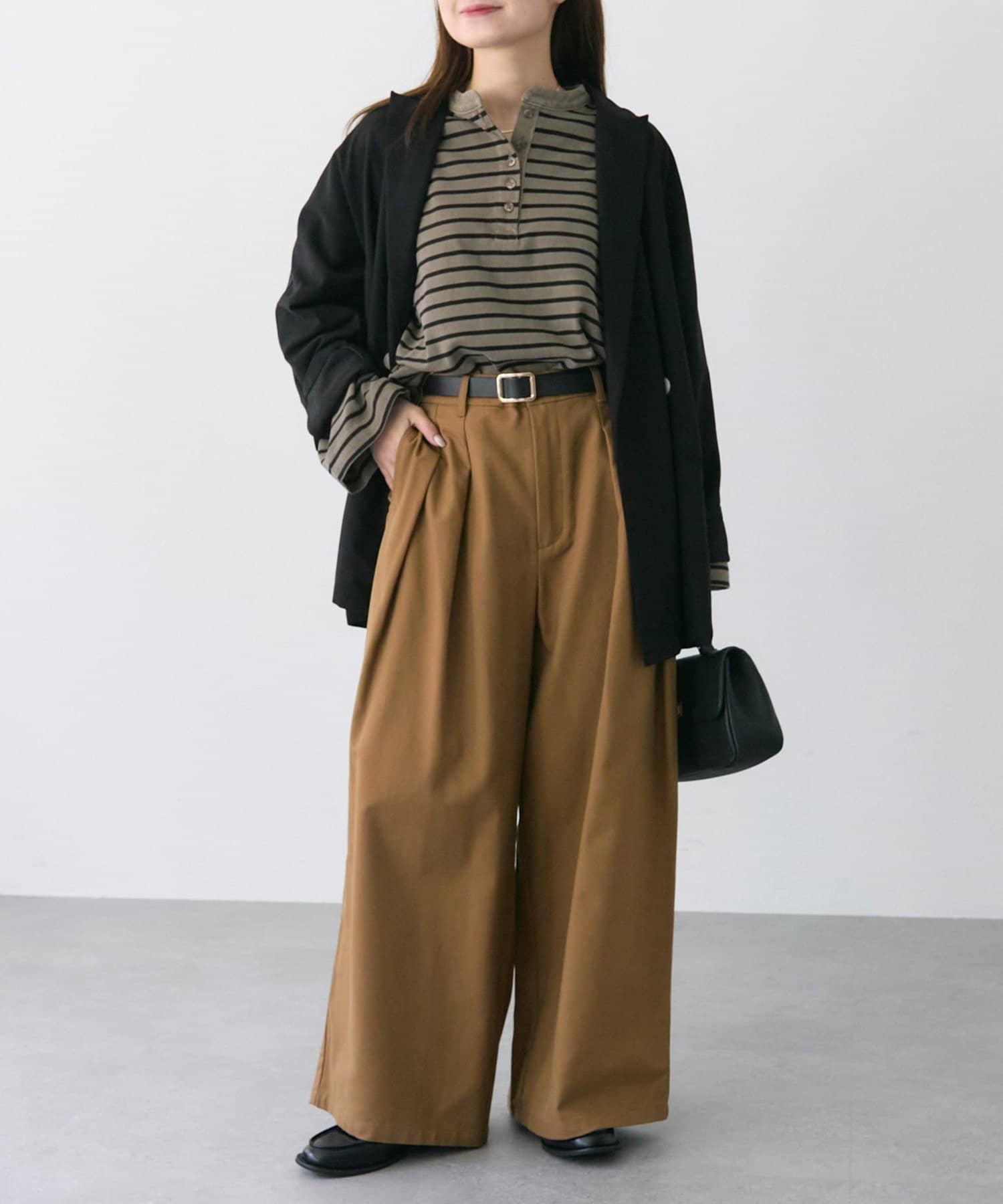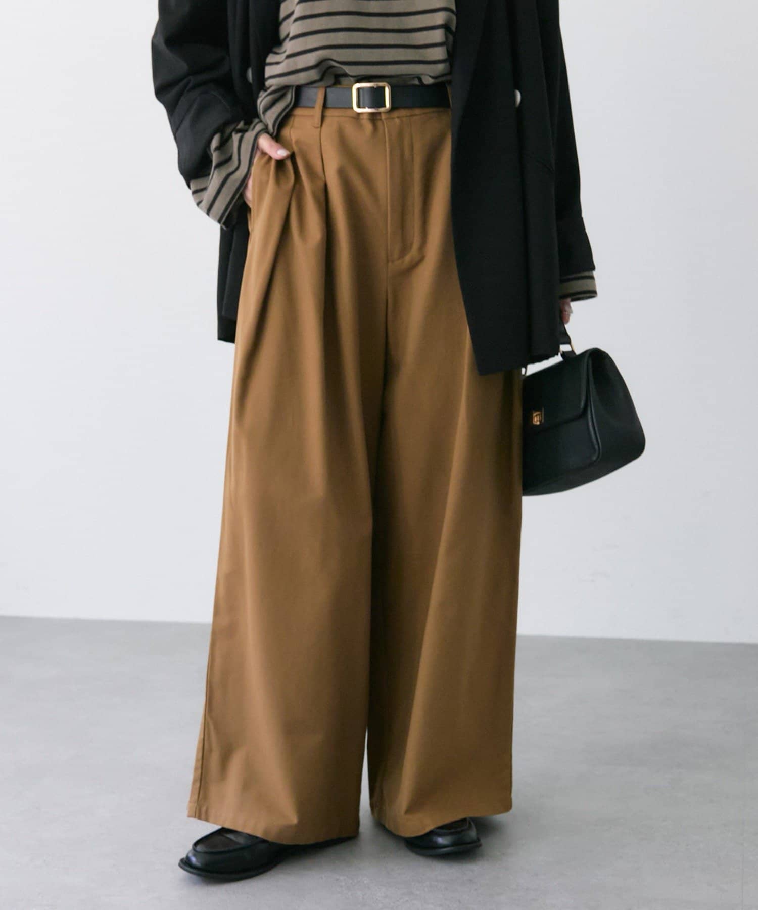 ベルトでウエストマークをするとワイドなシルエットにもメリハリがつきオススメです。