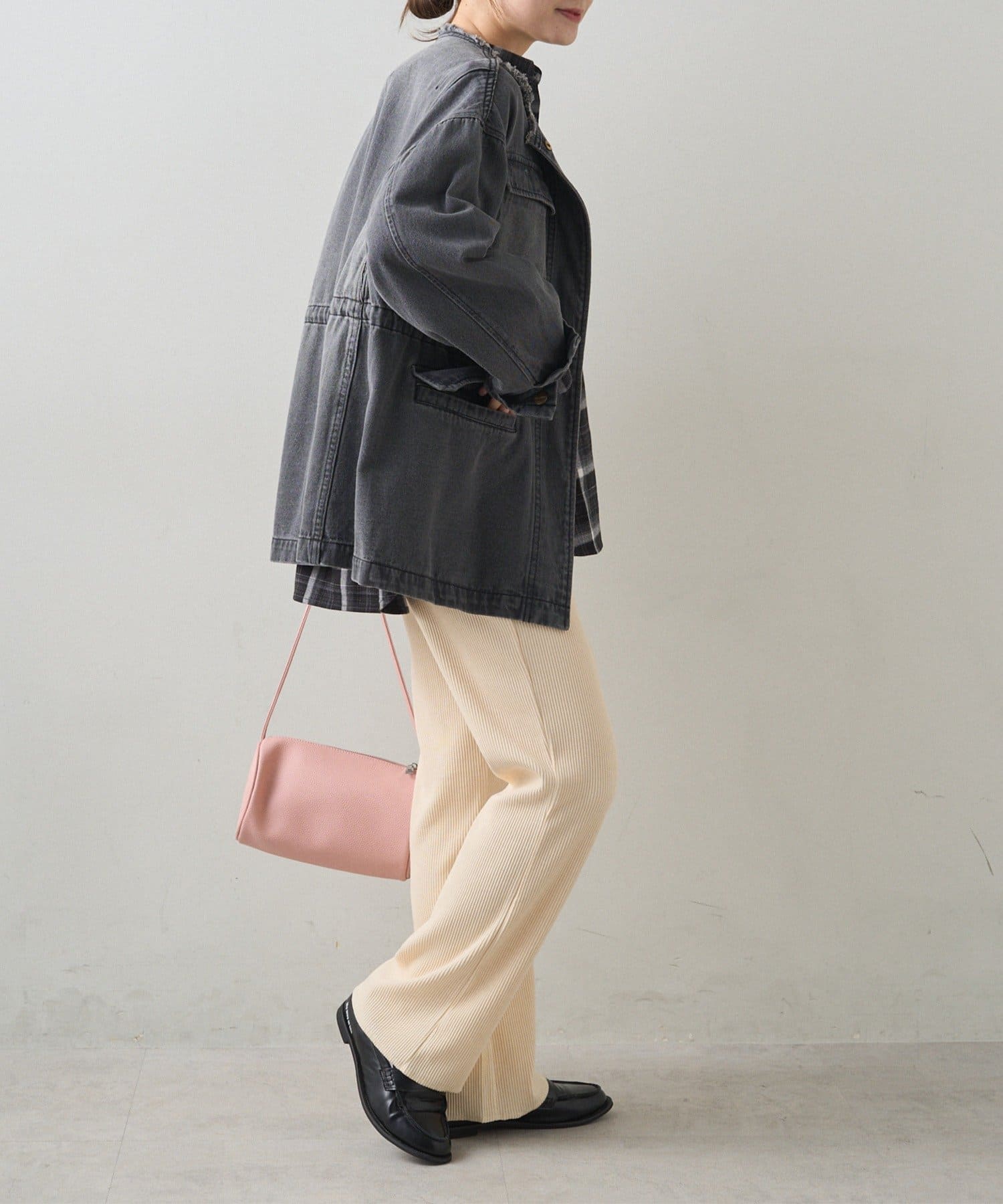 すっきりとしたパンツはワンピースとのレイヤードもしやすく今年らしく仕上がります。