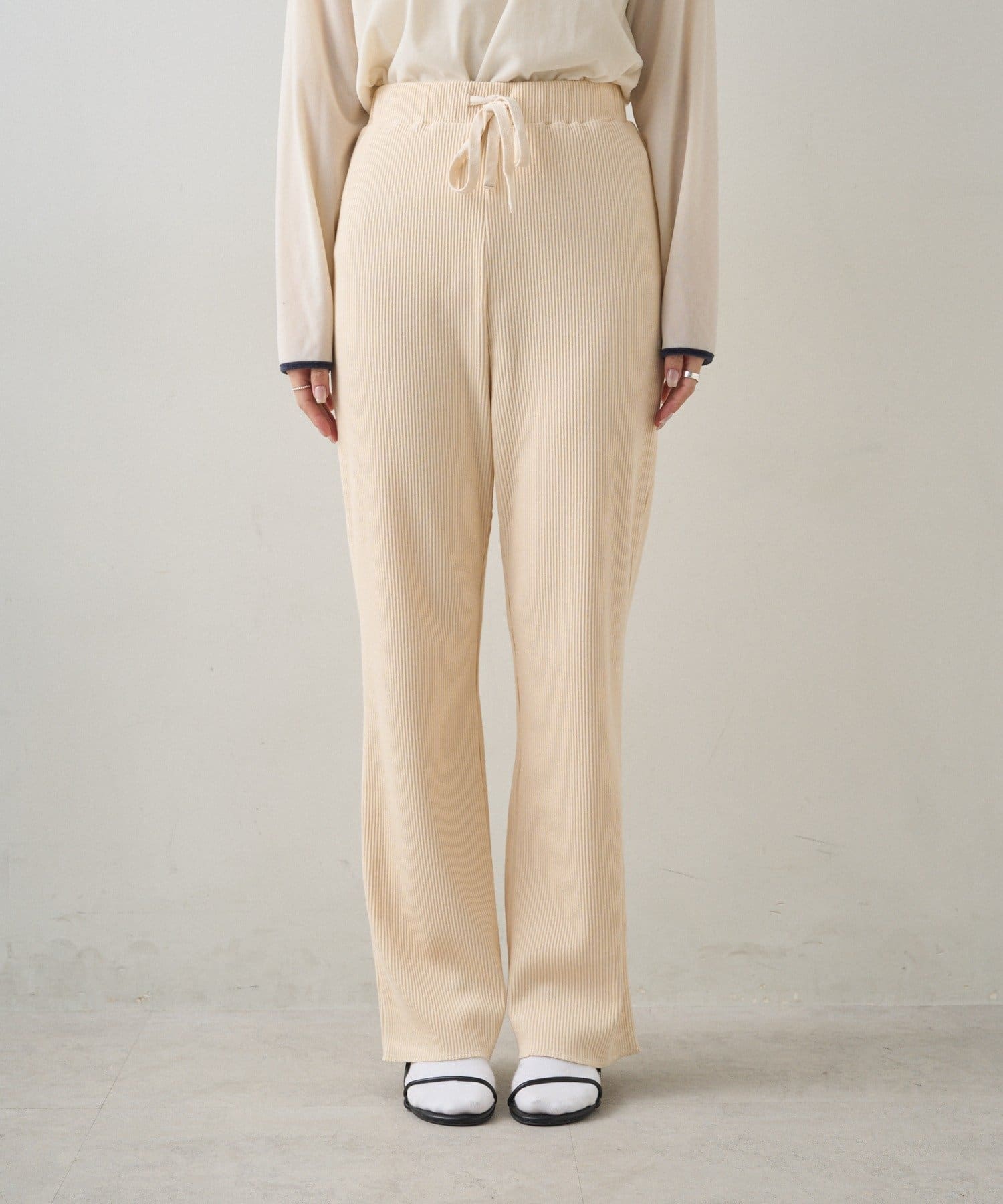 カジュアルながらもどこか上品さが漂う履き心地の良いリブパンツは、