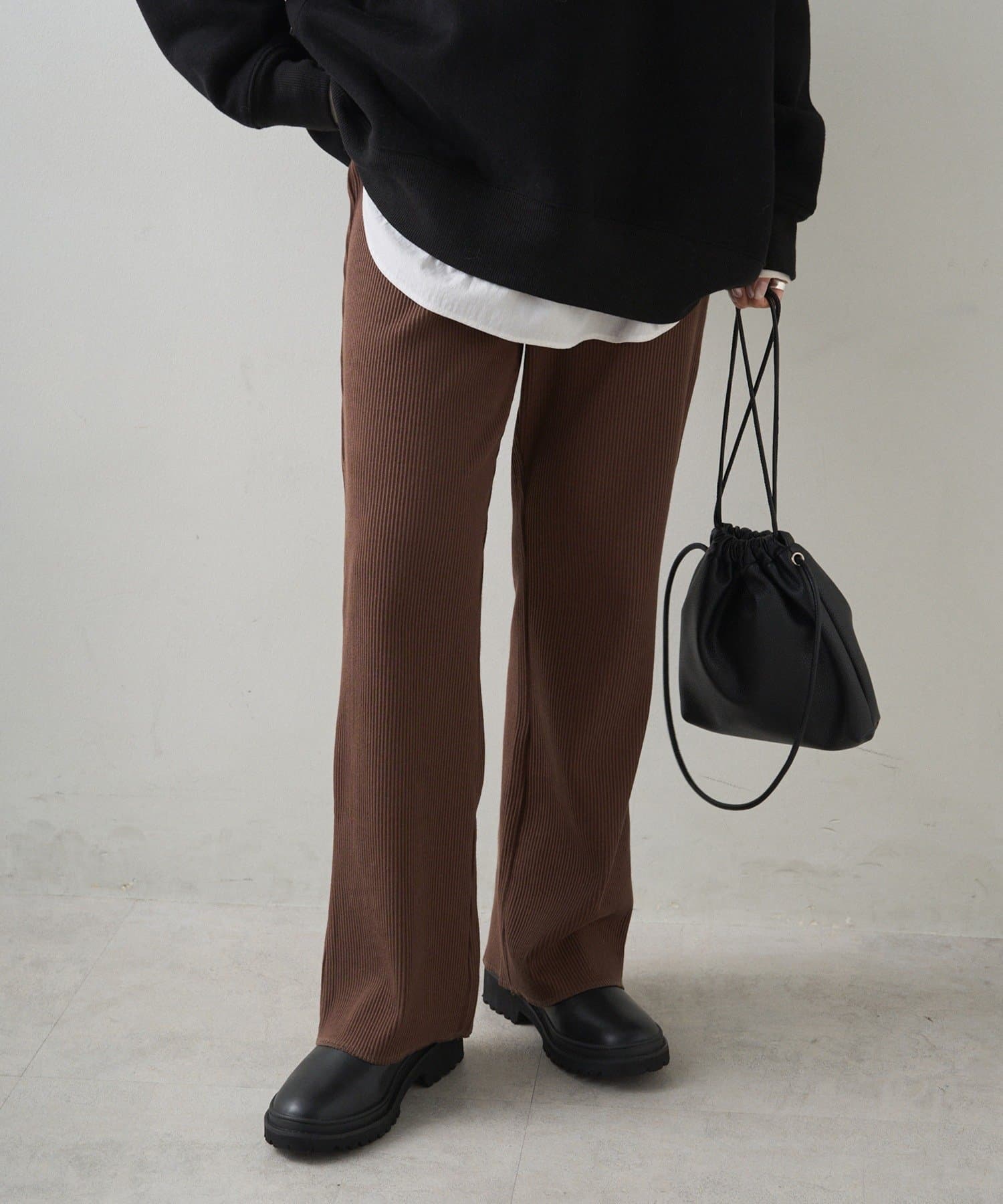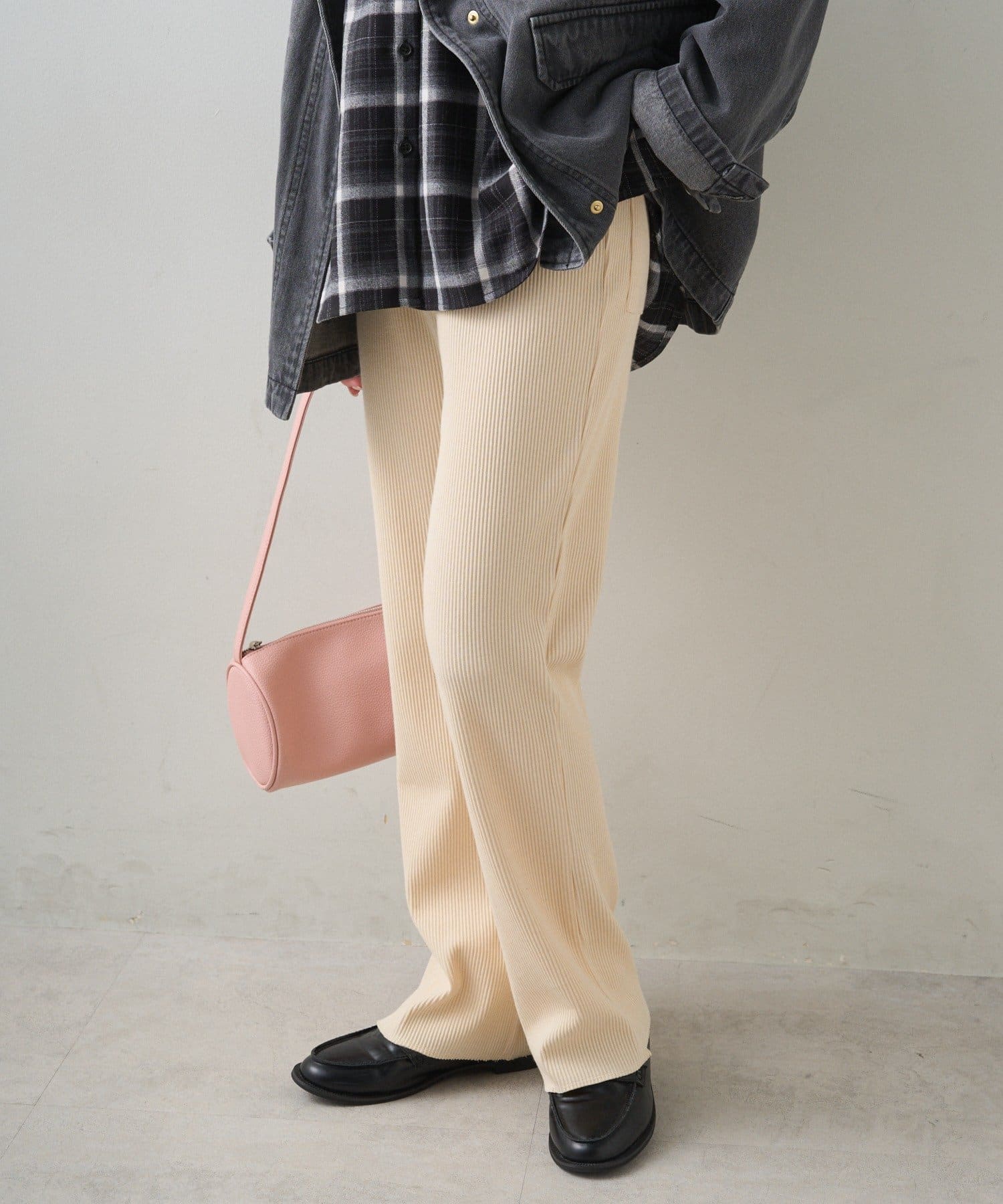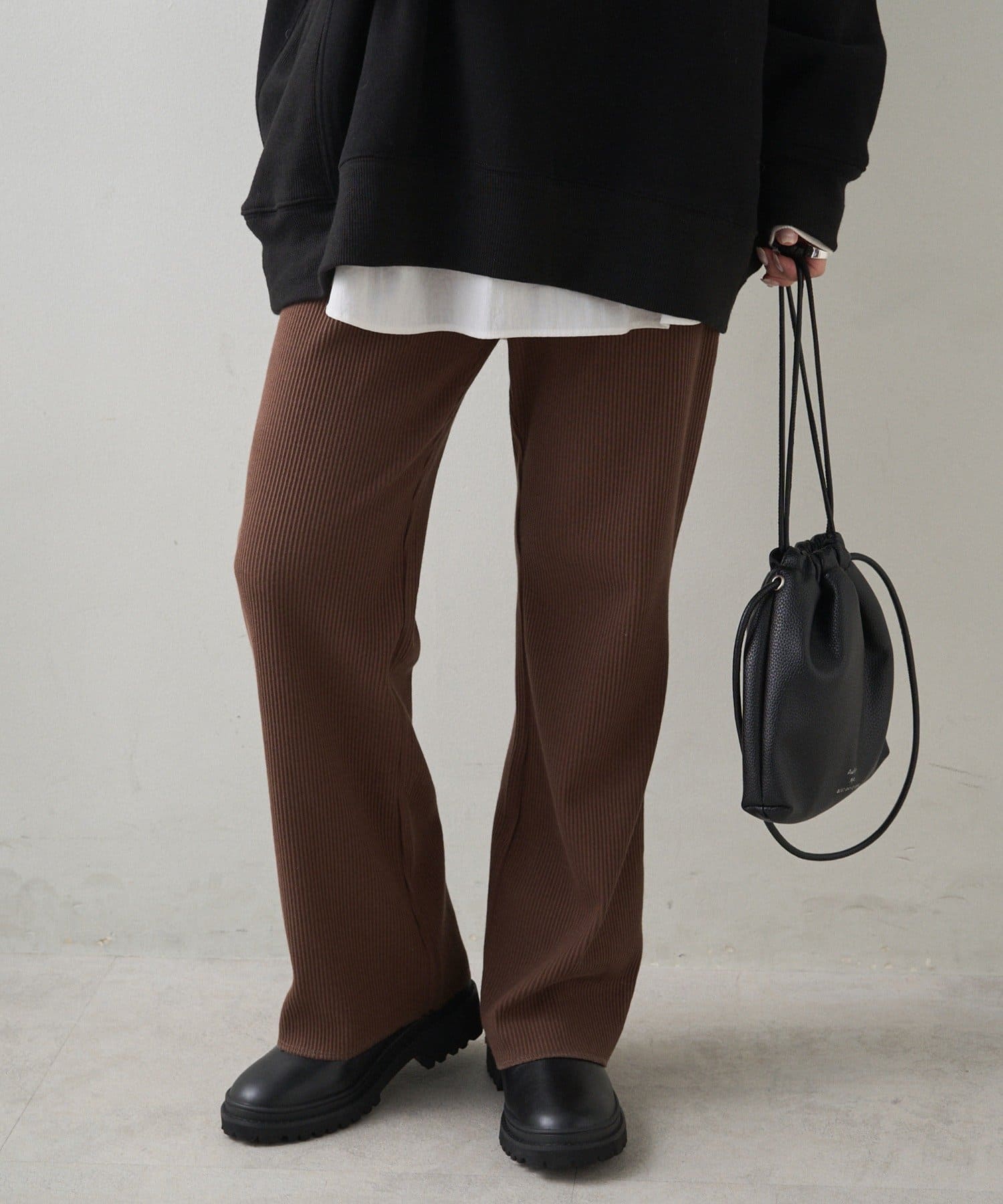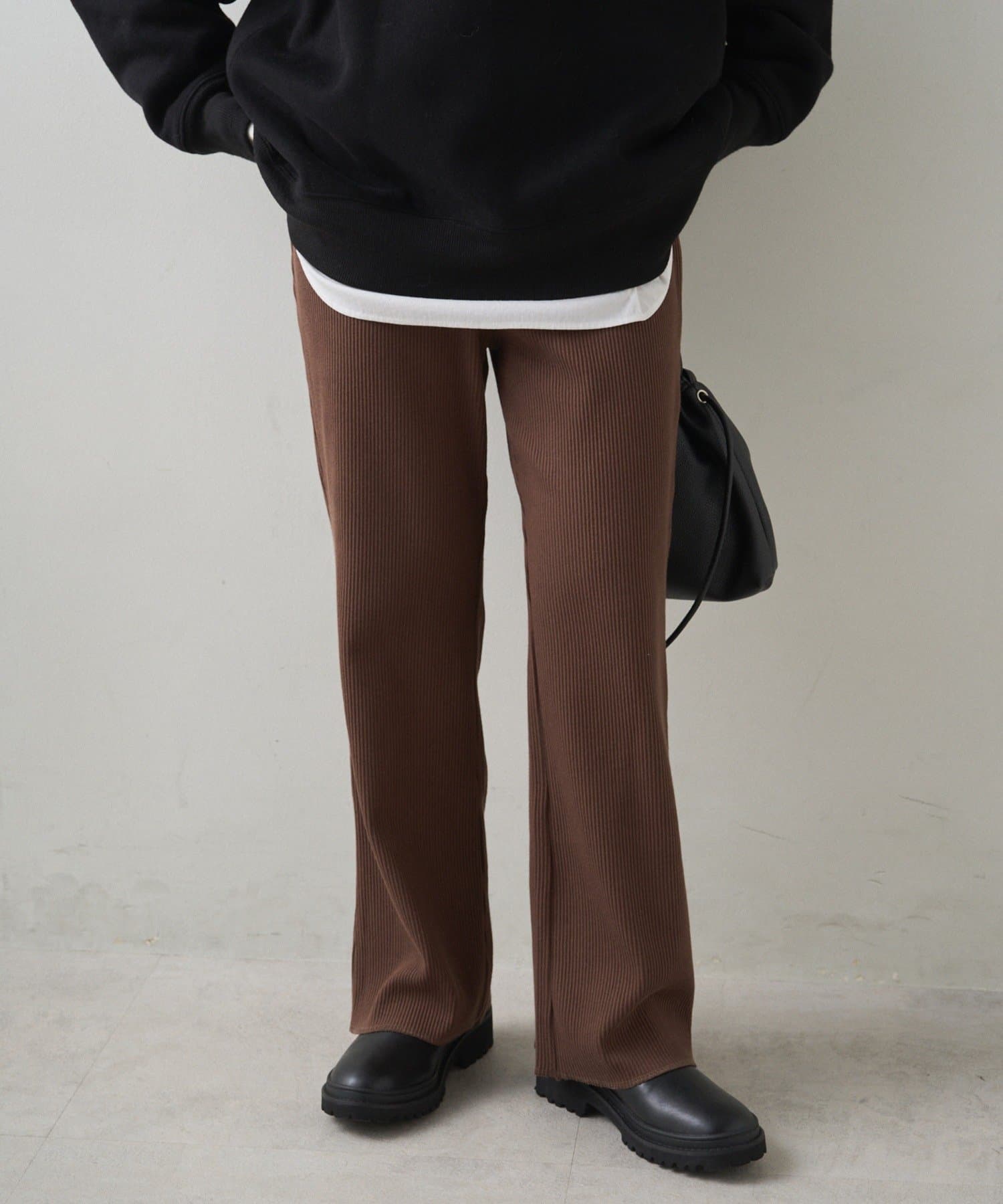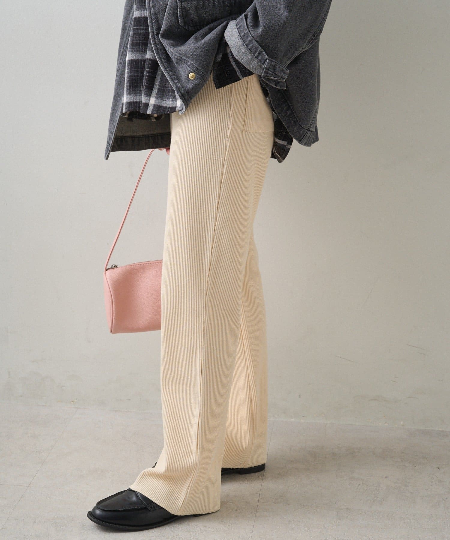 無駄を省いたシンプルなデザインで着回ししやすいリブパンツ。