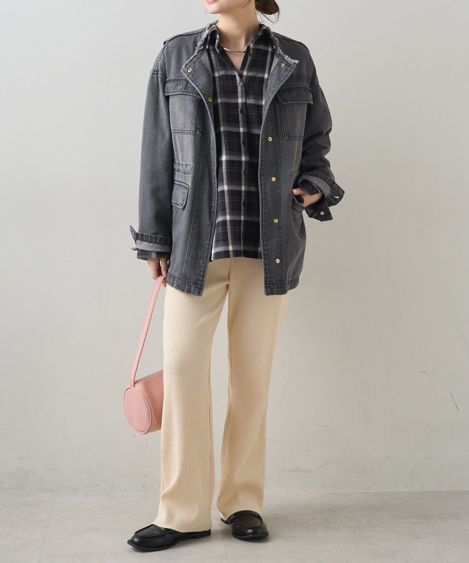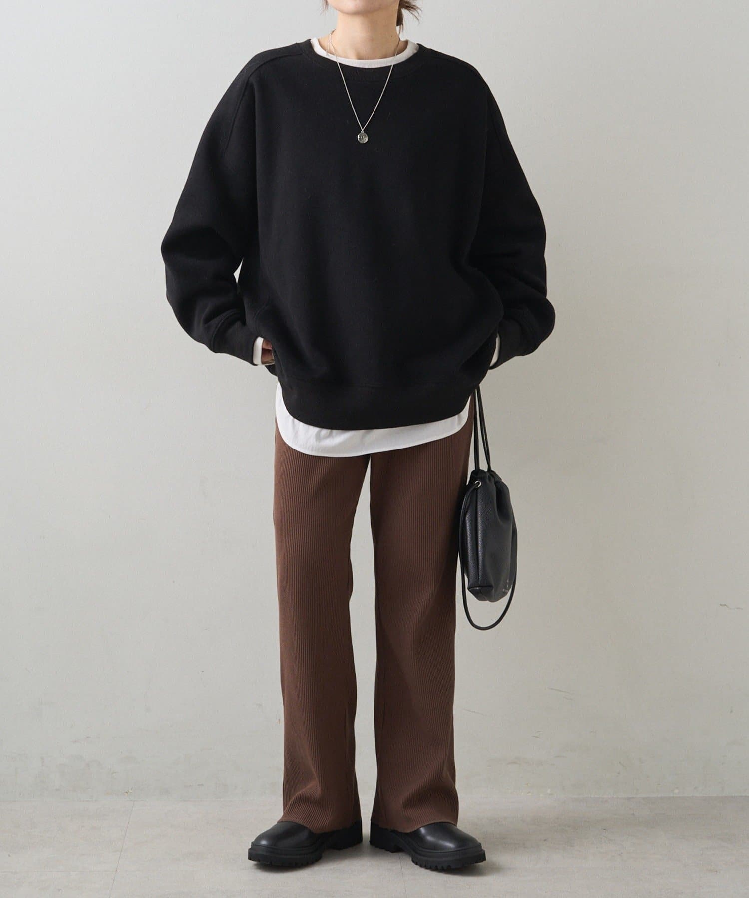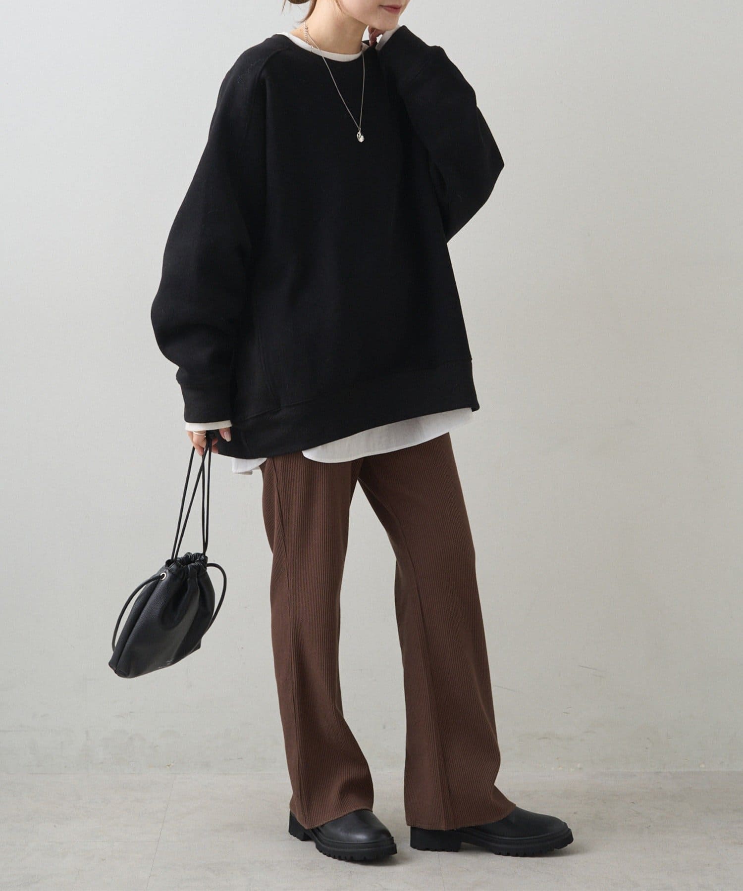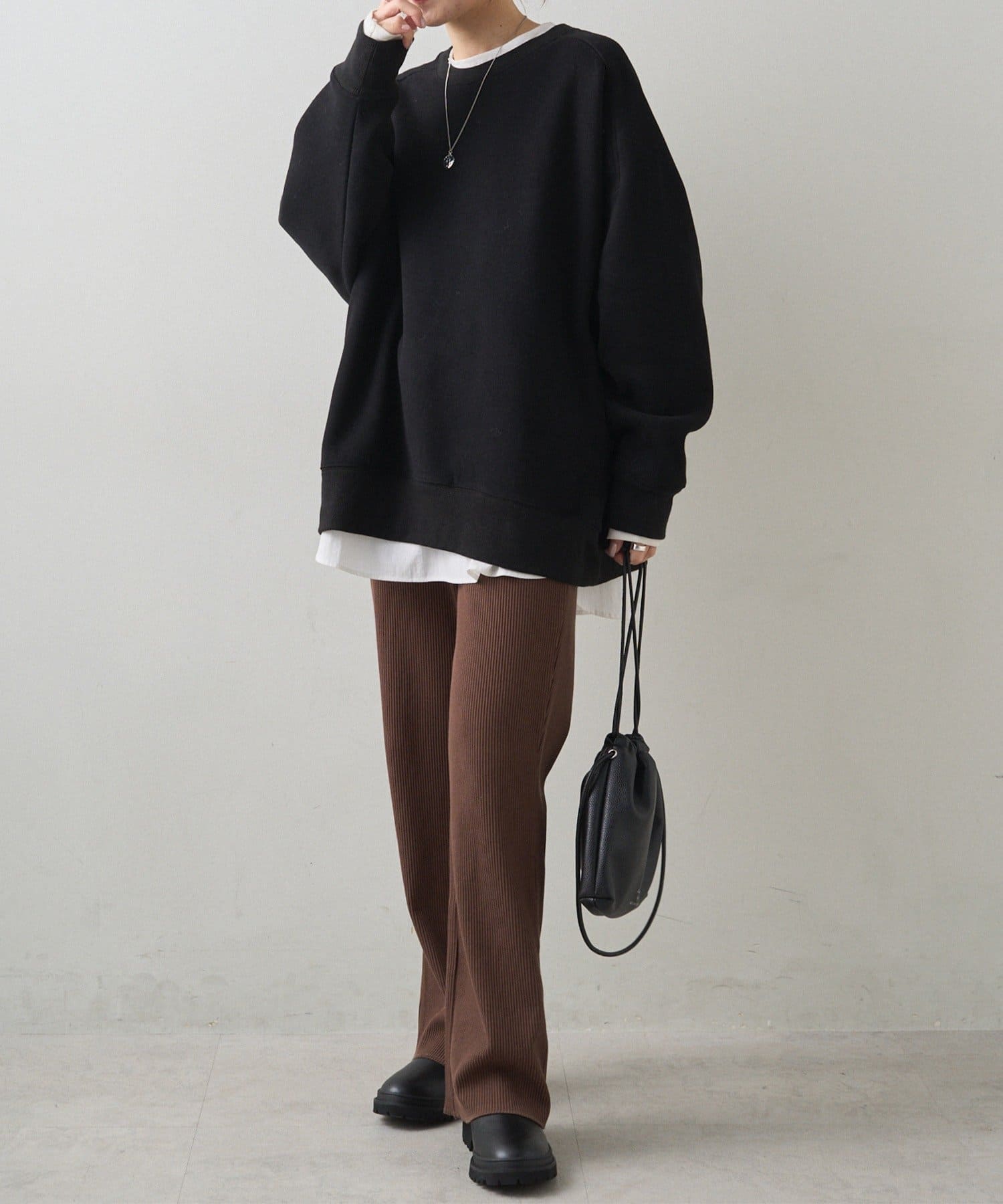 ボトム選びに悩みがちなオーバーサイズのトップスと相性良く、バランスの取れたスタイリングに。