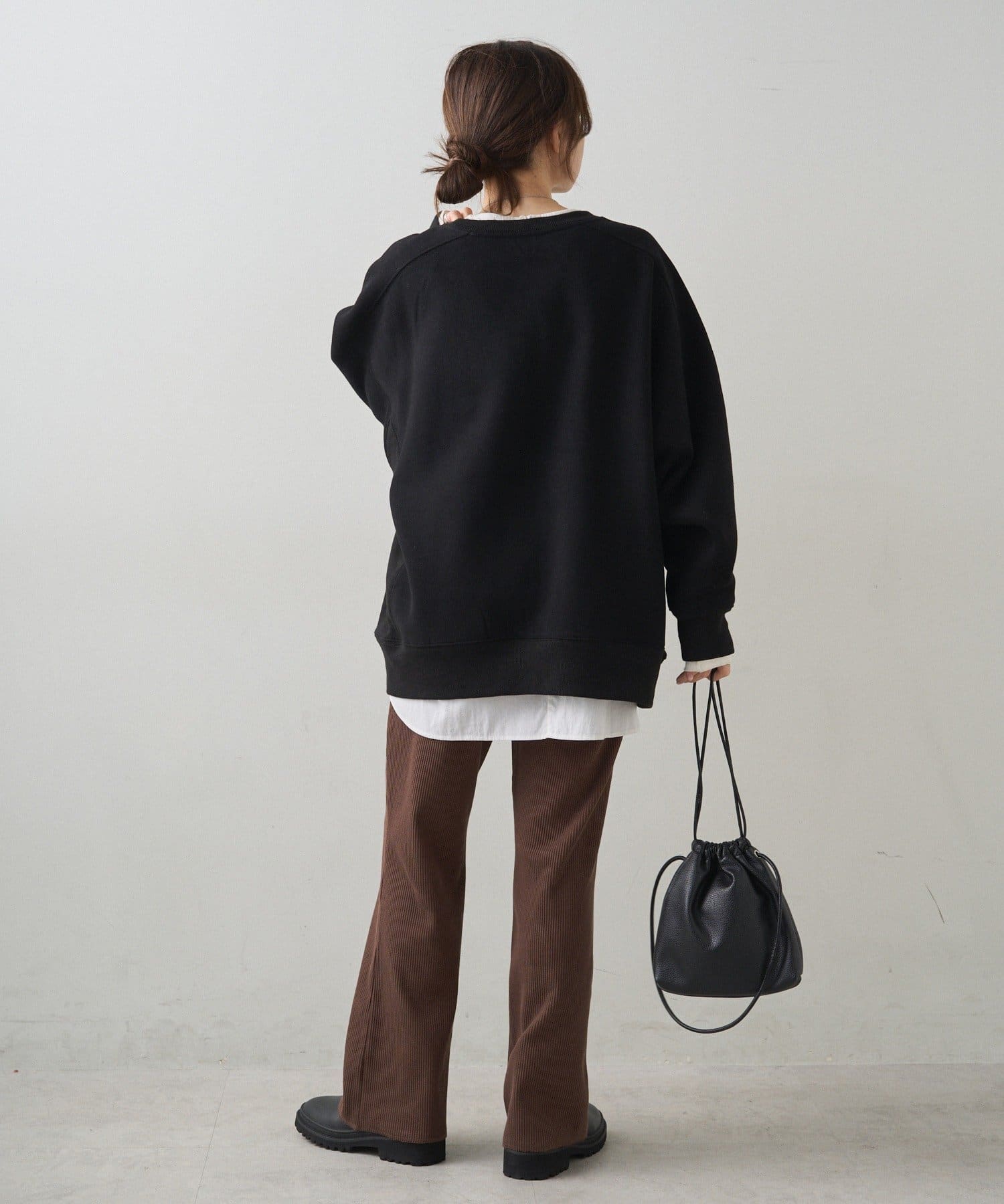 着用感:低身長でも、リブ生地の微フレアシルエットで縦見えしすっきりと着用できました。