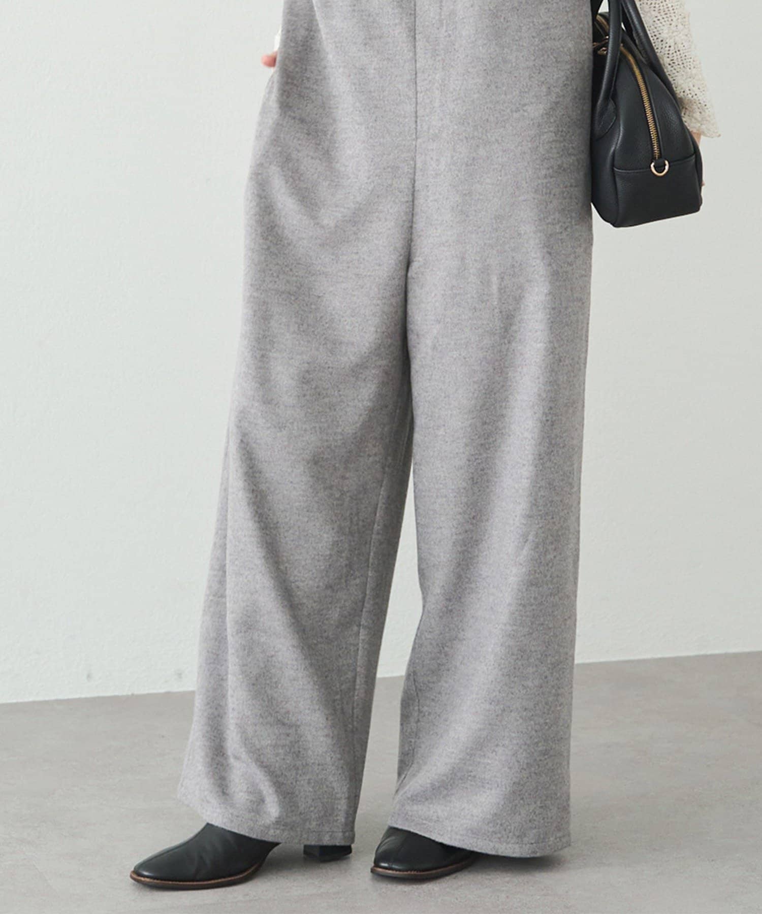 ややゆとりのあるパンツ部分はストンと落ちたセミワイドシルエットで、