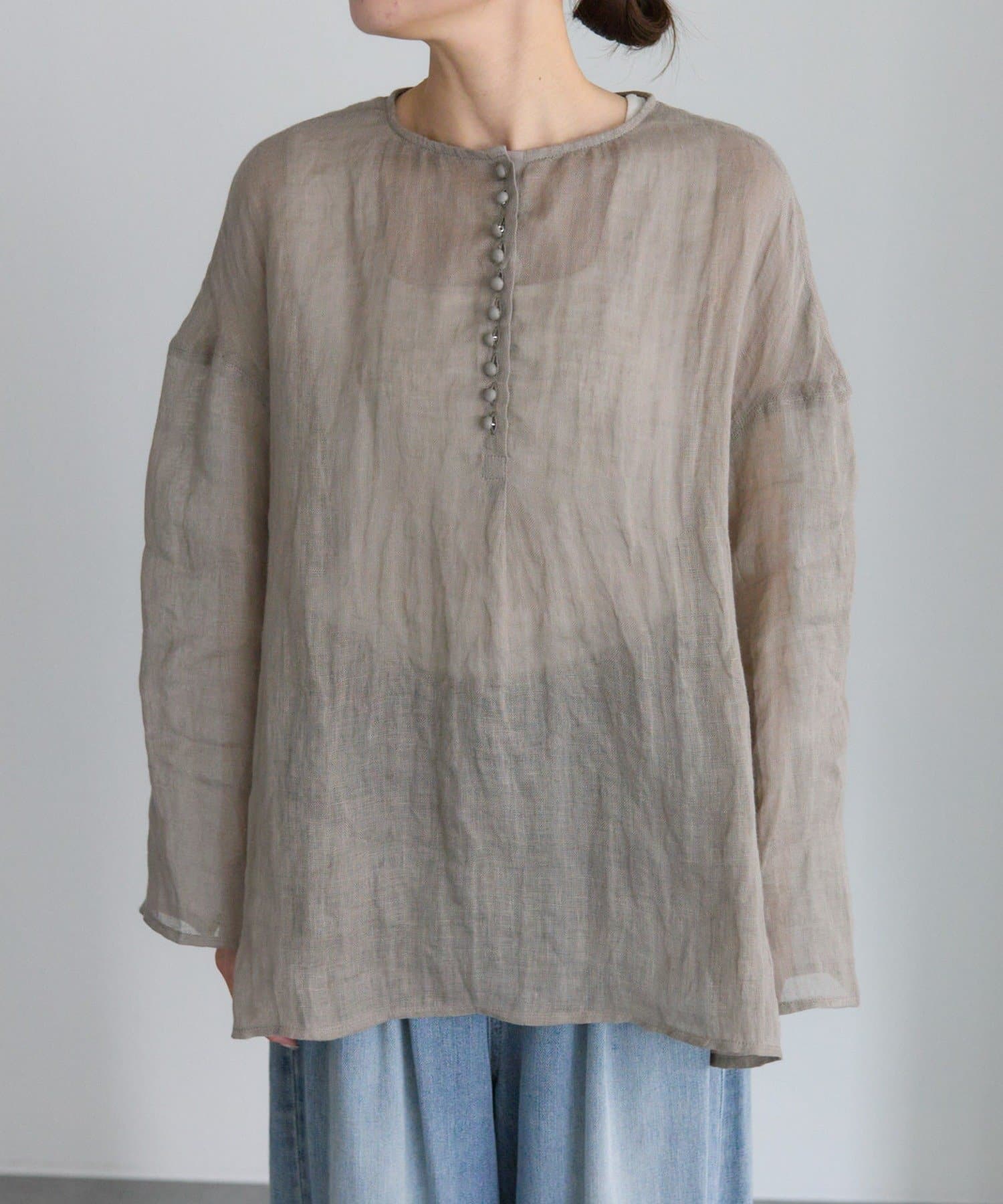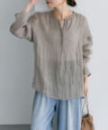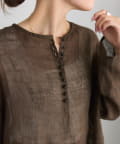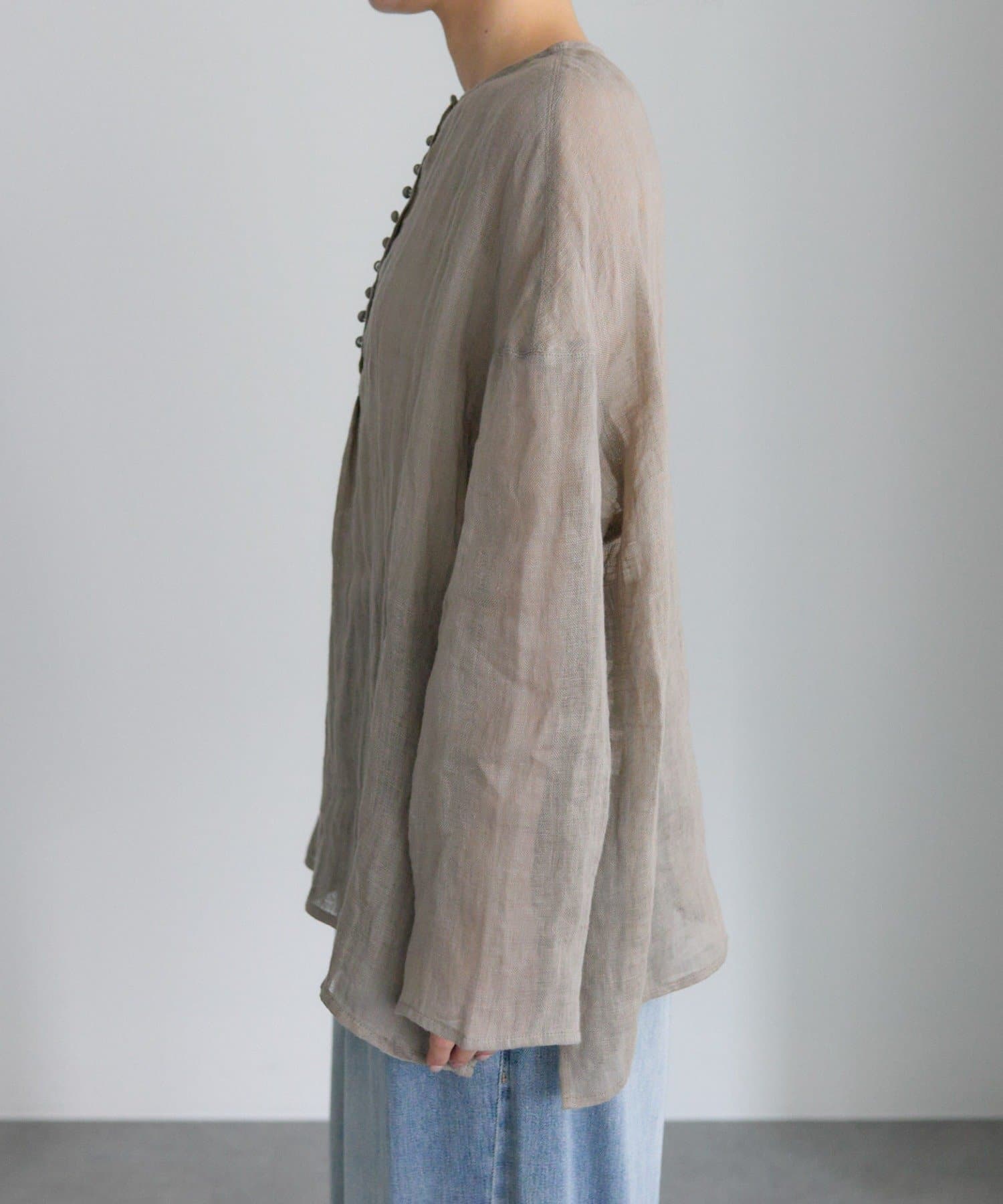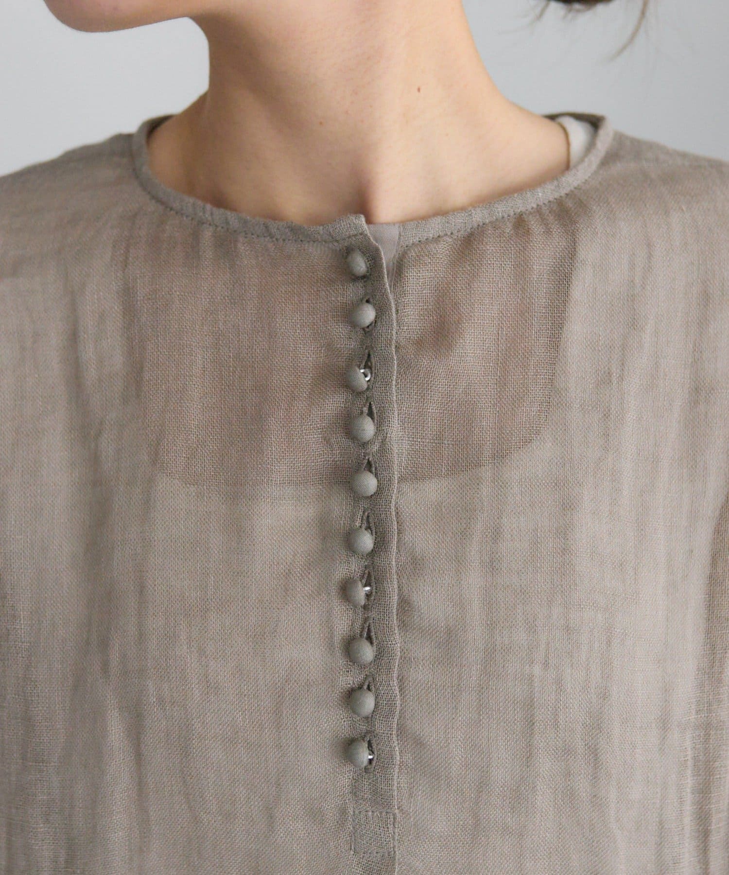 ◇くるみボタンが愛らしいリネンガーゼブラウス◇