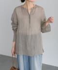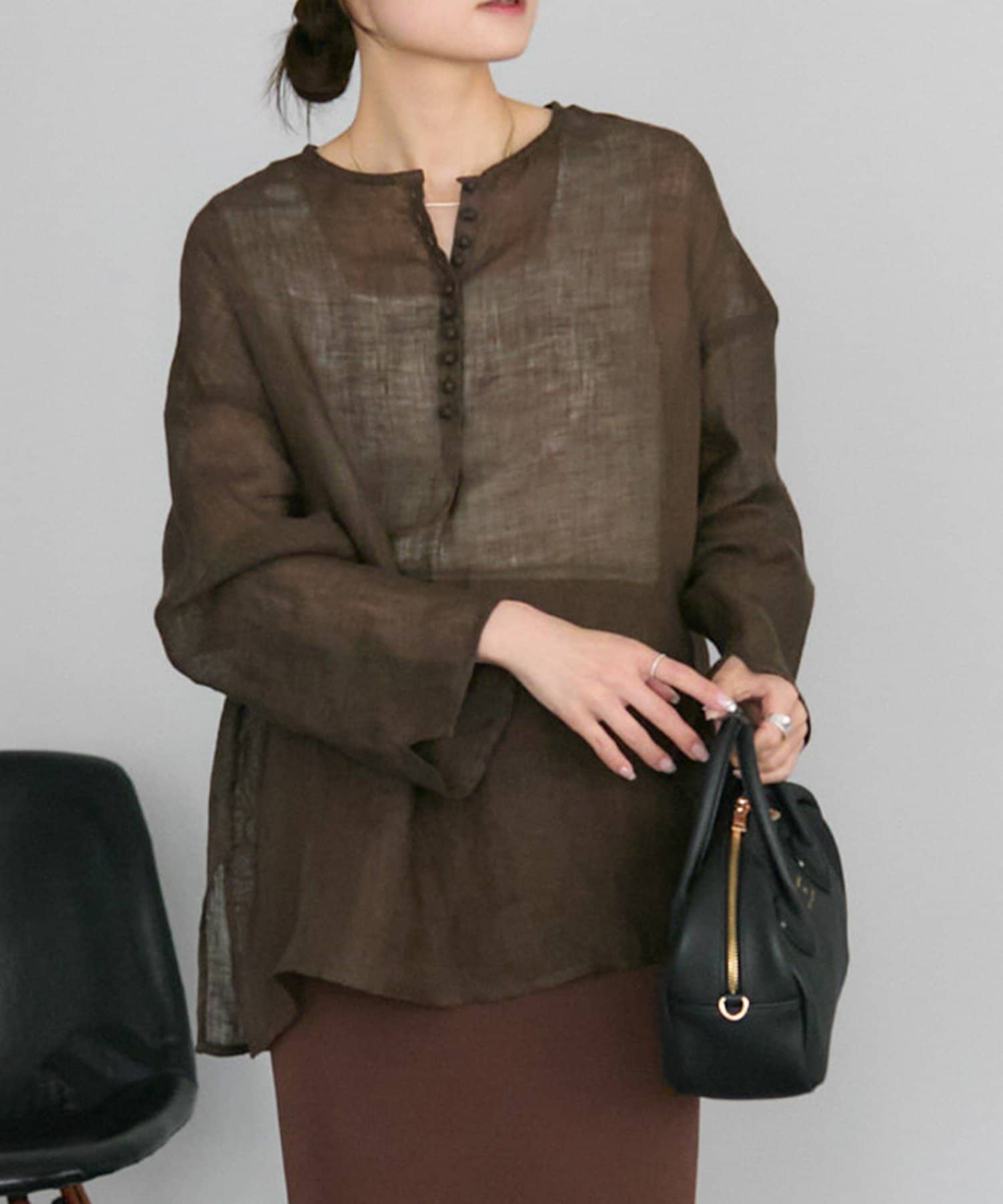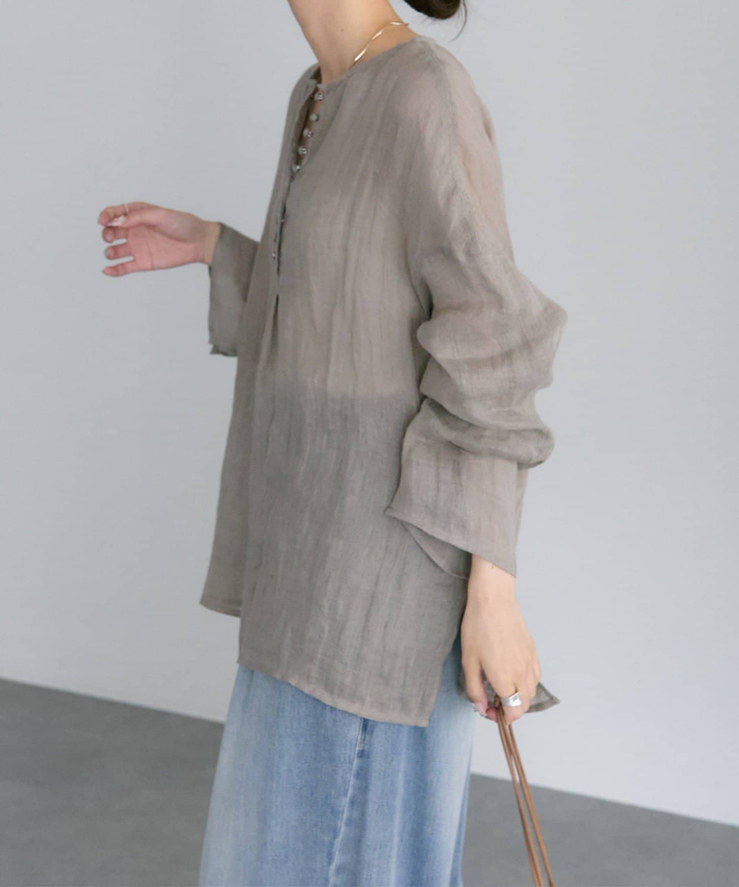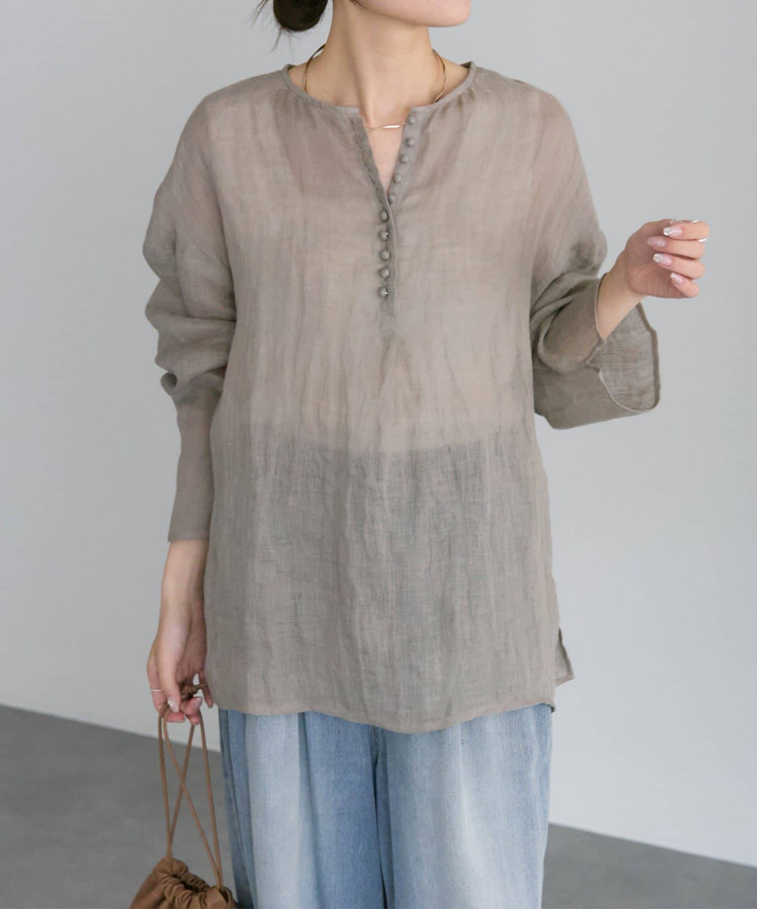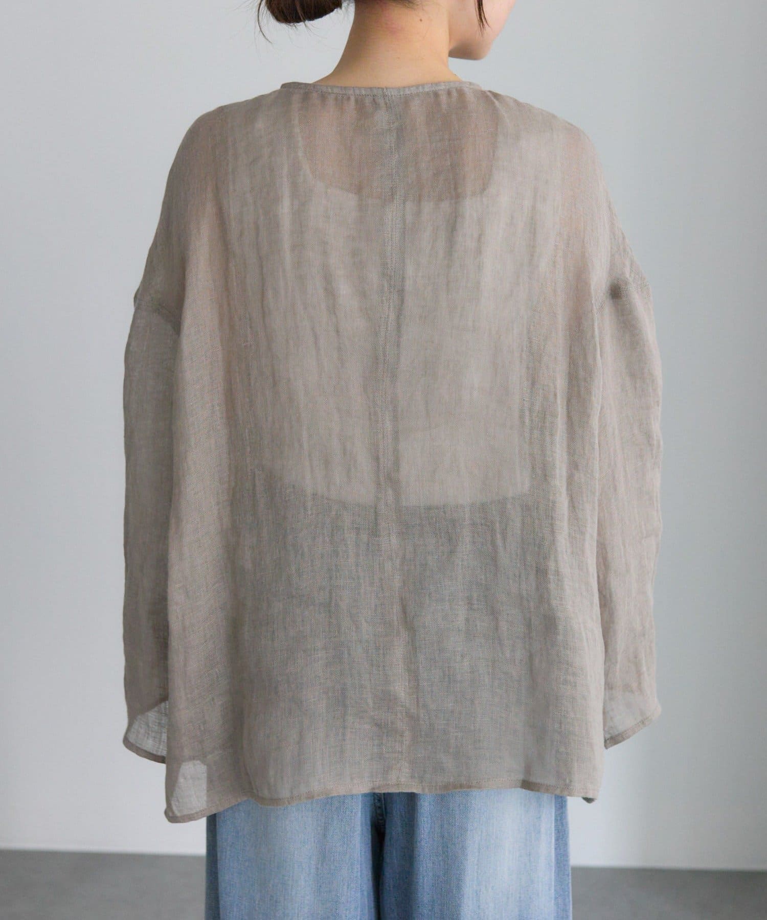 ◇くるみボタンが愛らしいリネンガーゼブラウス◇