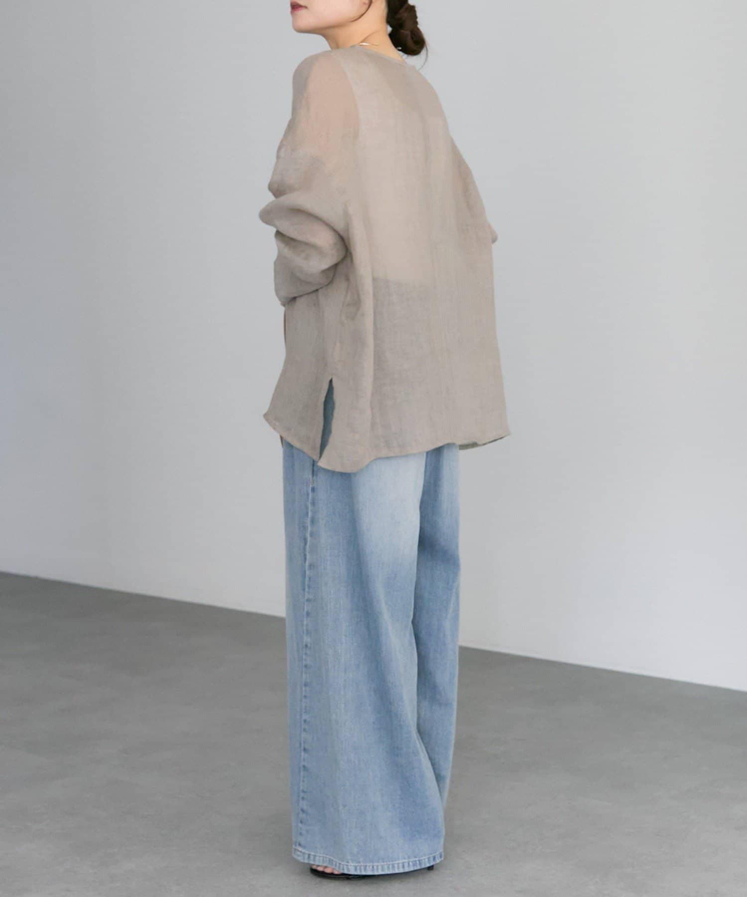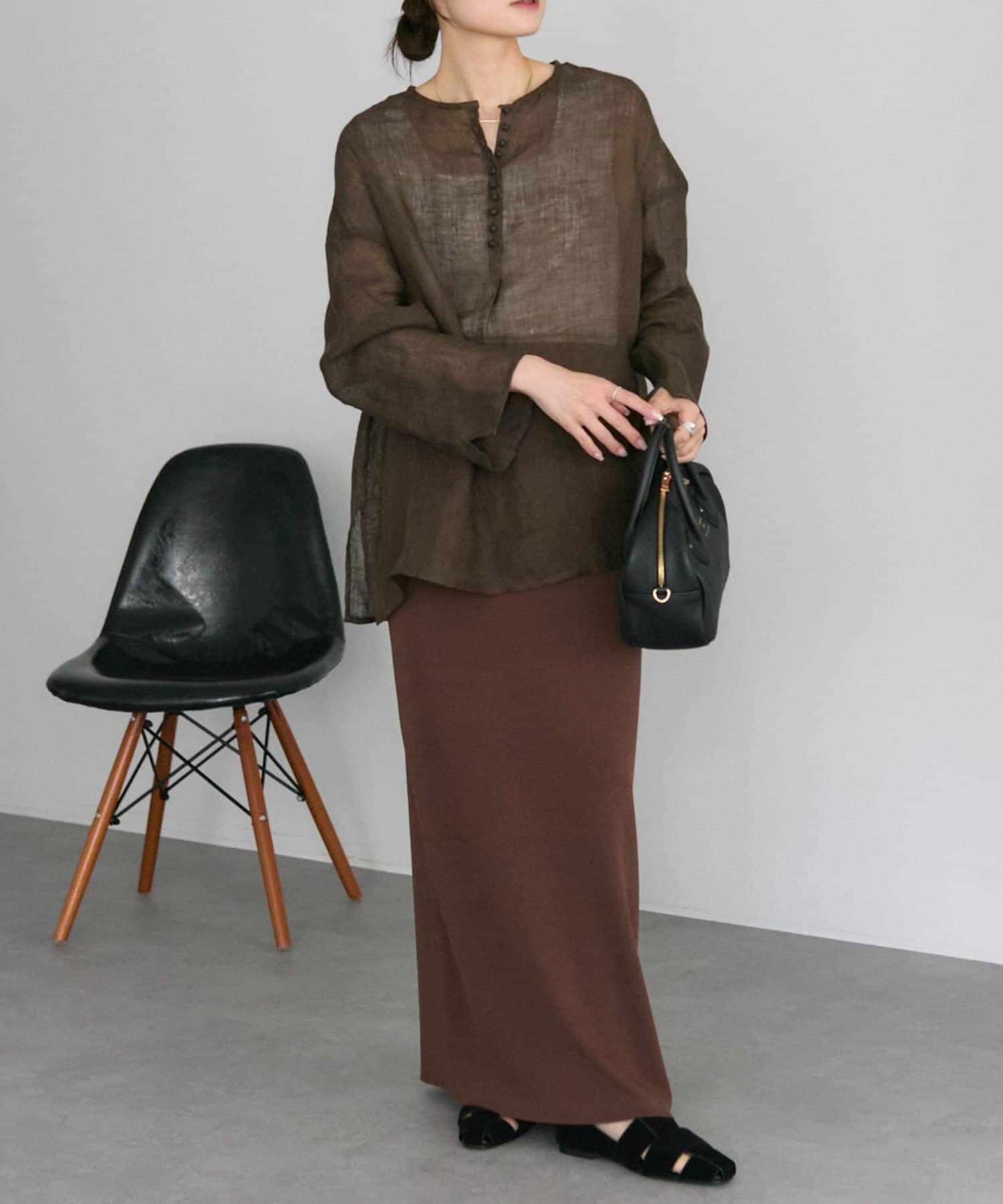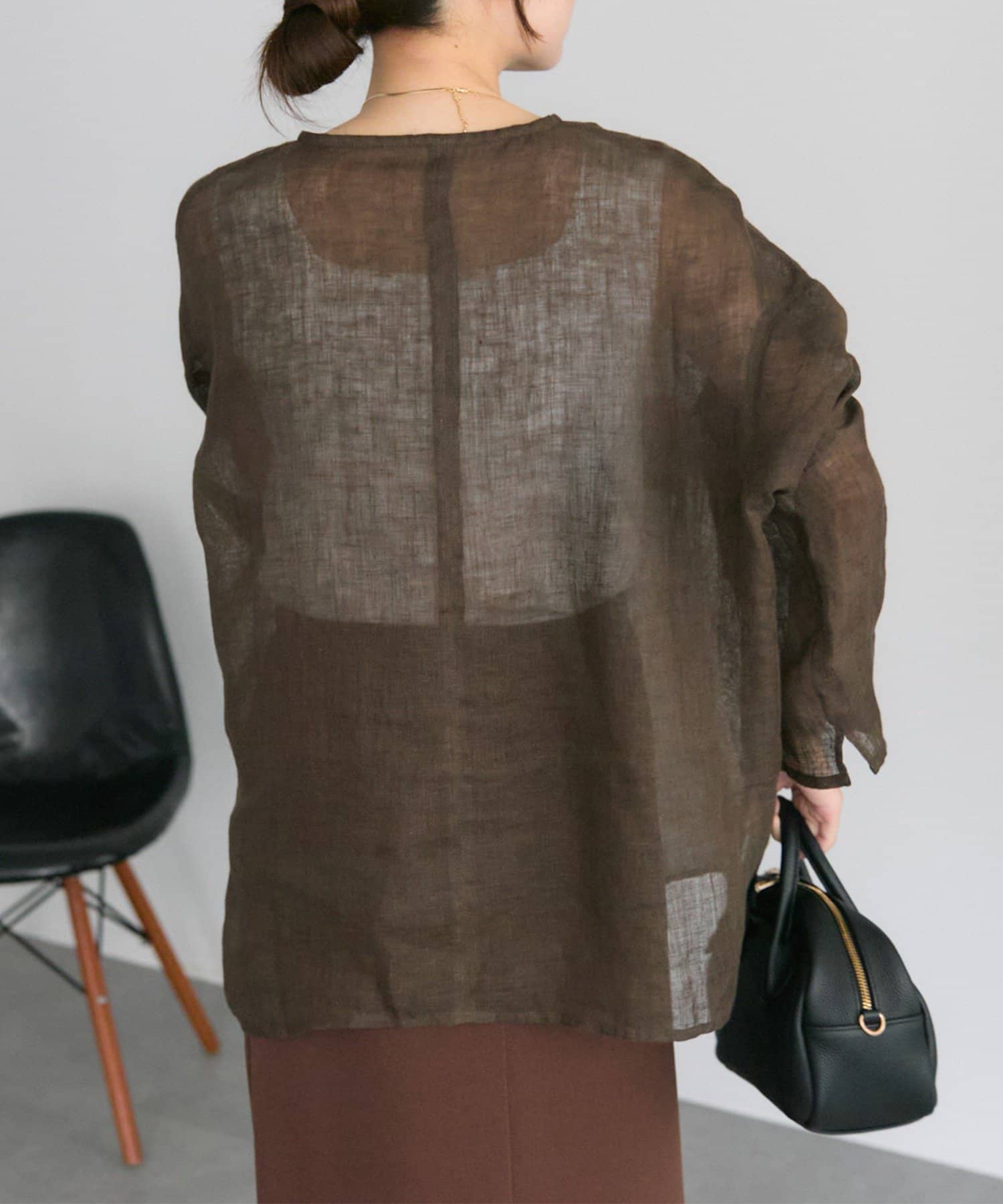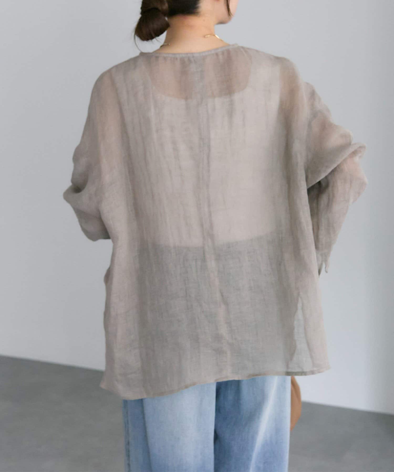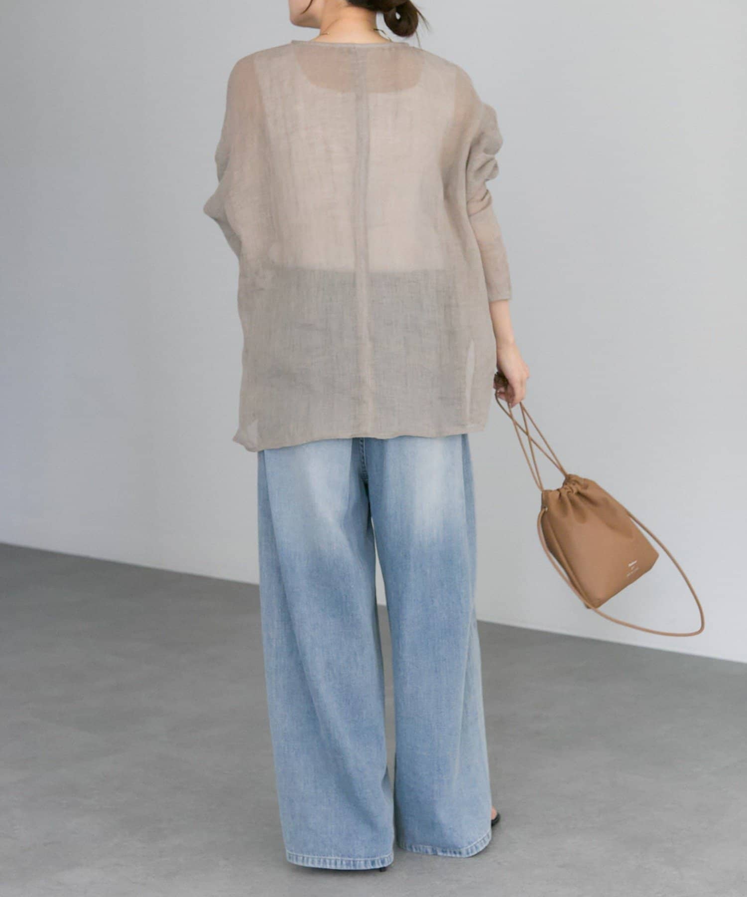 インナーにはキャミソールやスクエアタンクを合わせると安心して、程よい透け感をお楽しみいただけます。