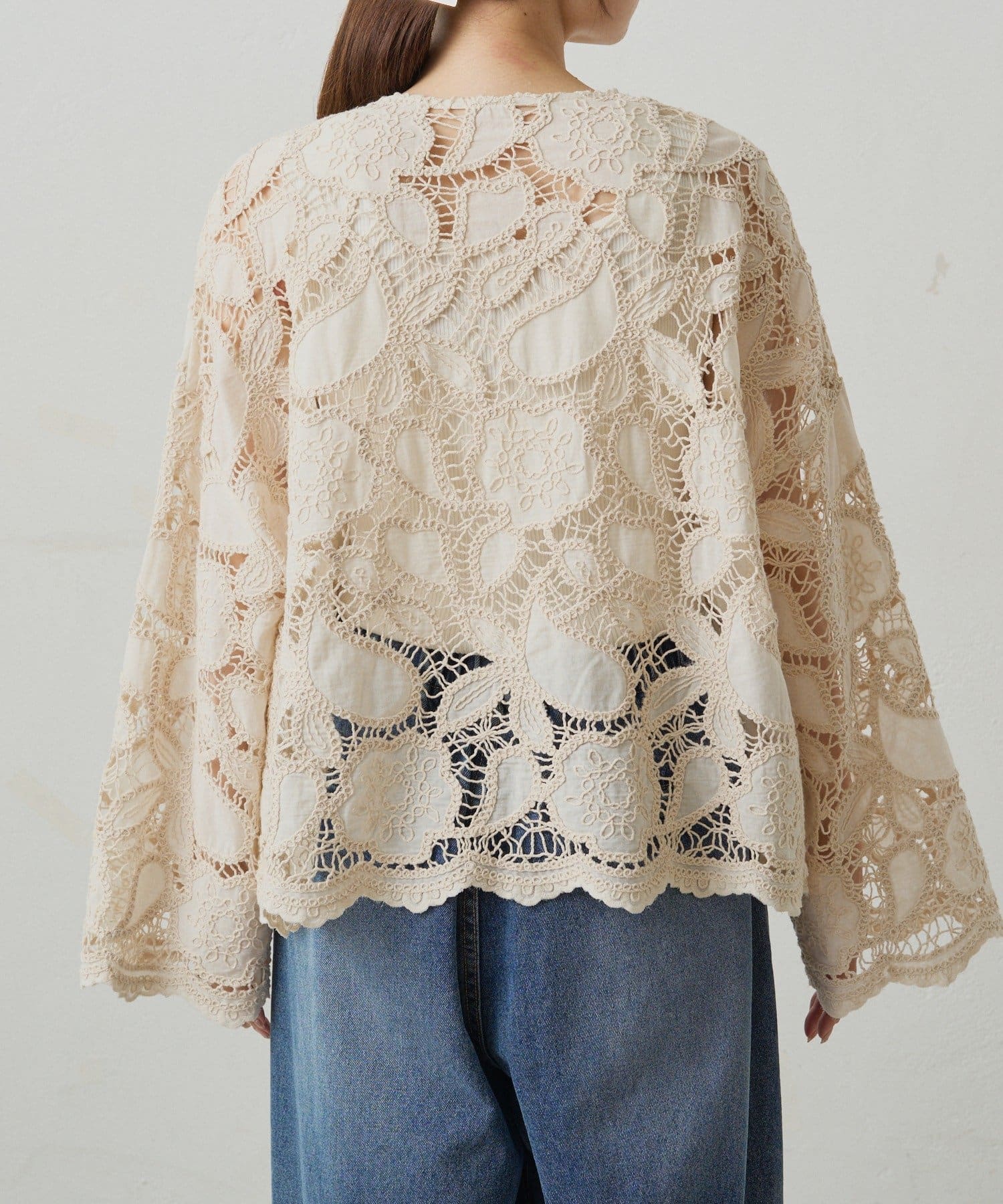 裾まわりや袖口もレースの形を活かすことで細部まで上品に仕上げました。