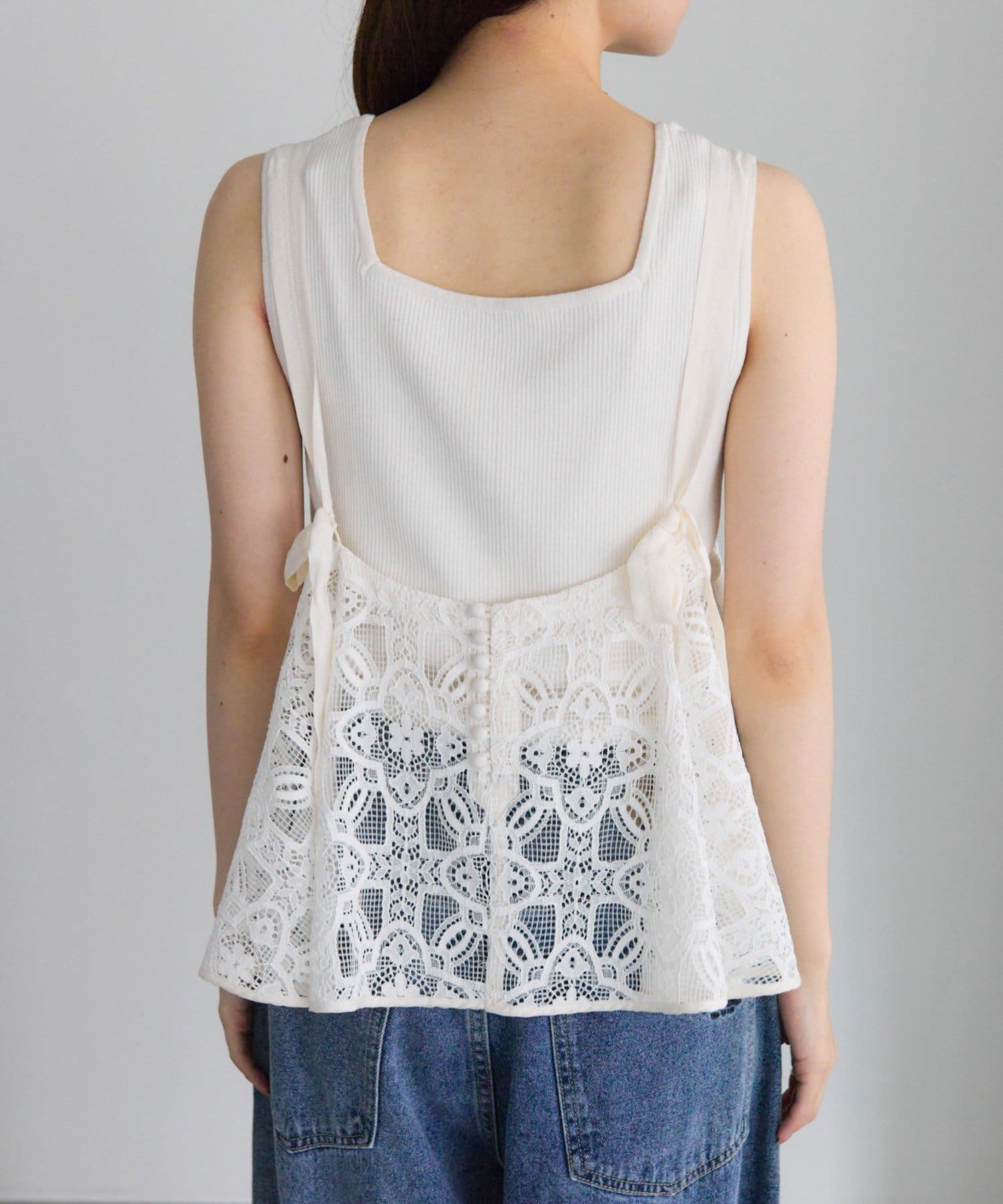 レース生地に馴染むようエアリーな素材を使用した肩紐は、着丈調整が可能で様々な骨格の方に着用いただけます。