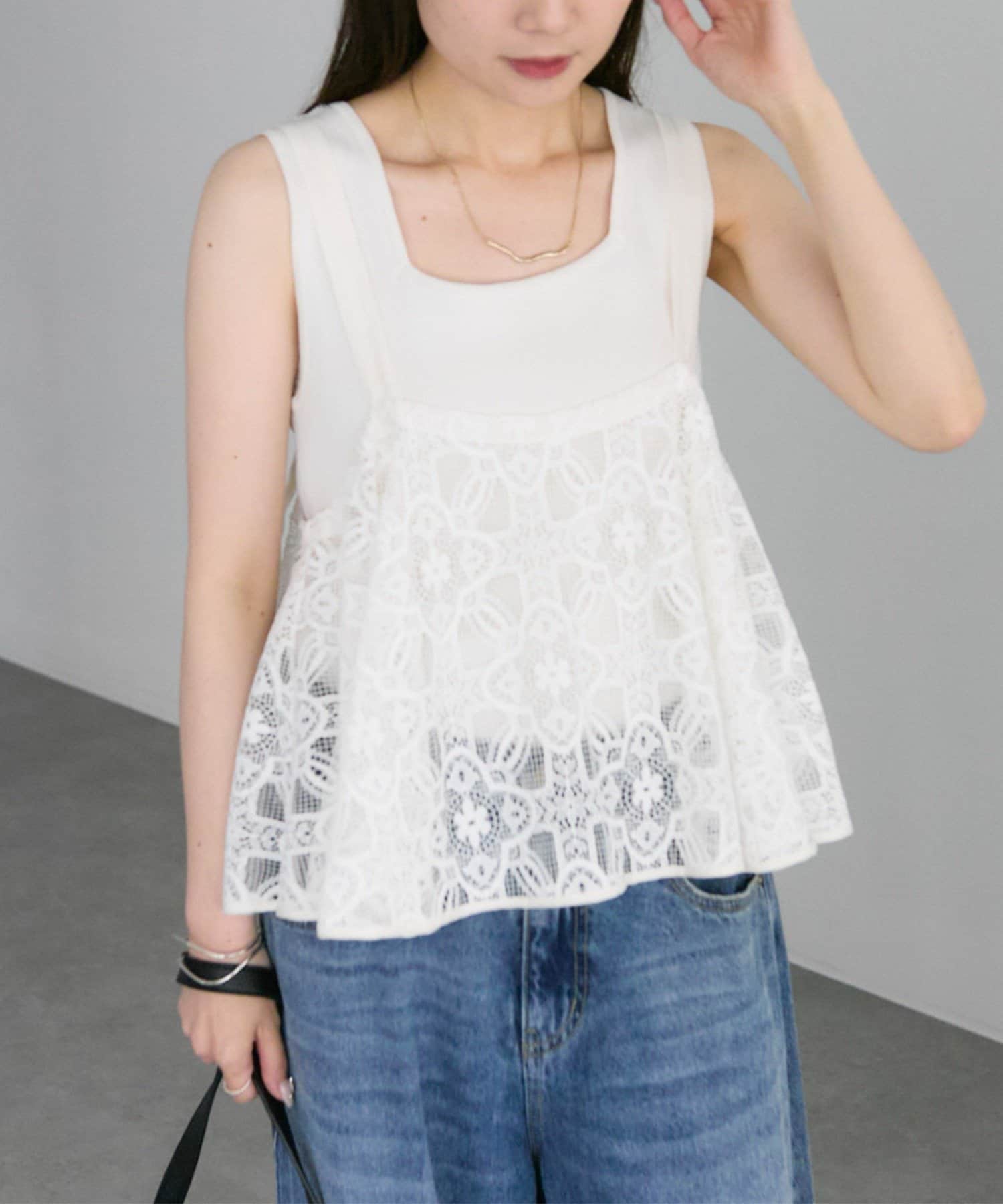 花モチーフの繊細なレース素材で、パッと目を惹く上品で女性らしいデザインに。