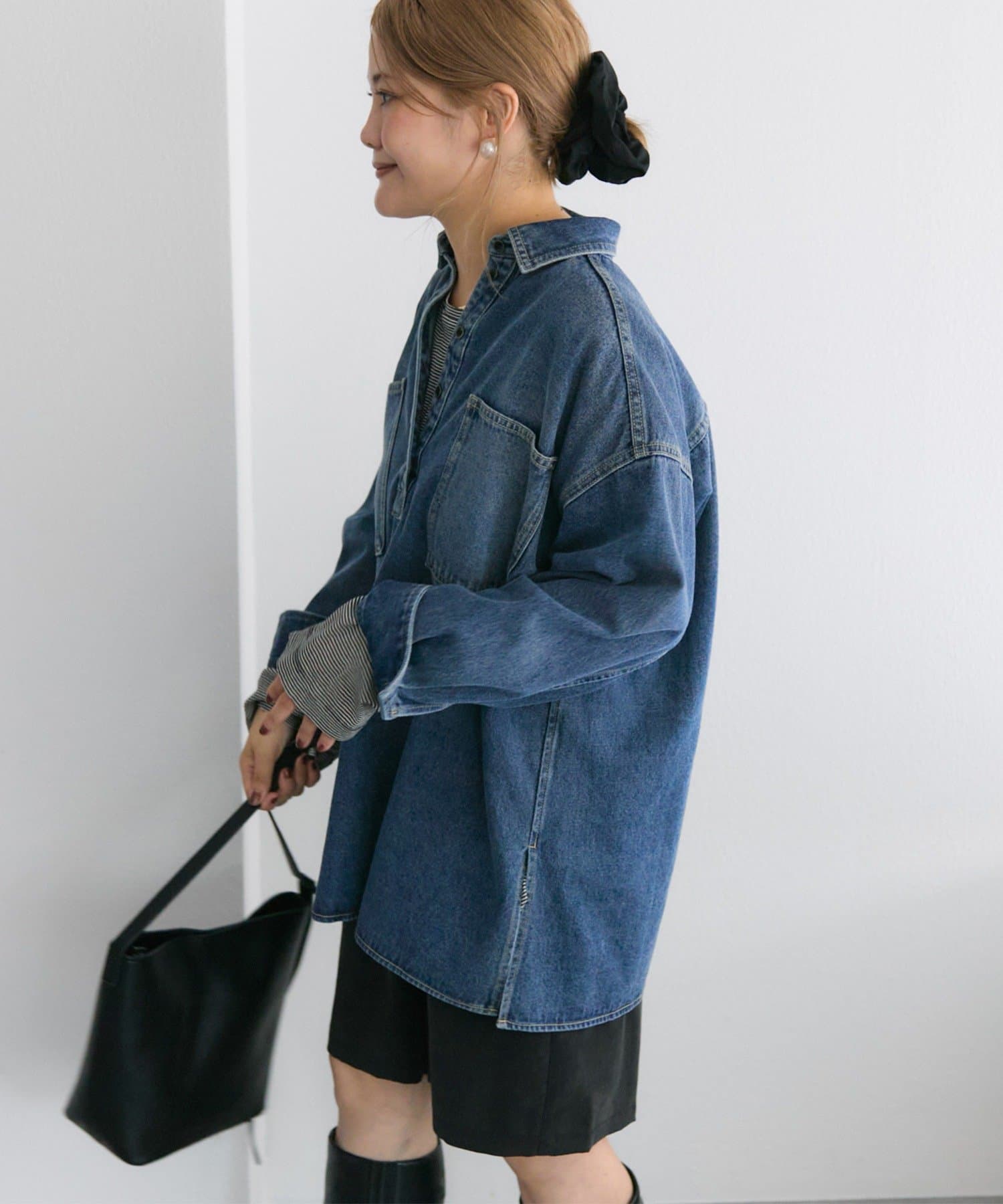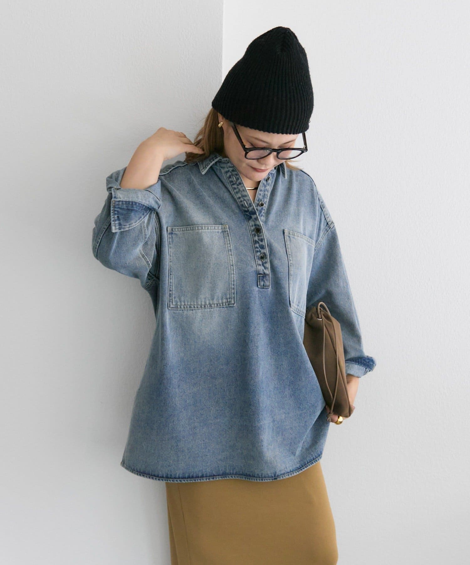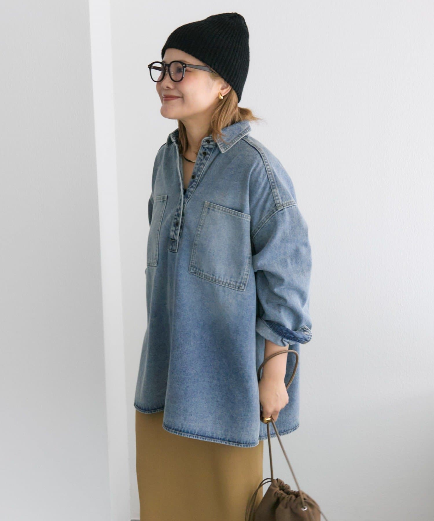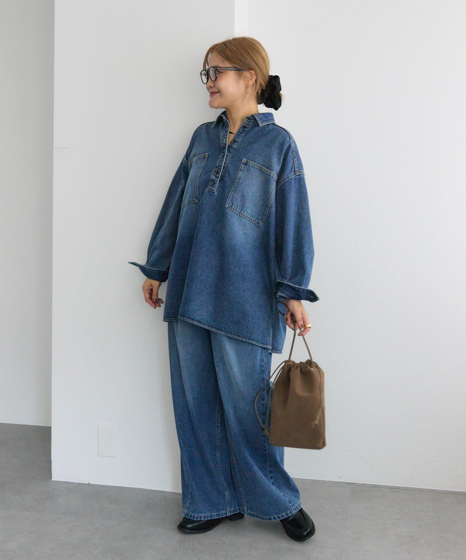 着回ししやすいデニムブラウスに、さり気ないこだわりを落とし込んだ1着は