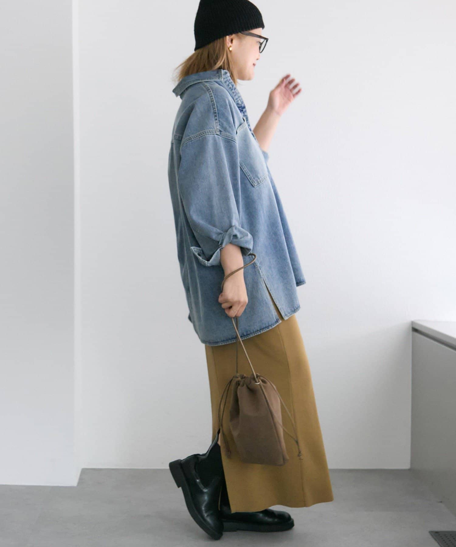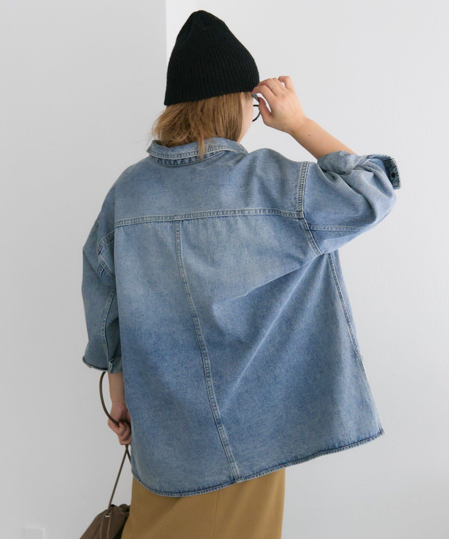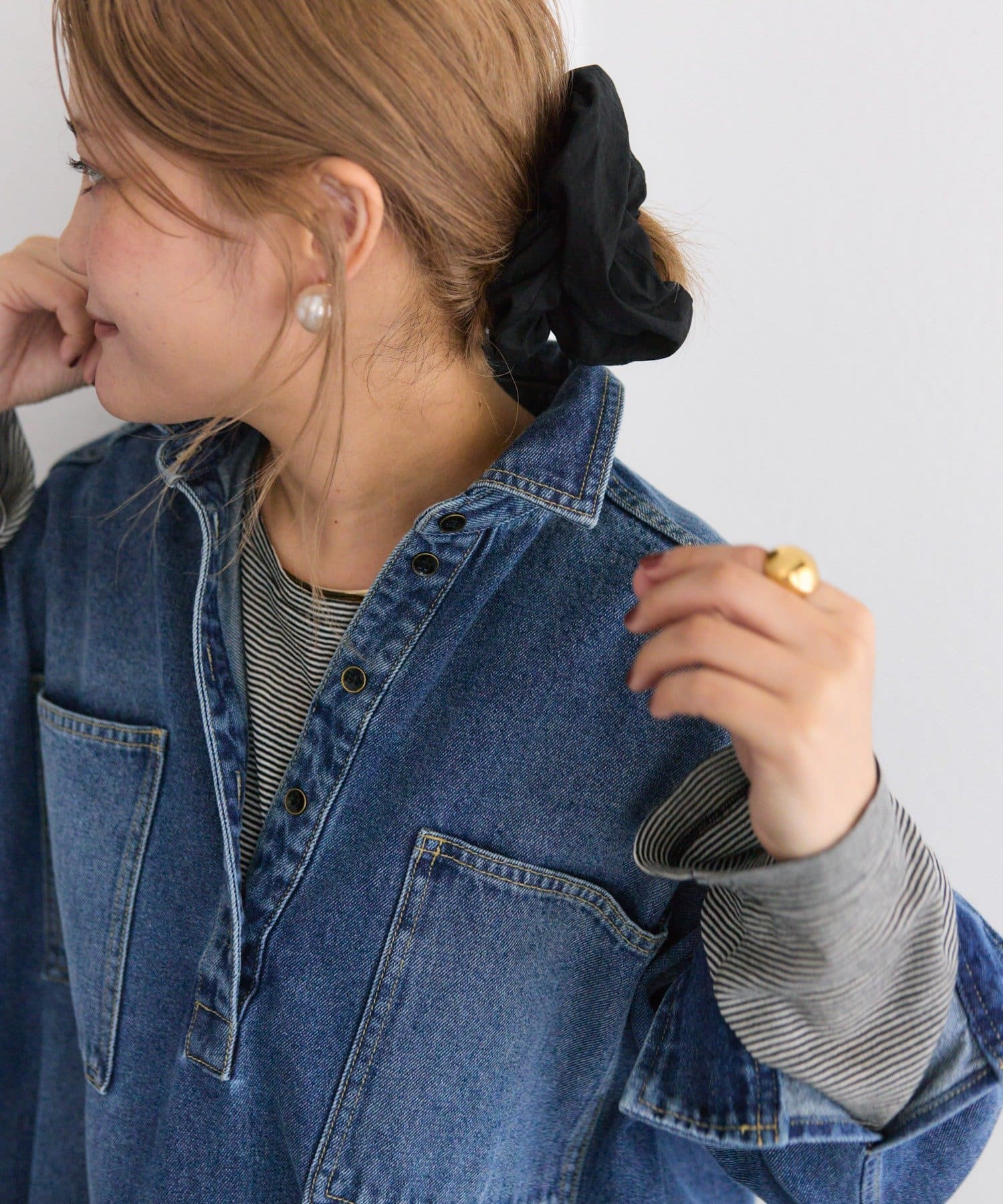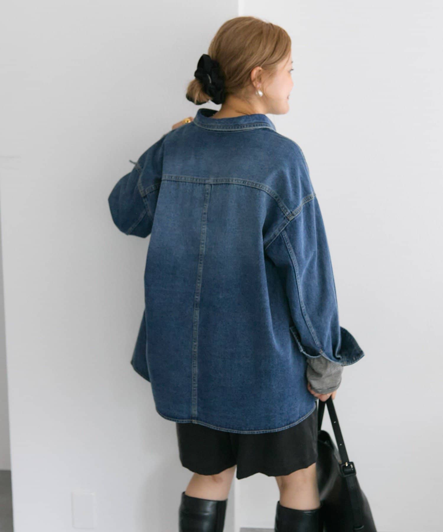 着回ししやすいデニムブラウスに、さり気ないこだわりを落とし込んだ1着は