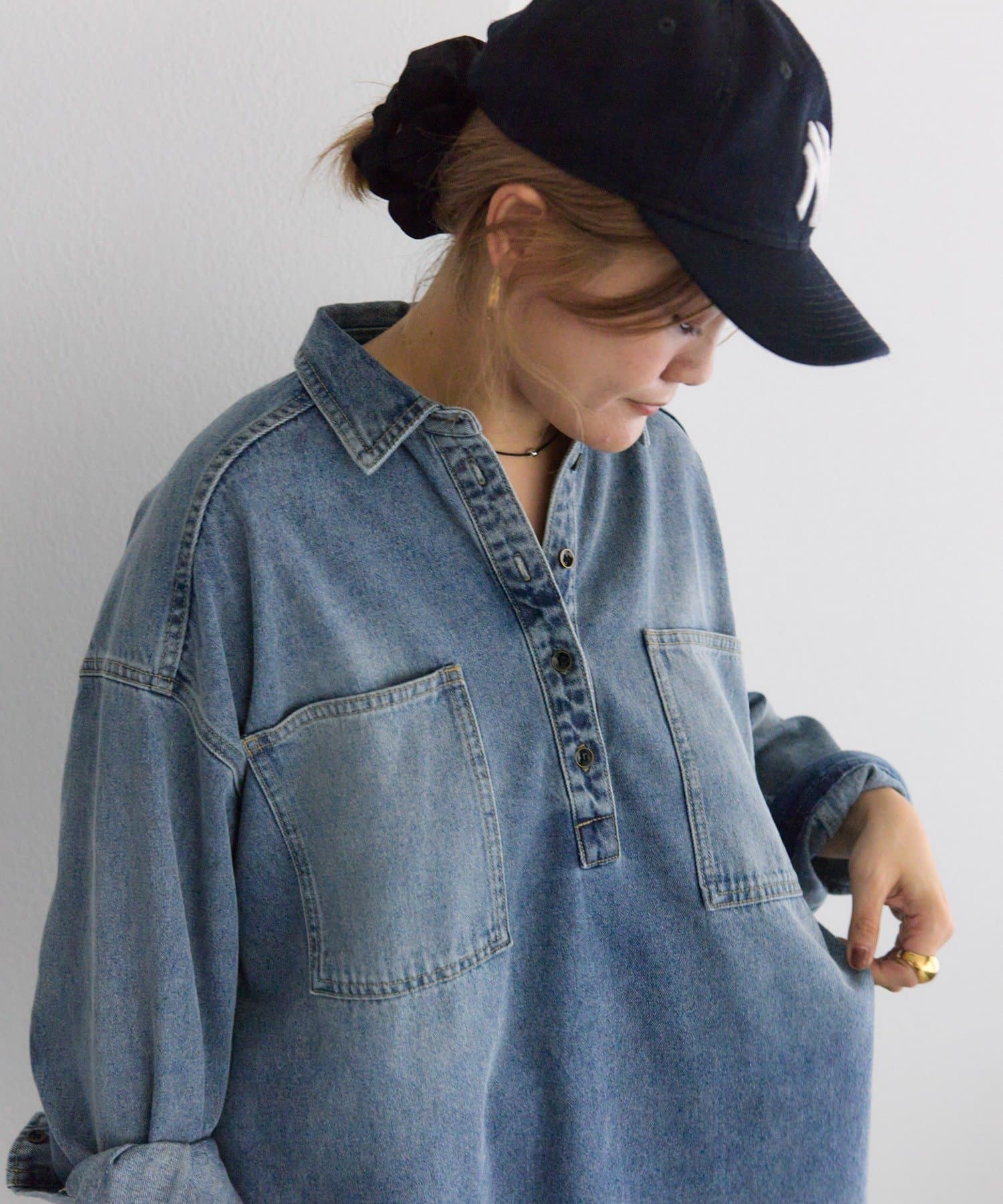 PUAL CE CIN(ピュアルセシン) 【@noricorico102企画】ヴィンテージライクデニムチュニックシャツ