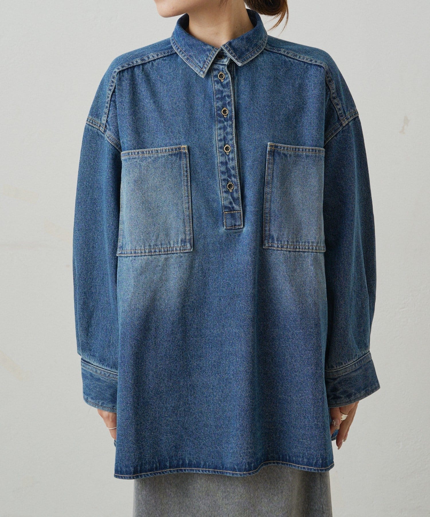 ヴィンテージライクデニムチュニックシャツ