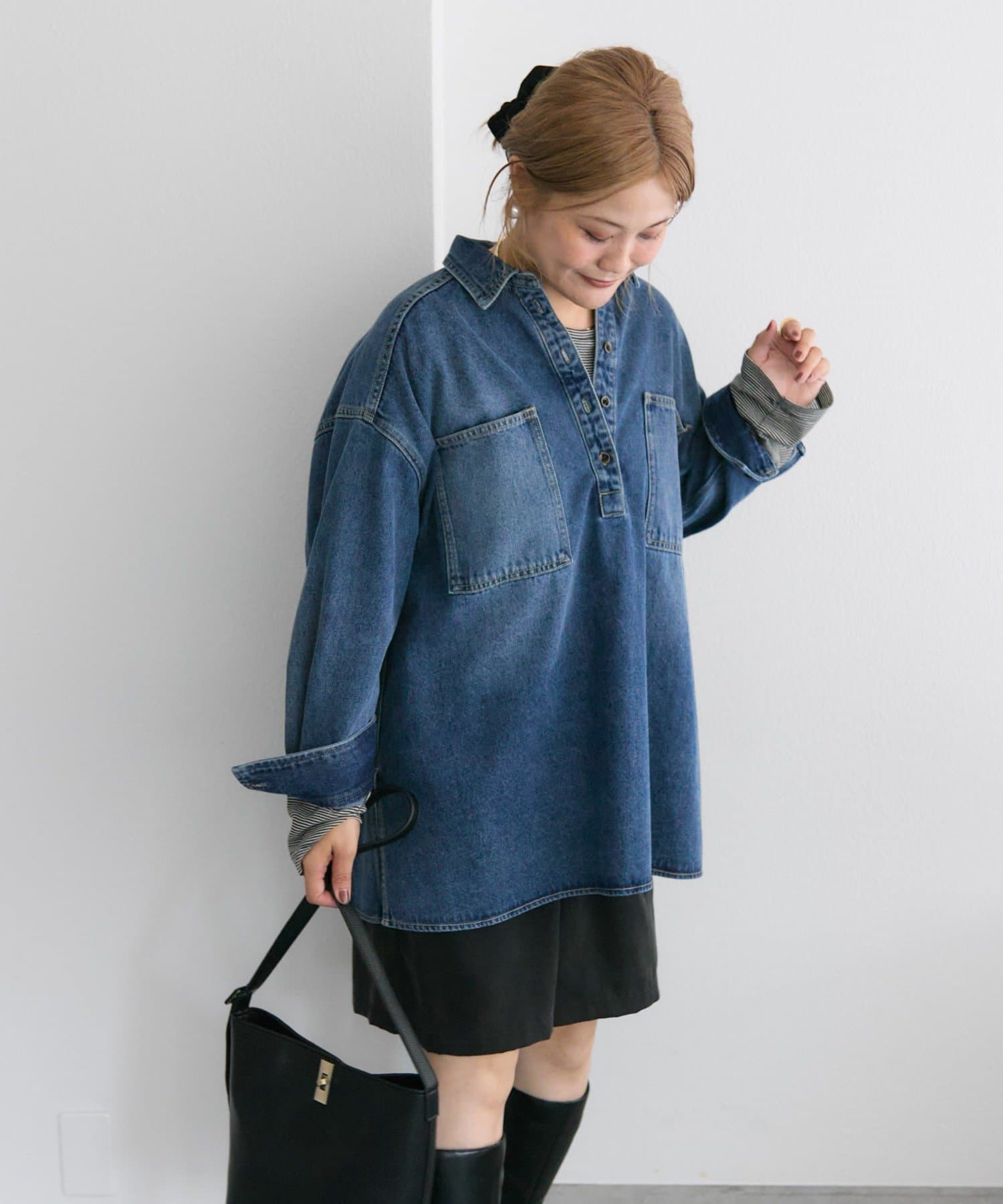 季節の変わり目に丁度いい厚さの生地感。色落ちの風合いが素敵です。デニムチュニックはありそうでなかった。コーディネートを参考に色々着回してみたいです。