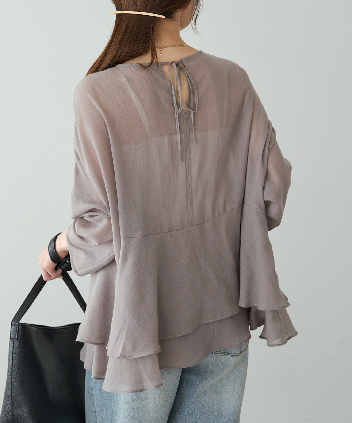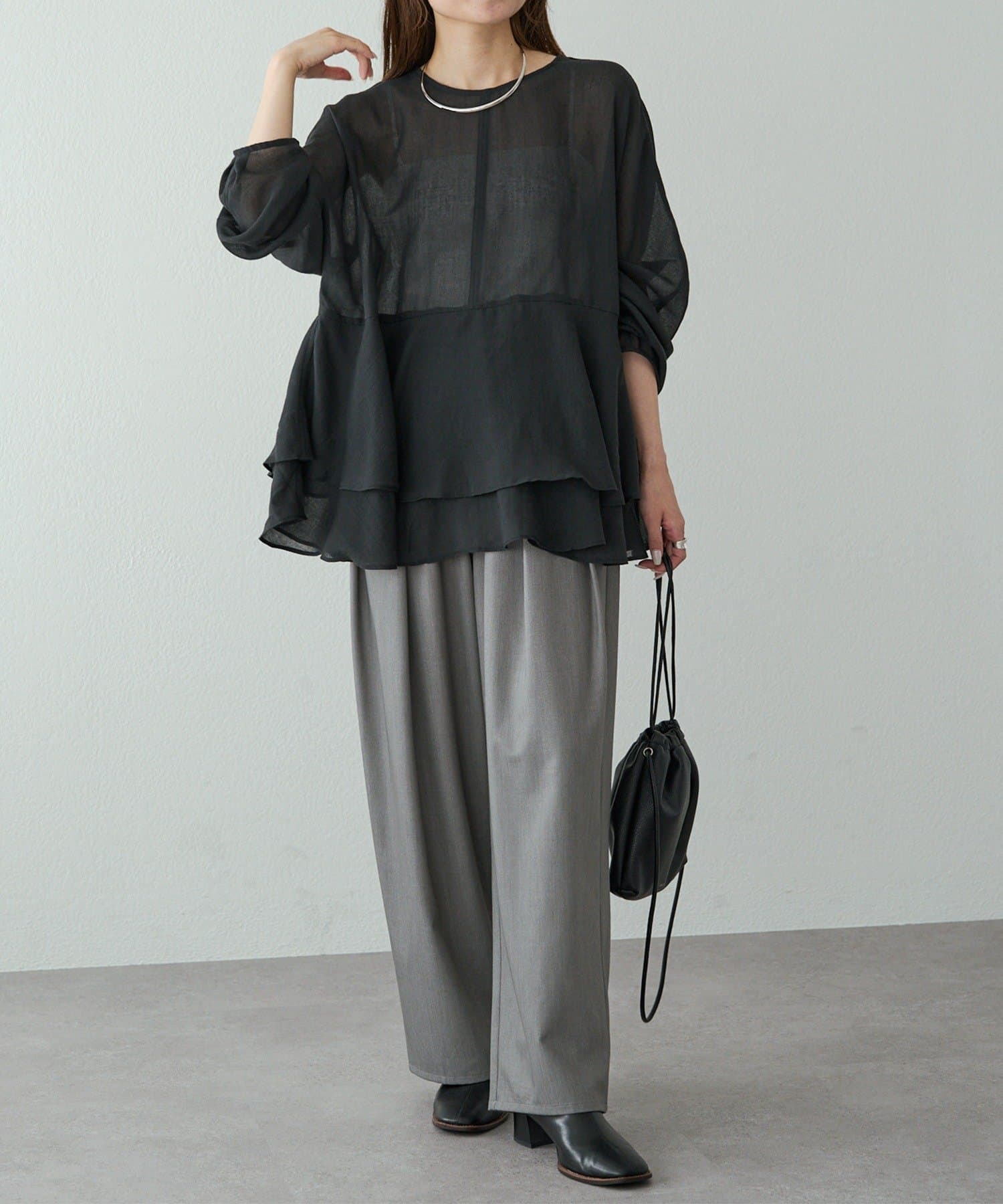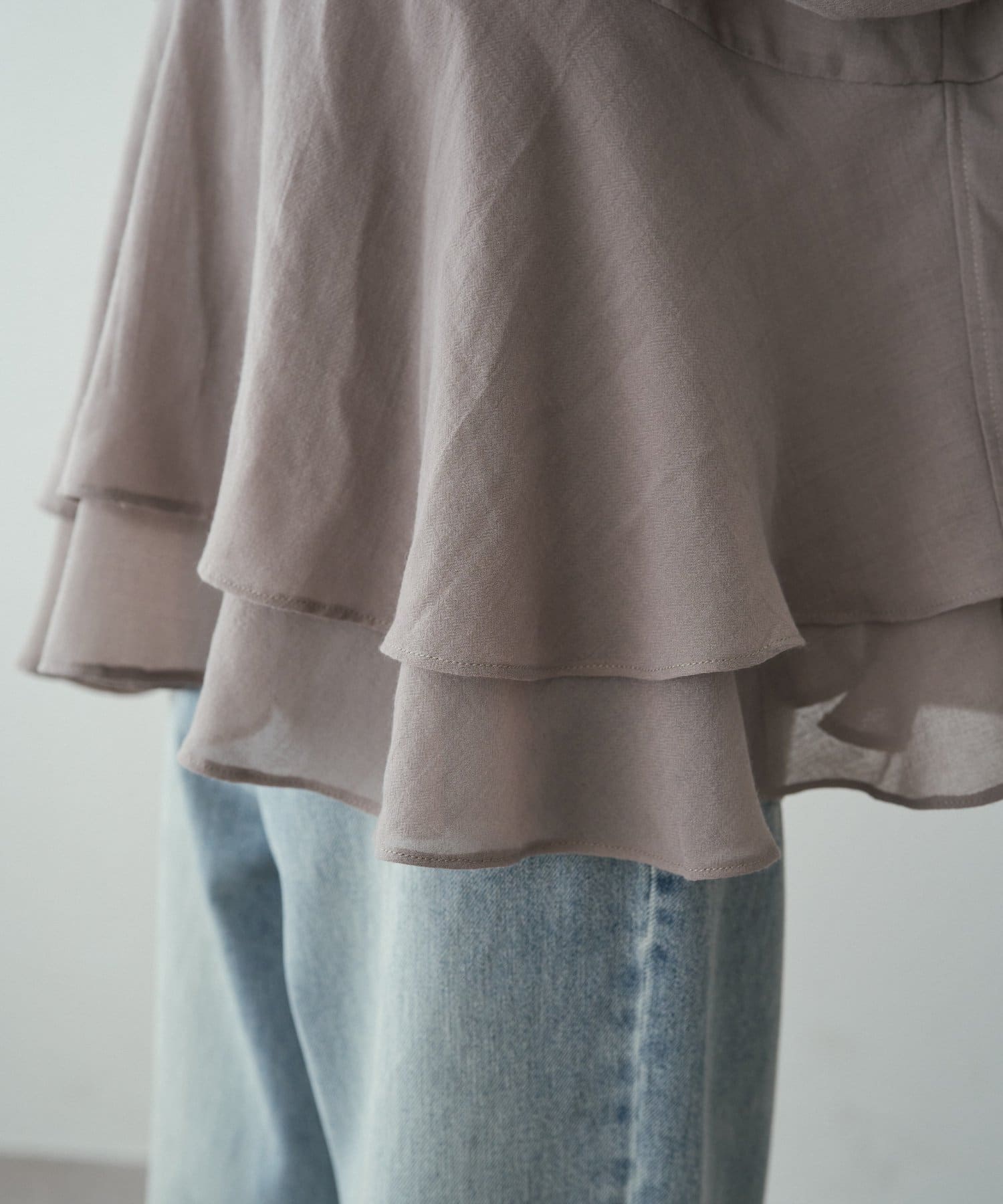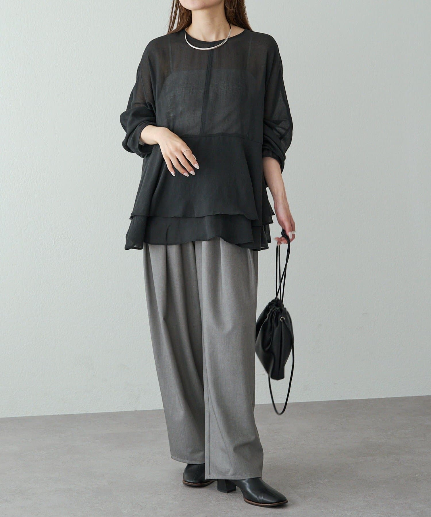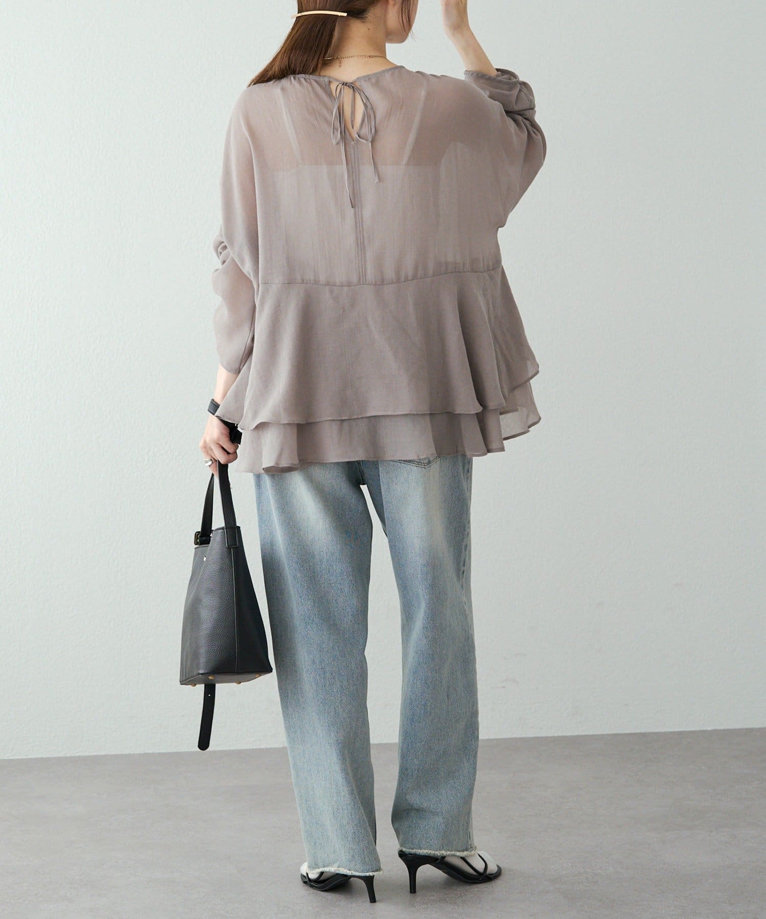 上品なエアリーさと2段ペプラムが女性らしいブラウス。