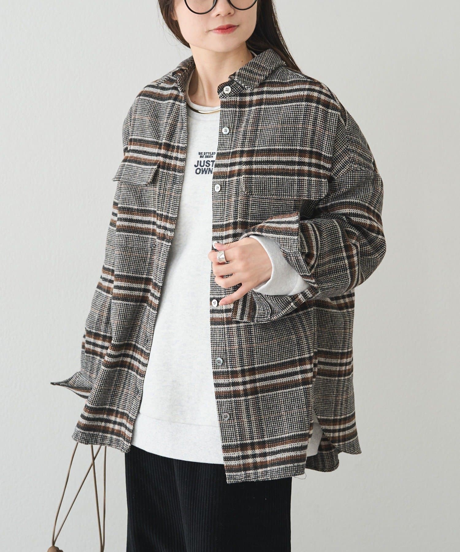 ◇ふんわり起毛の厚手生地であったか!コーデのポイントになる大柄チェックシャツ◇
