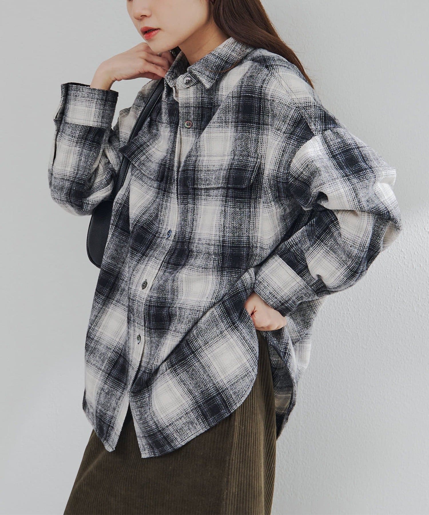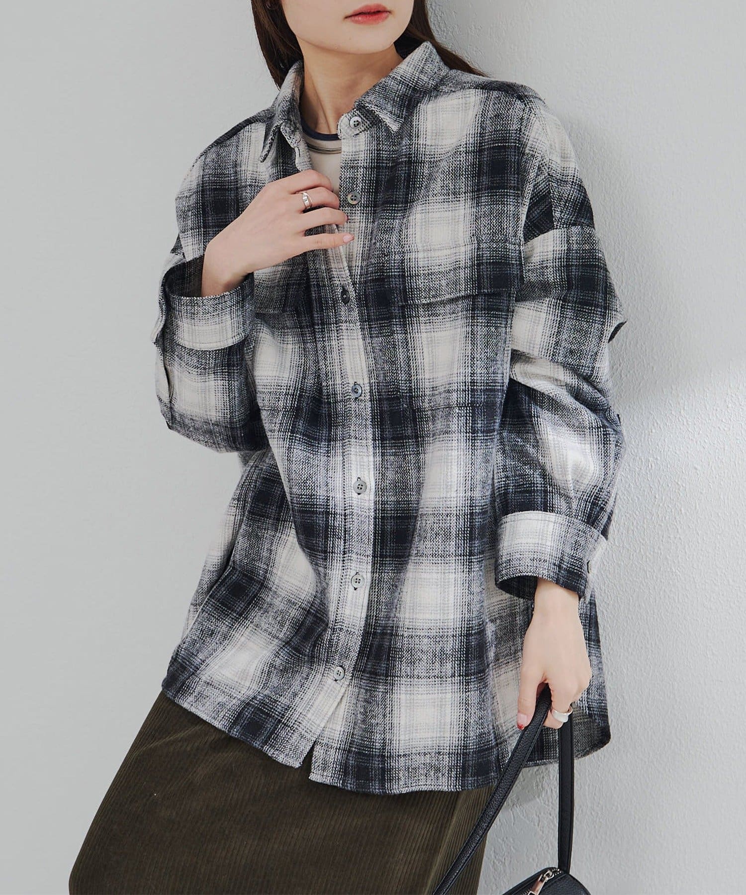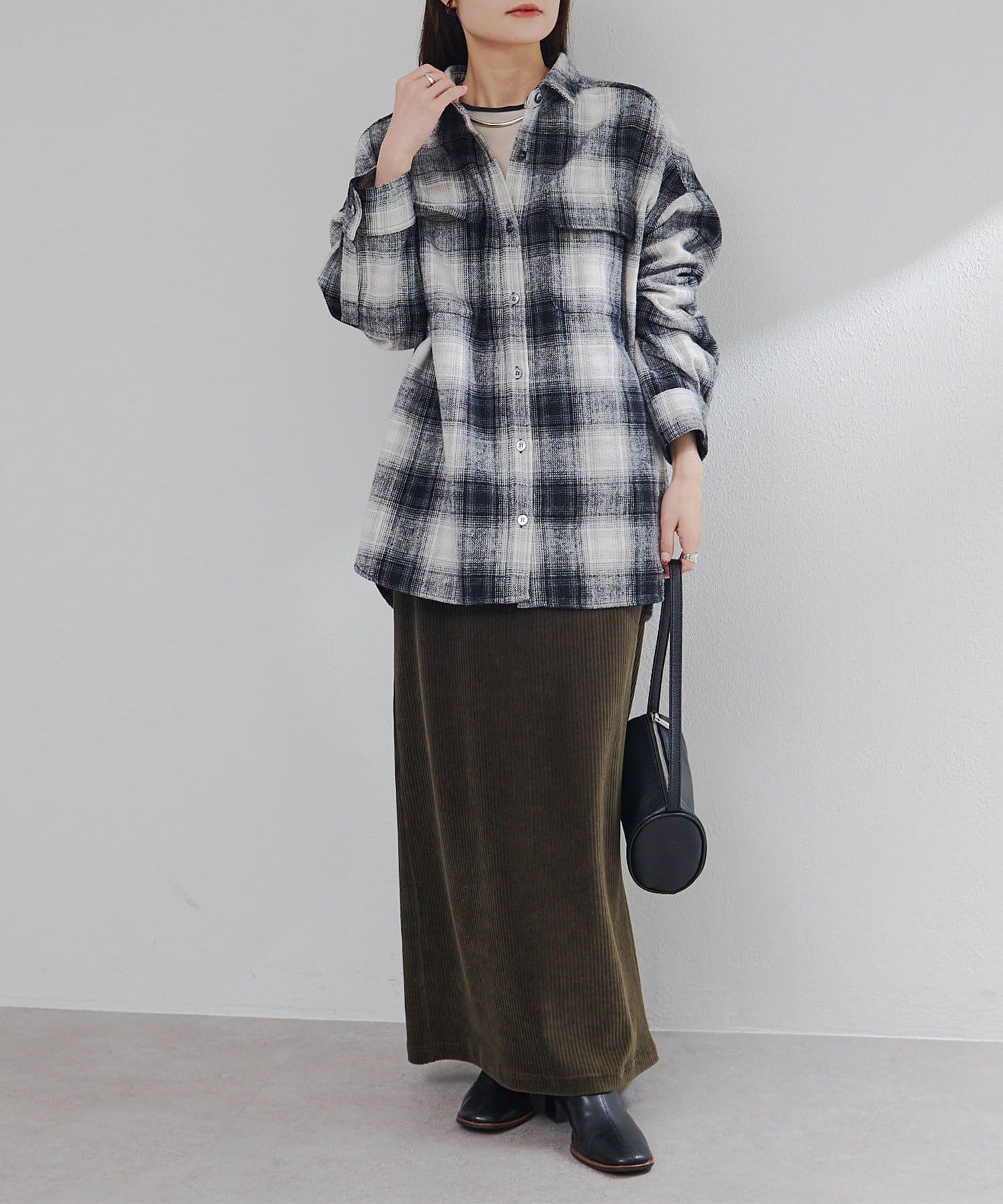 冬のシックなムードにぴったりな落ち着いたトーンのチェックシャツ。