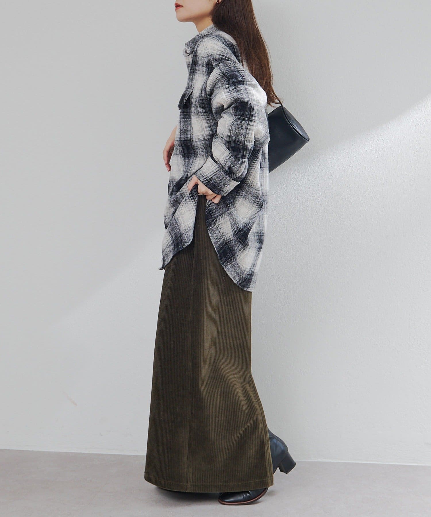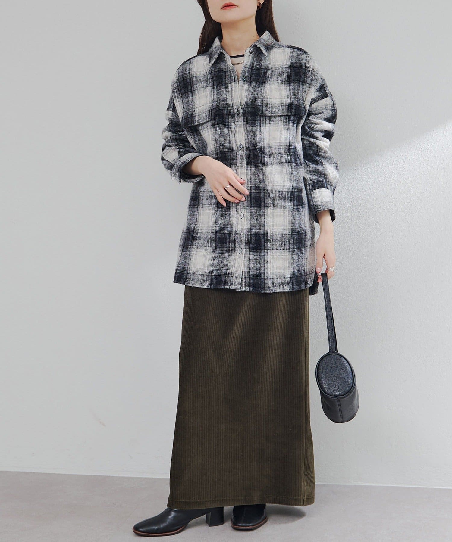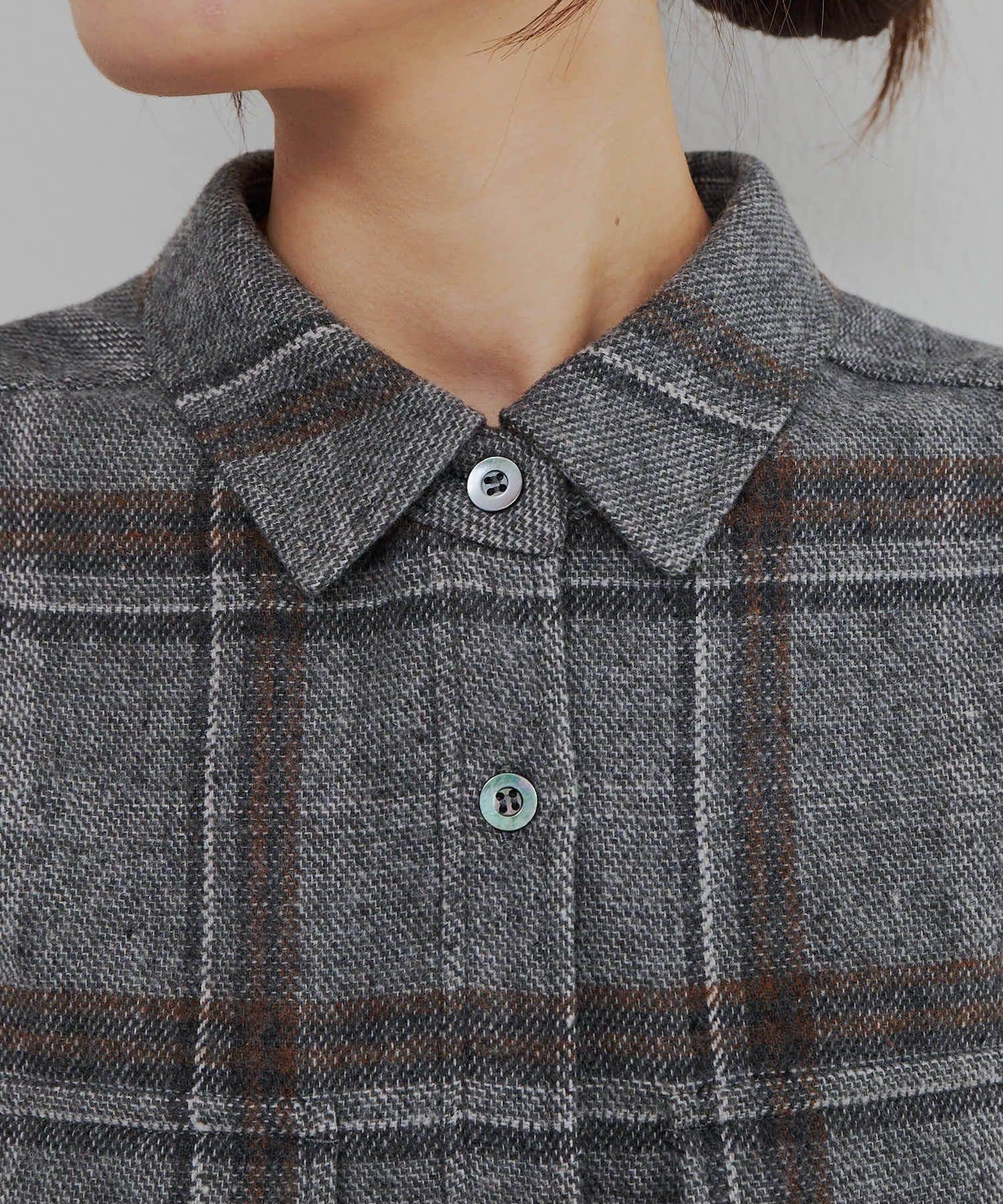冬のシックなムードにぴったりな落ち着いたトーンのチェックシャツ。