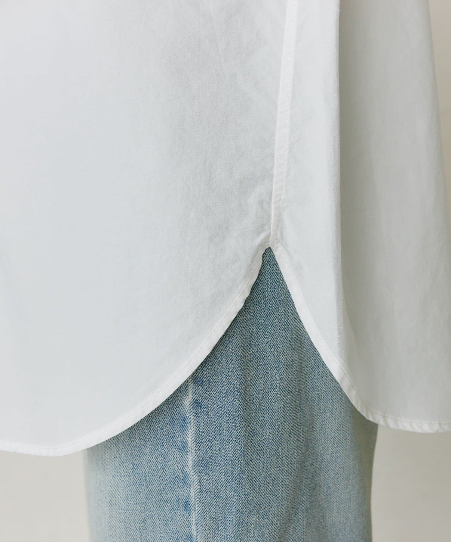 裾はタックインもタックアウトもサマになるラウンドヘムで仕上げ、