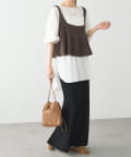 ゆとりのあるスラックスやカーブパンツ合わせも、着丈の短いビスチェなのでバランスを取りやすいです。