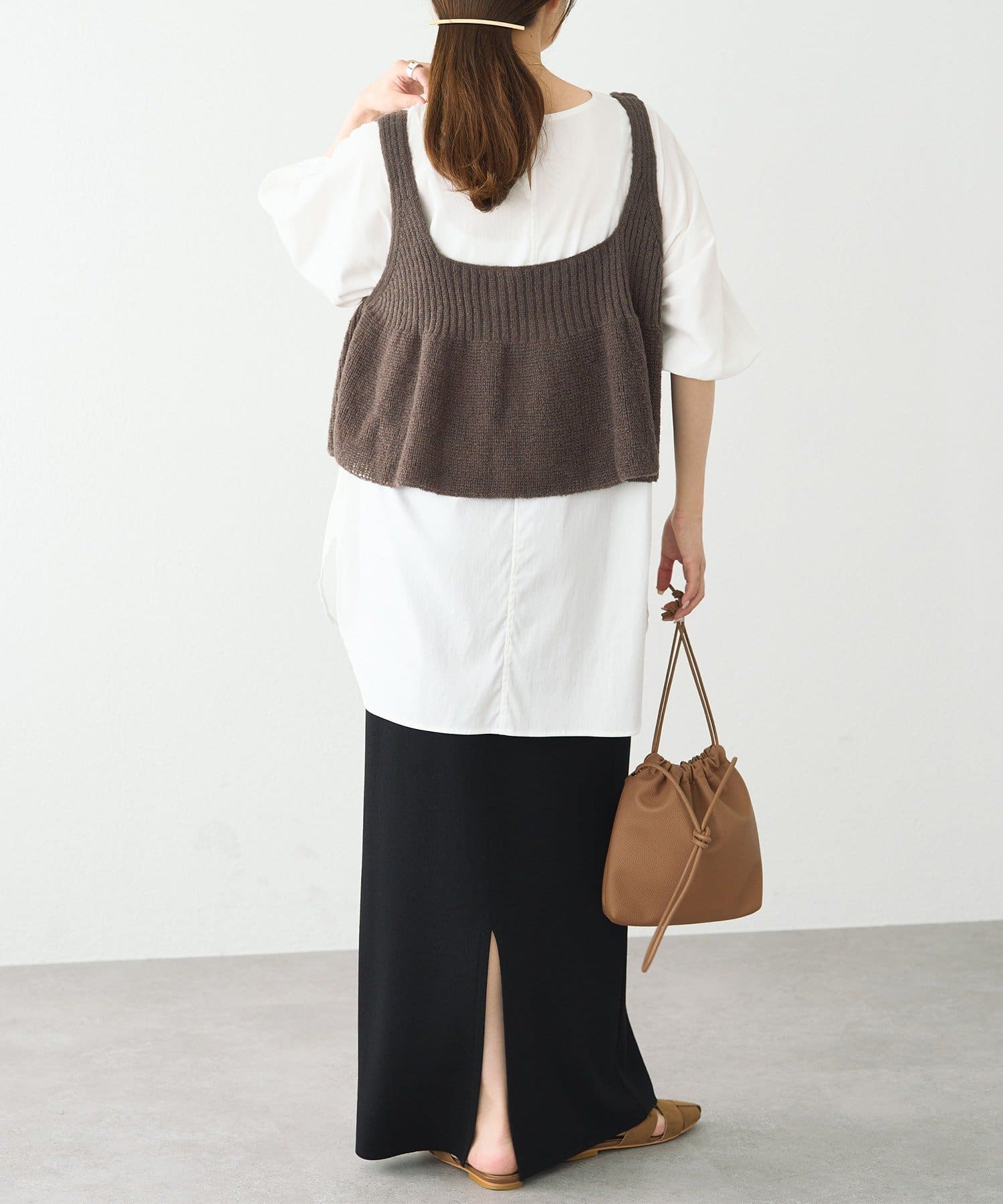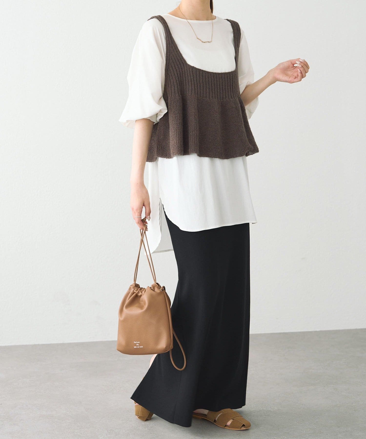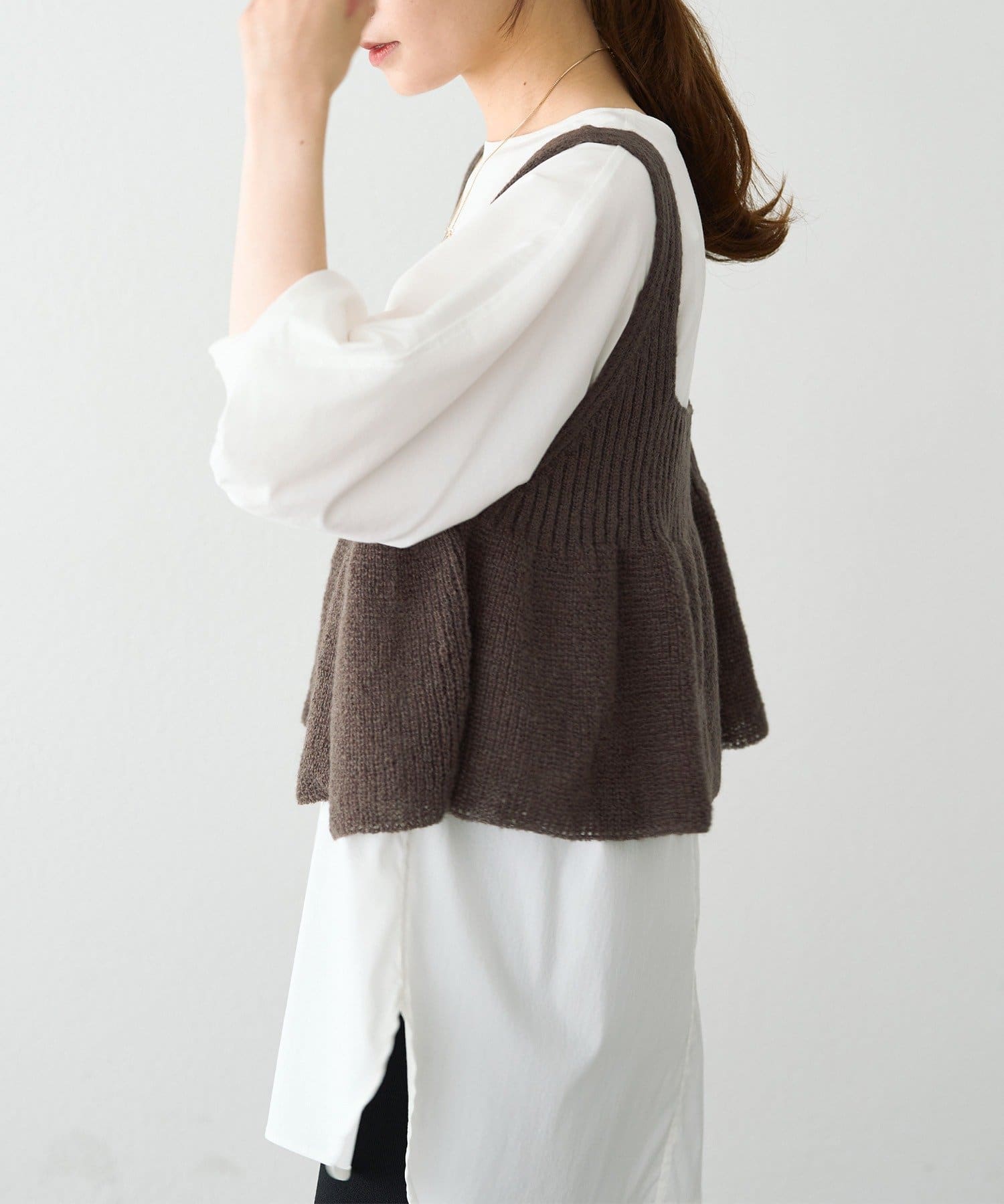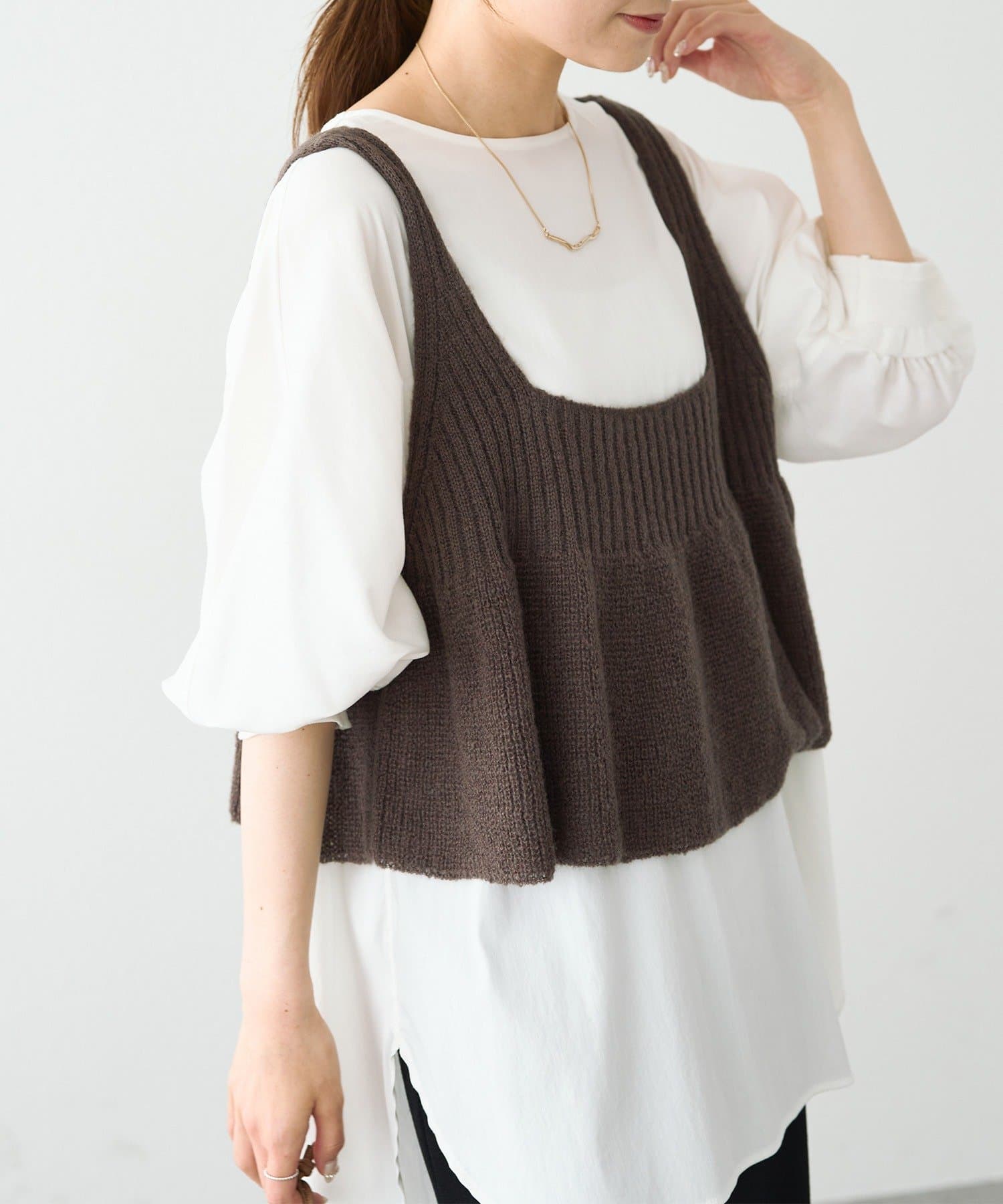 普段のコーディネートにプラスワンしてオシャレ度がアップするニットビスチェ。