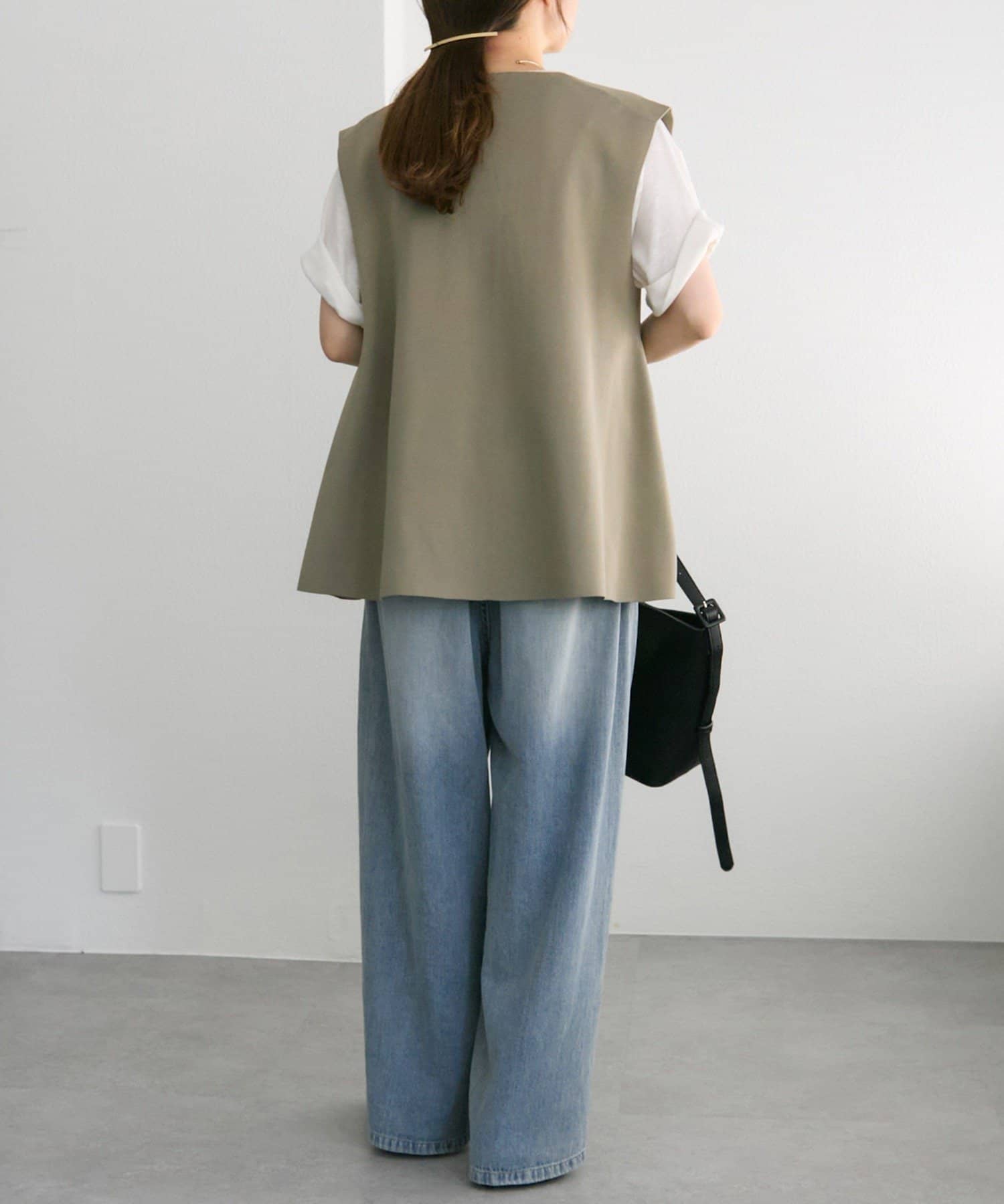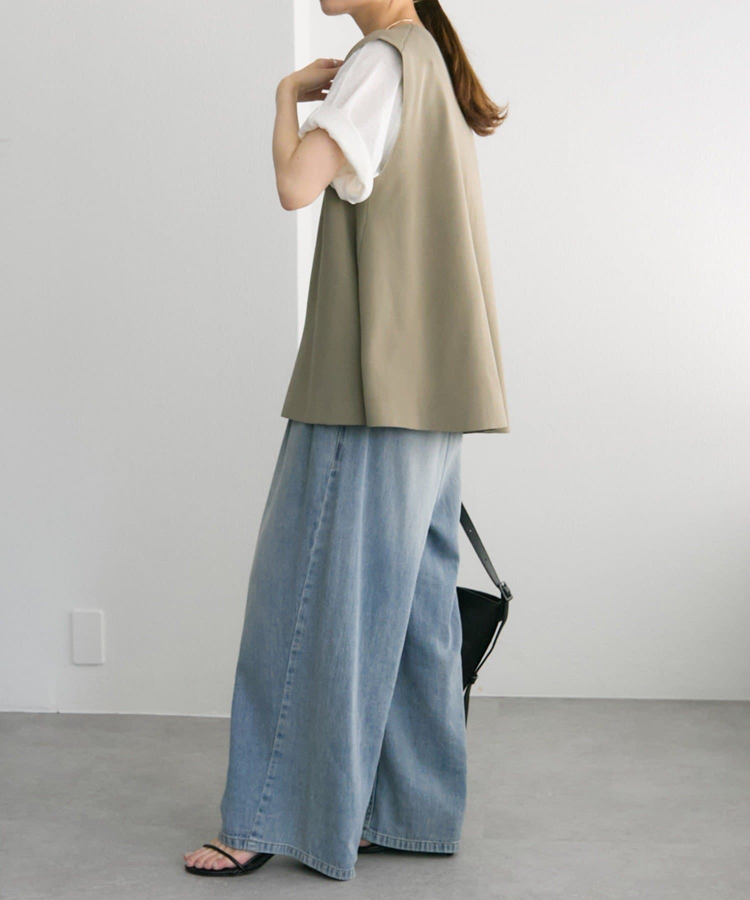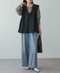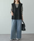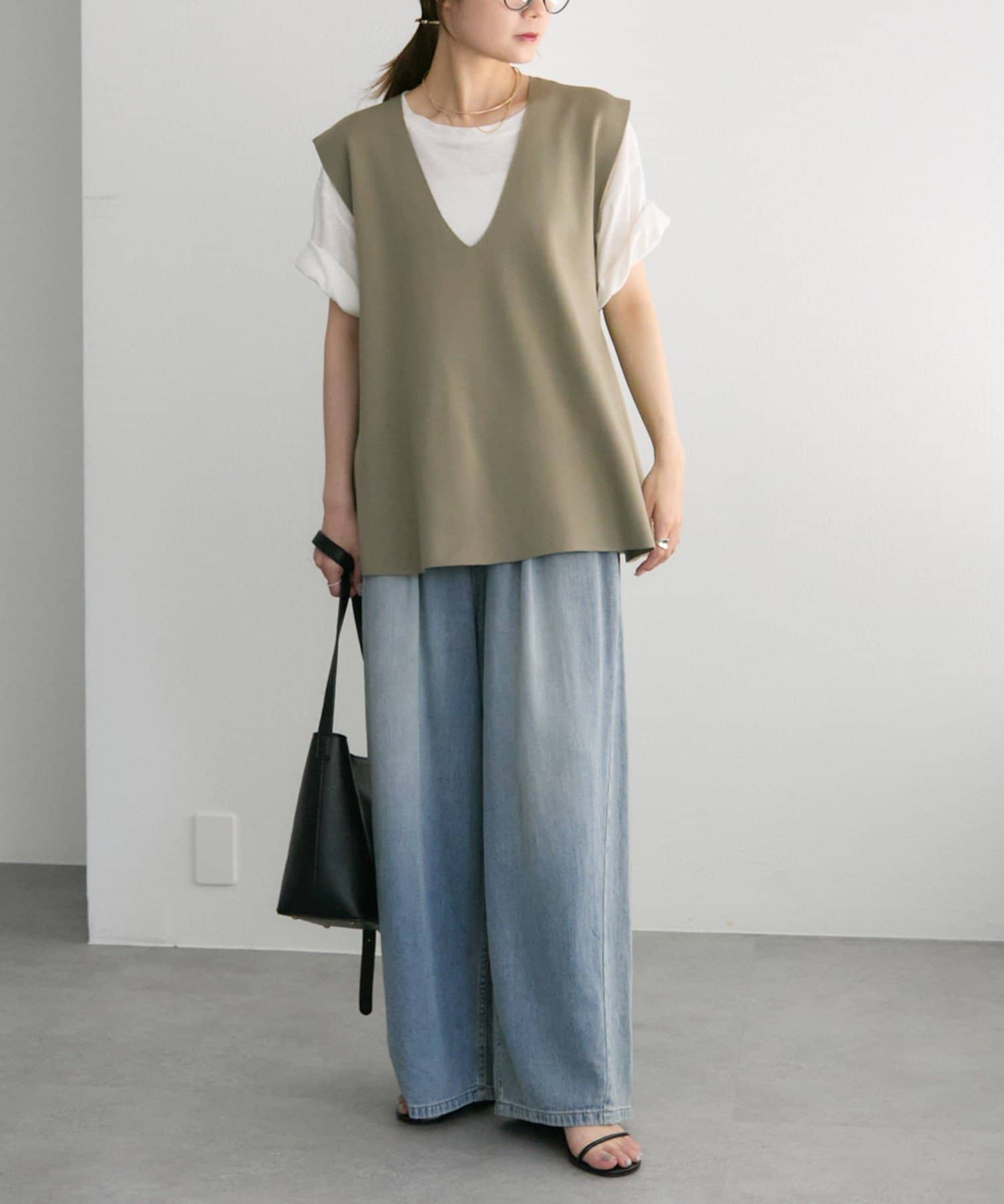 カットソーやデニムパンツなどカジュアルなアイテムと合わせて、リラクシーな雰囲気にこなれ感をプラス。