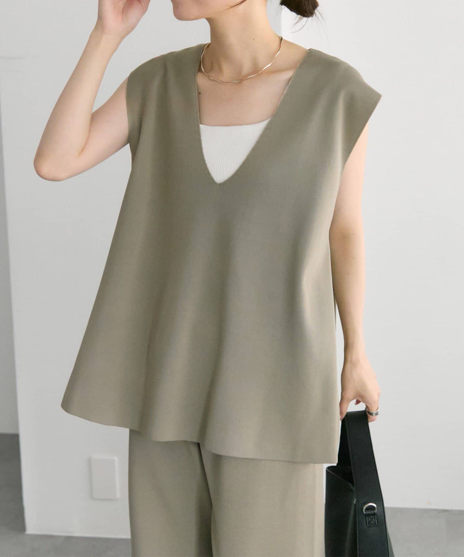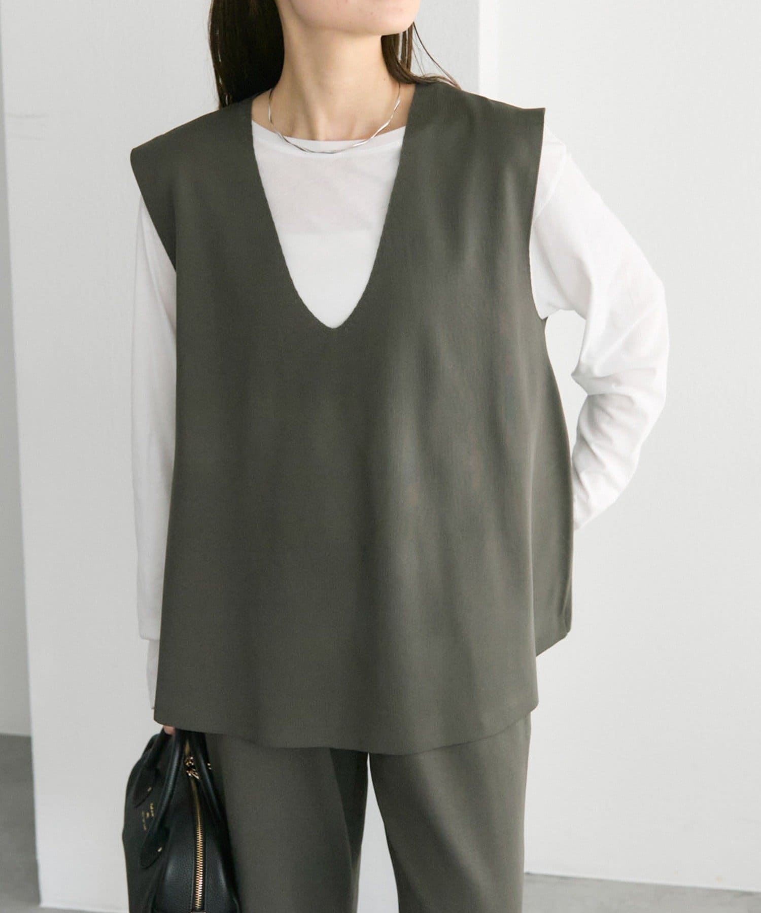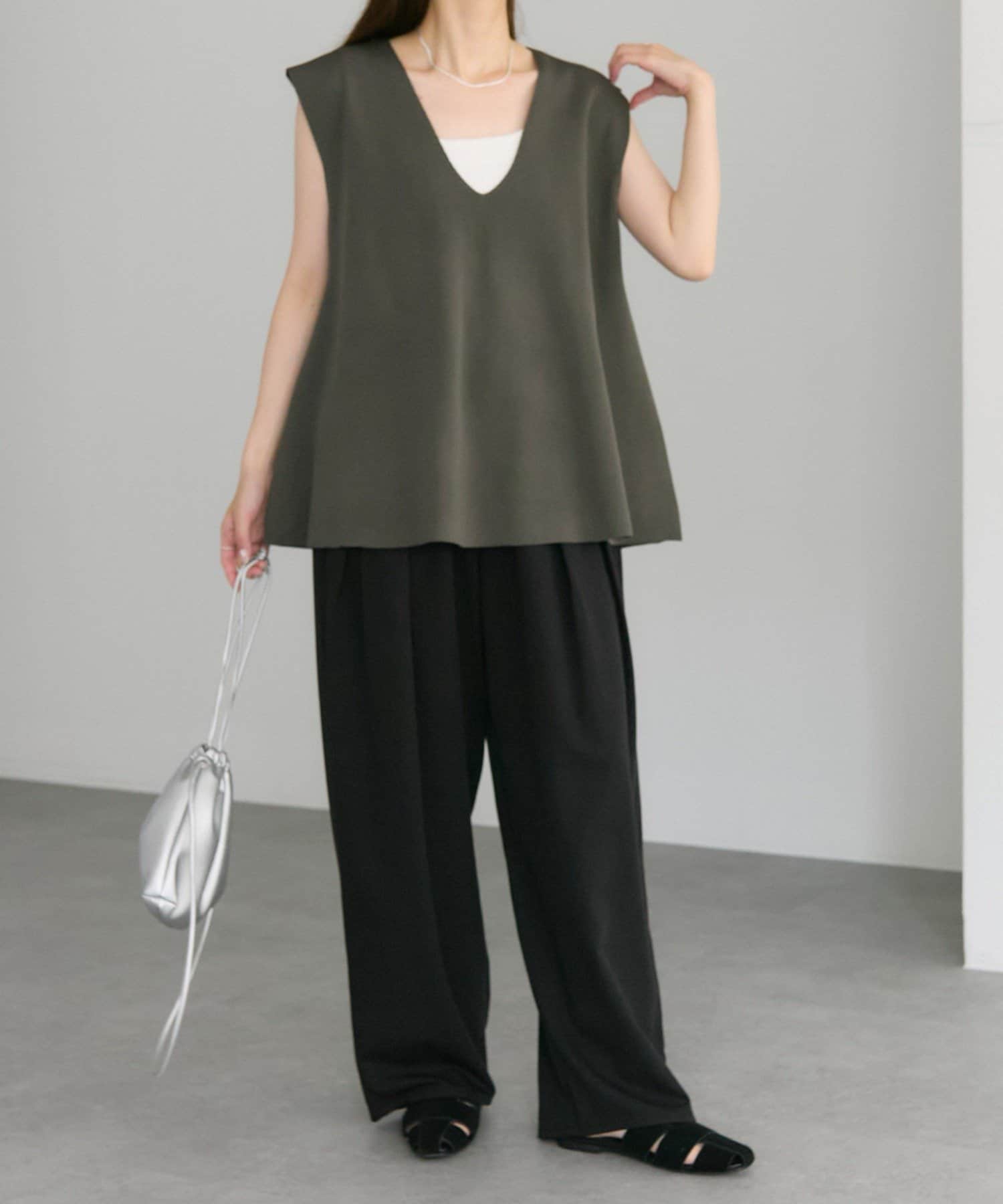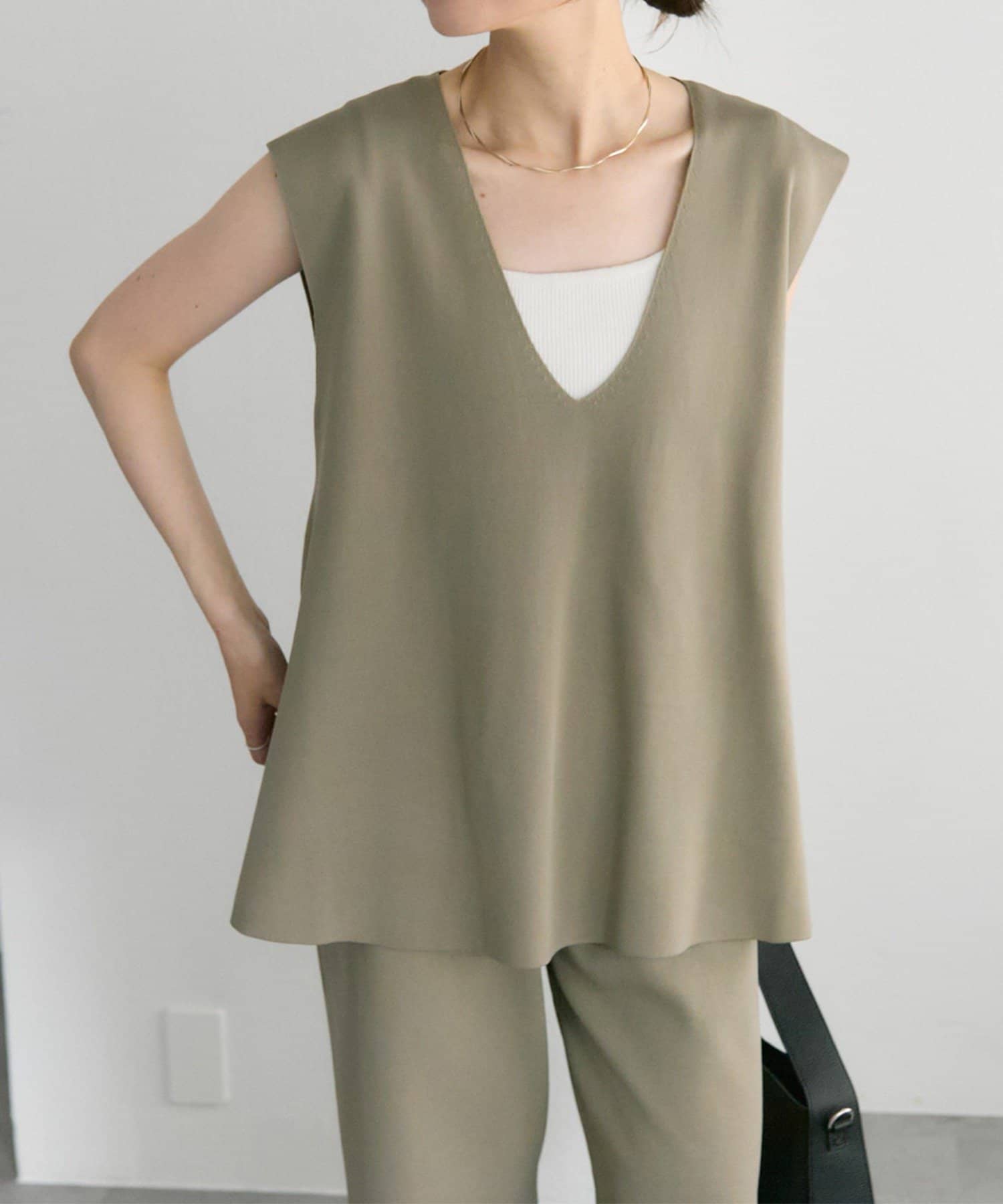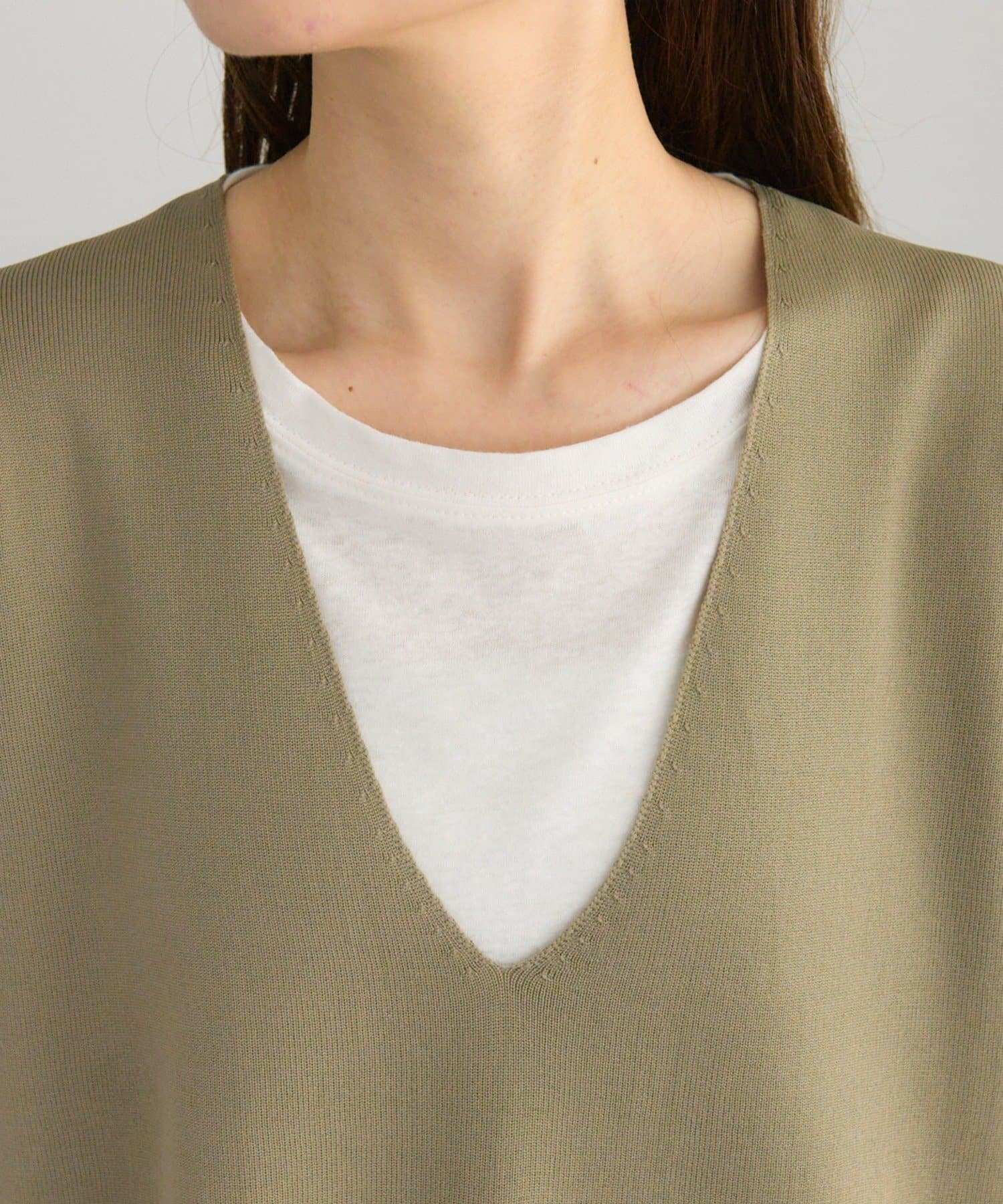程よい大人の抜け感を生み出す深めのVネックで、首元や顔周りをすっきりと見せ上品な雰囲気を演出。