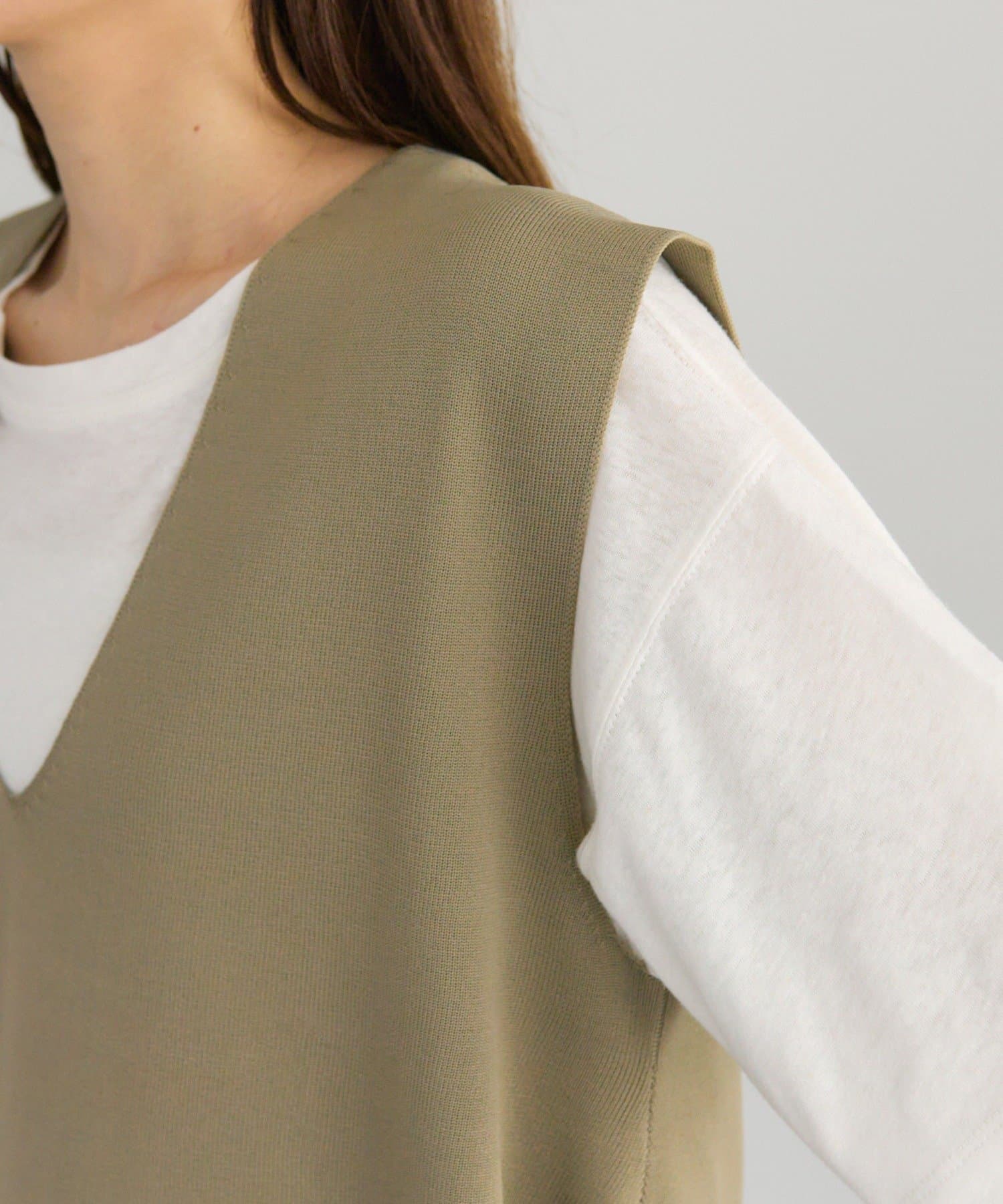 着用感:スポンディッシュニット素材で、ニットベストながら軽やかな着心地でした。