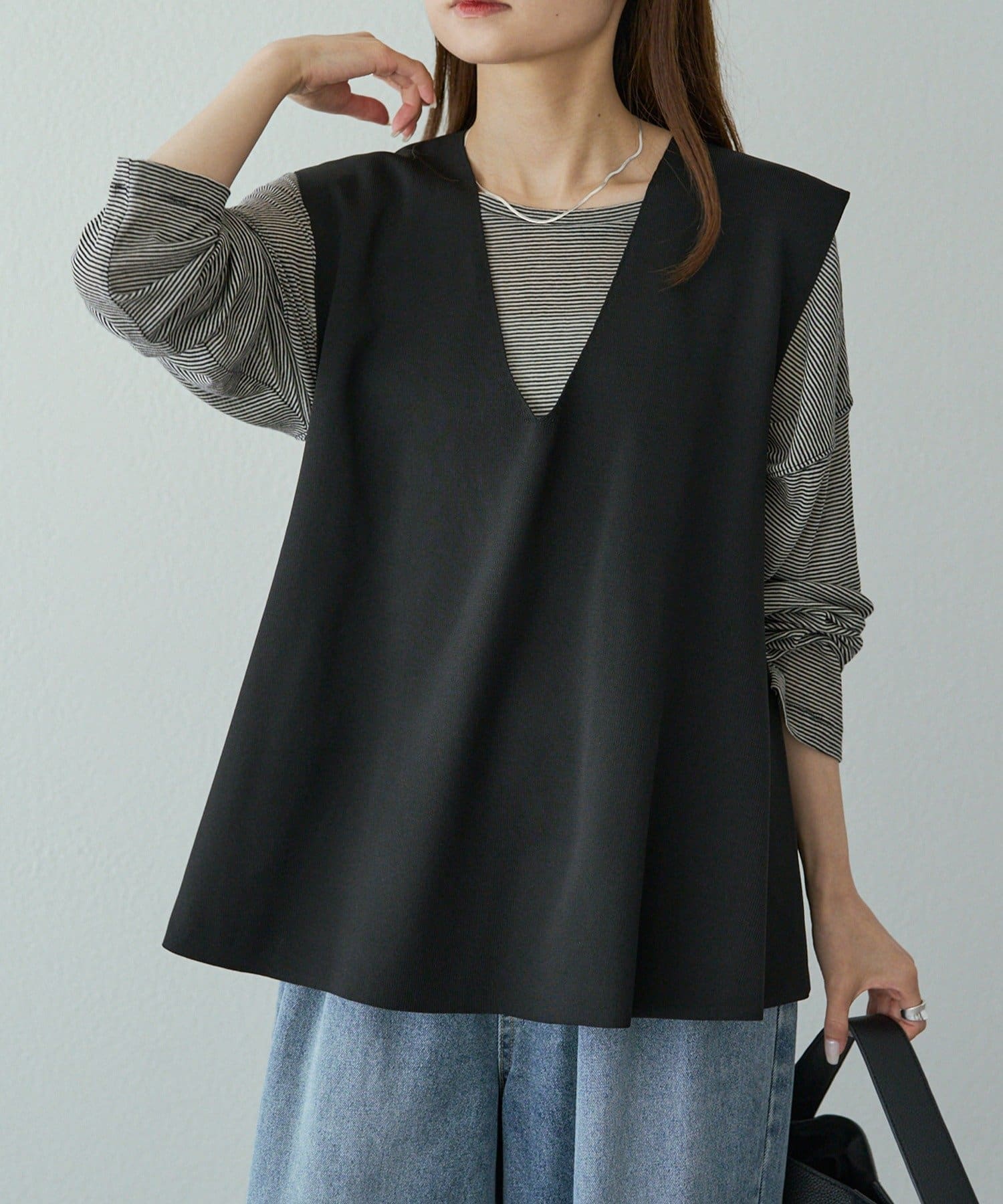 広めのアームホールなので袖今シャツのトップスとも、もたつくことなくレイヤードスタイルをお楽しみいただけます。