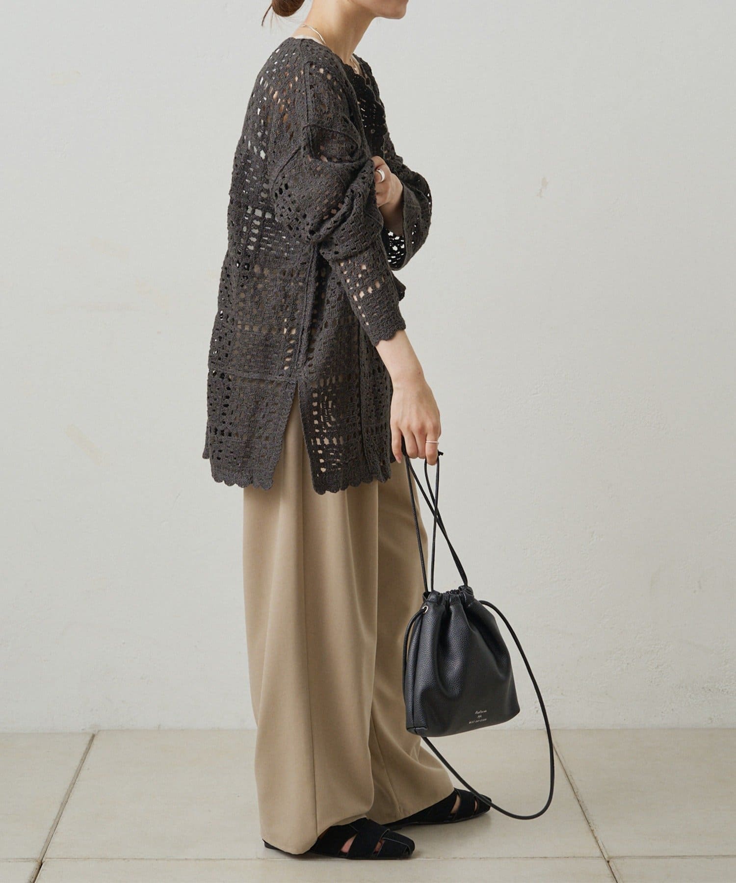 クロシェット風に編まれた、肌に馴染む柔らかさがある生地を使用。