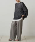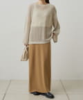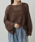 透け感のあるニットなので、タンクトップやキャミソールなどヘルシーなインナーの上に重ねて着用するのがオススメ。