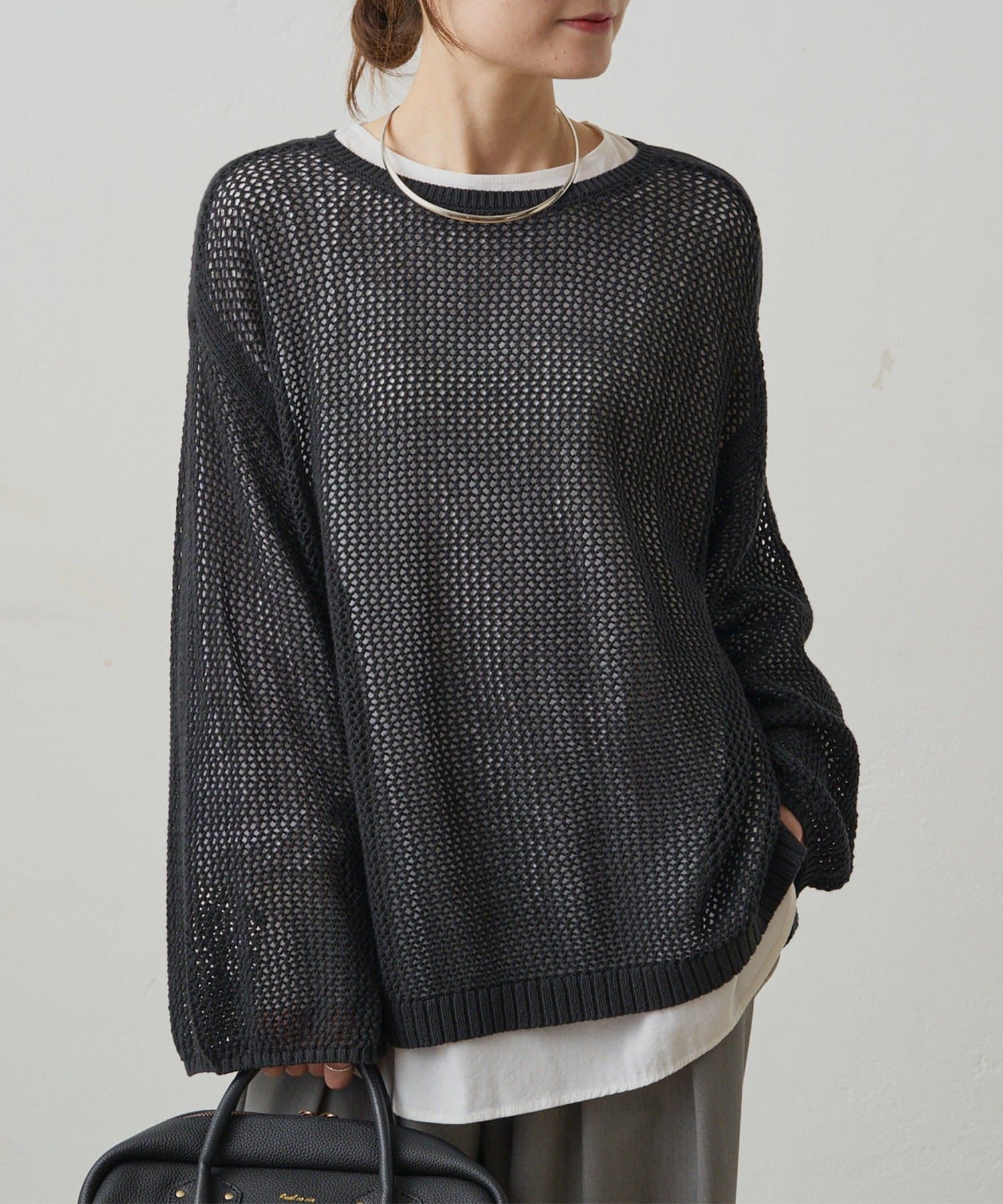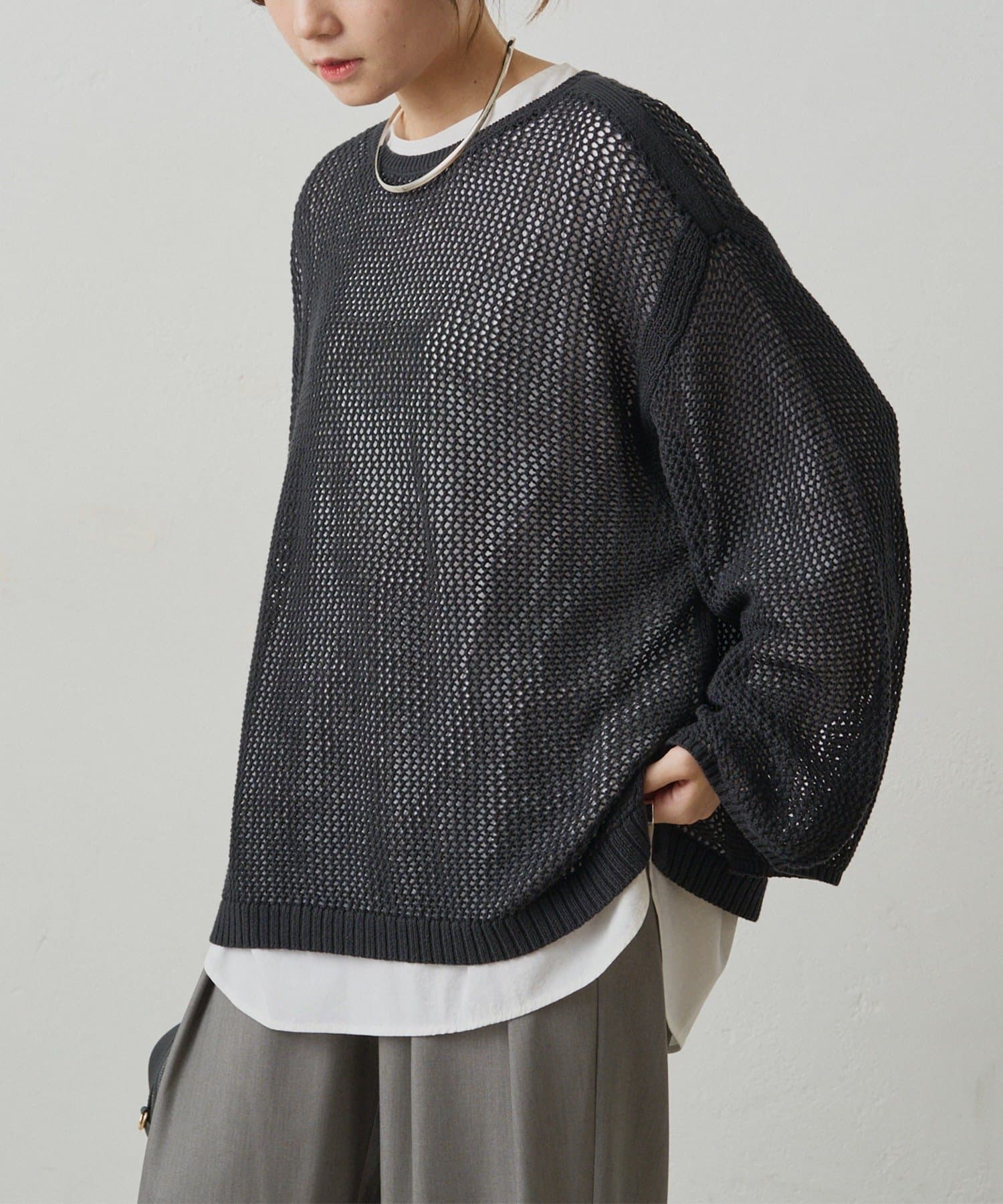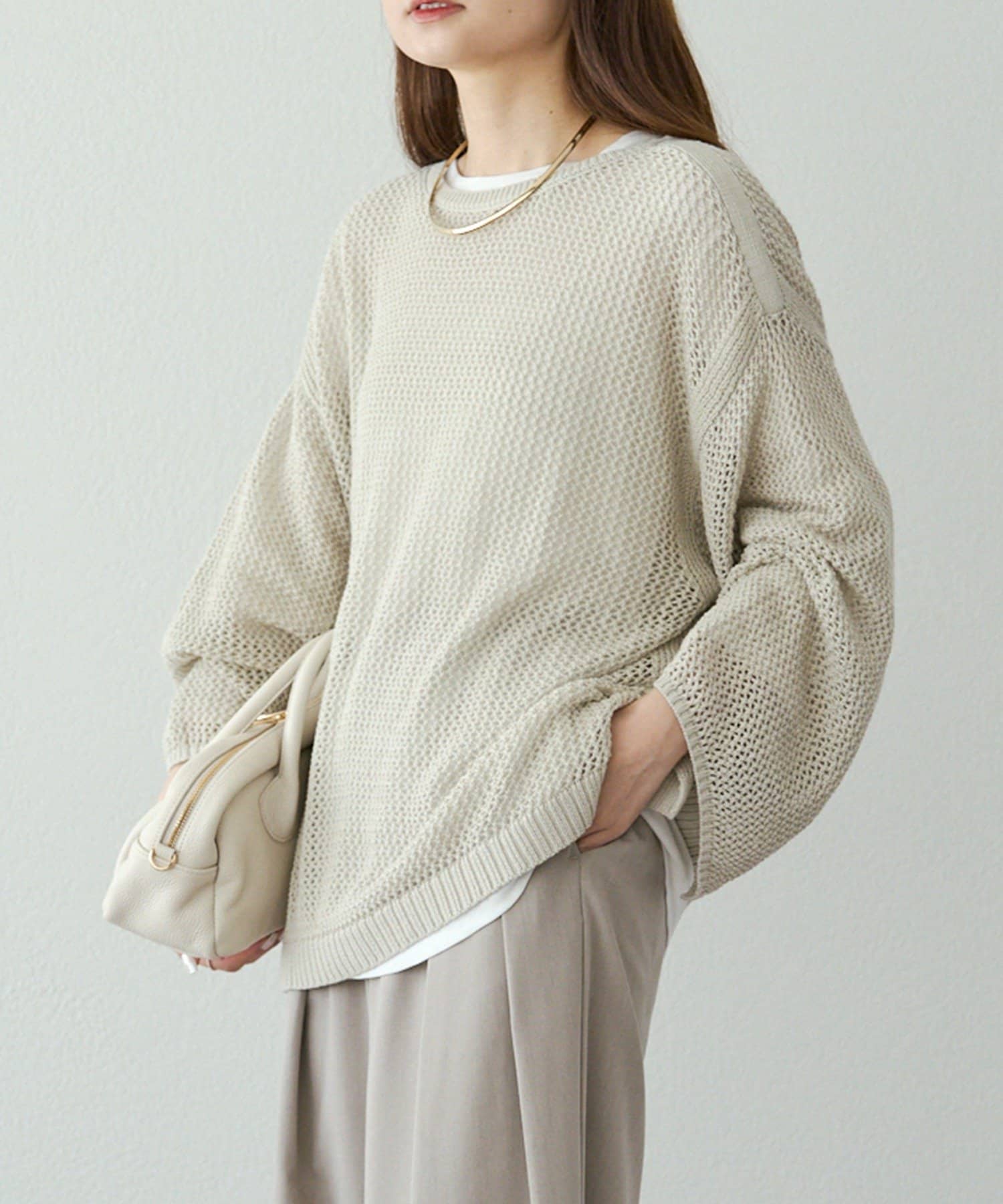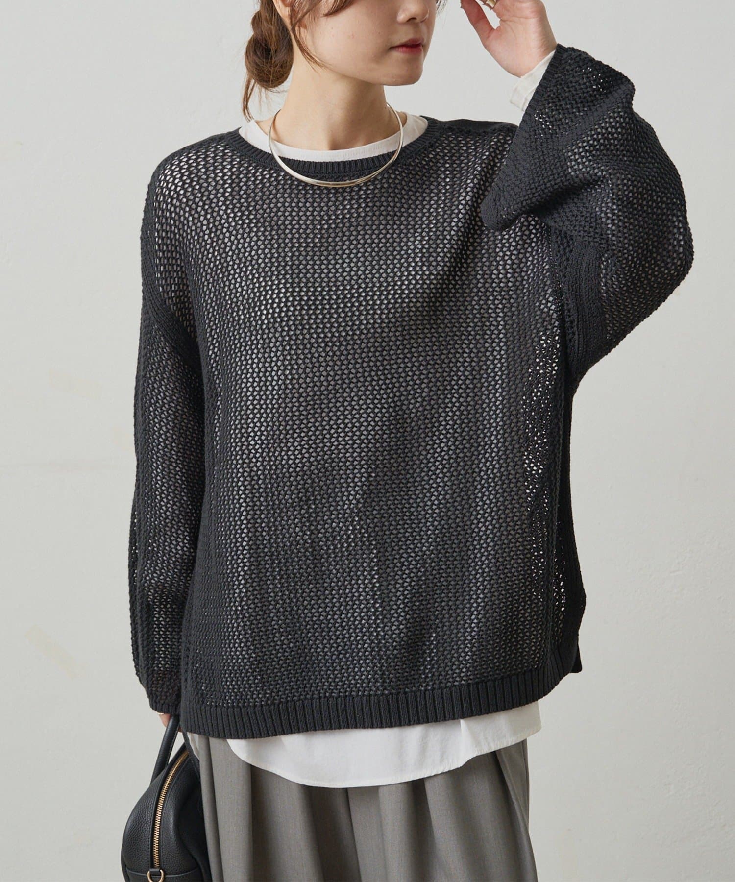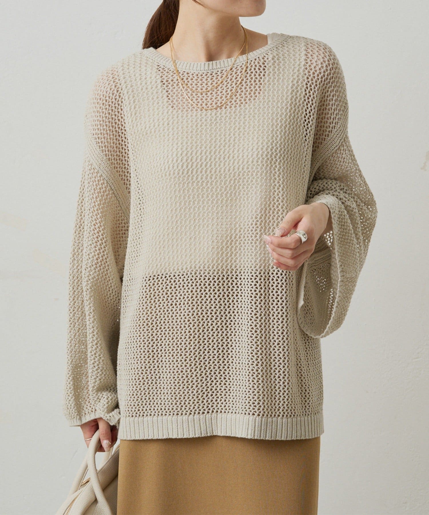 トレンドのメッシュ編みが大人カジュアルなニット。