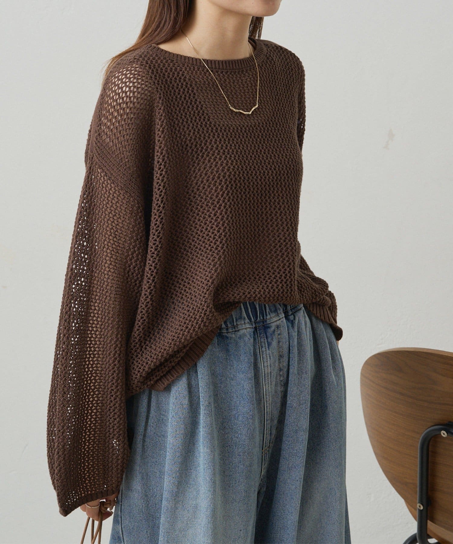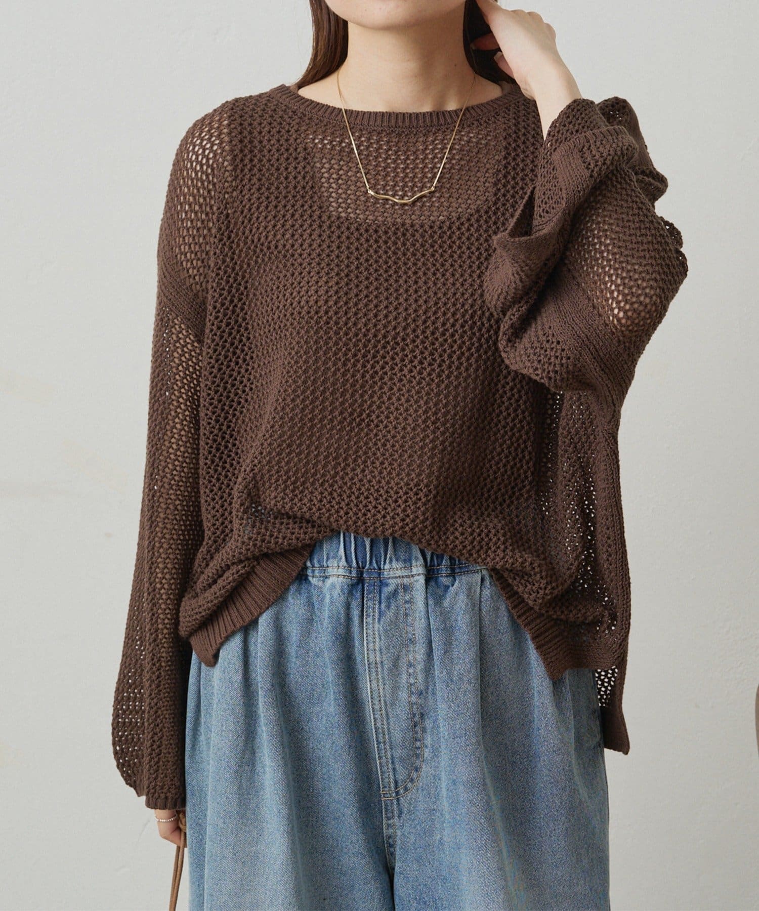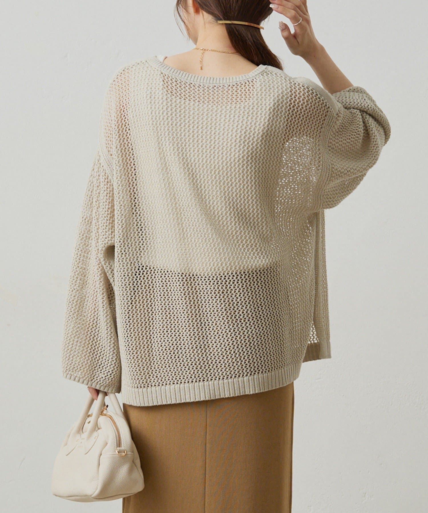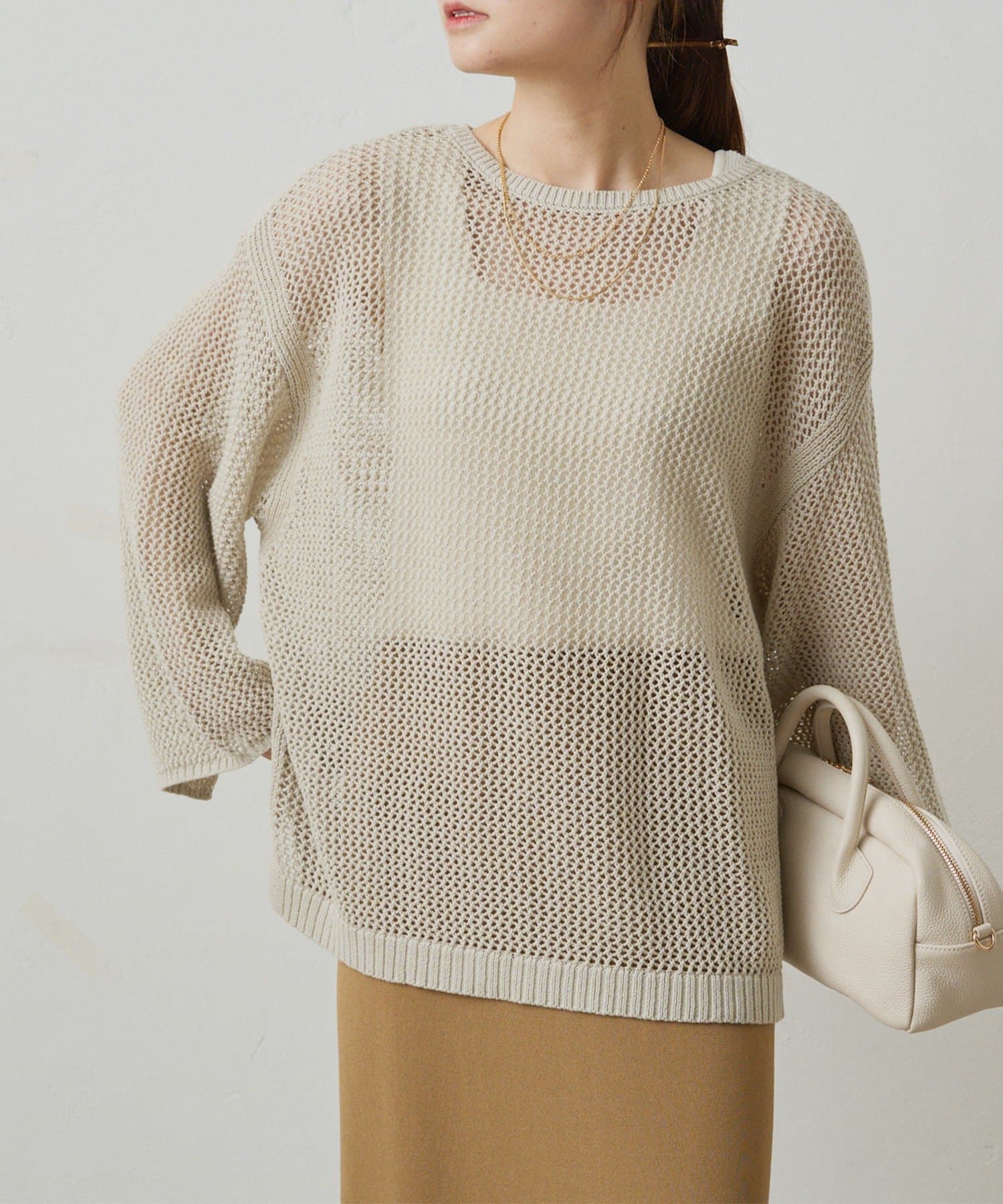 トレンドのメッシュ編みが大人カジュアルなニット。