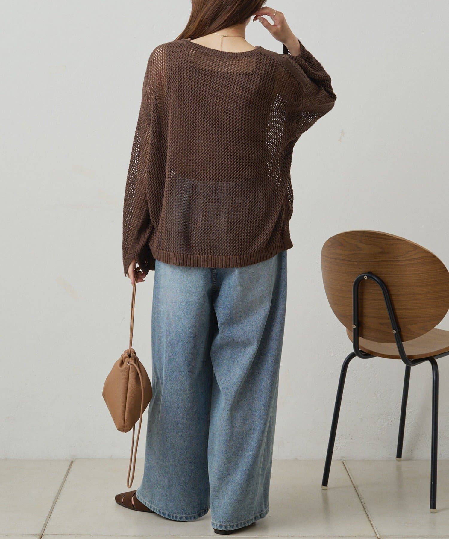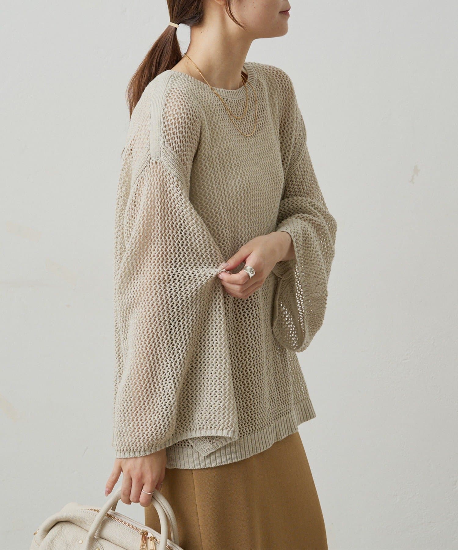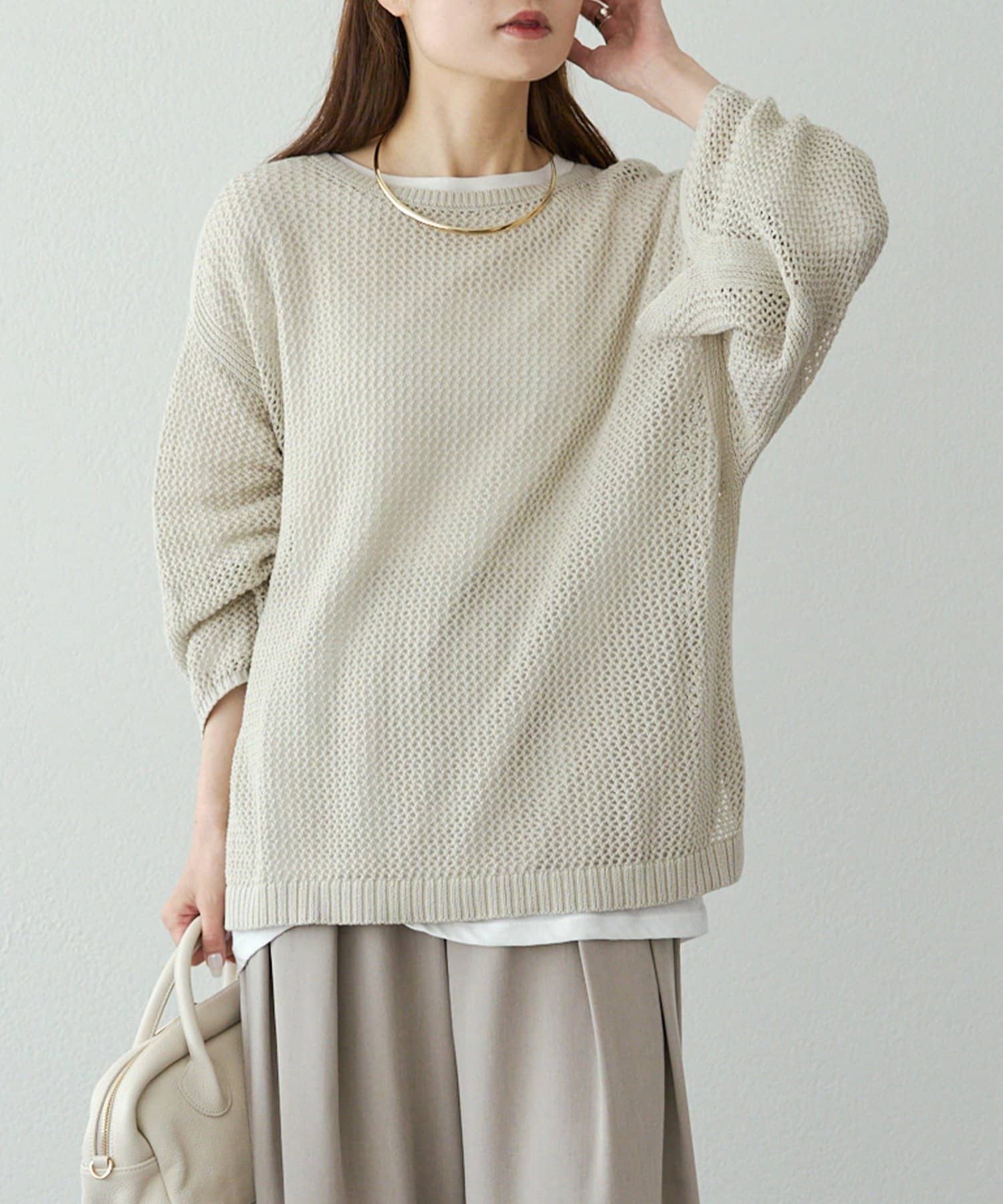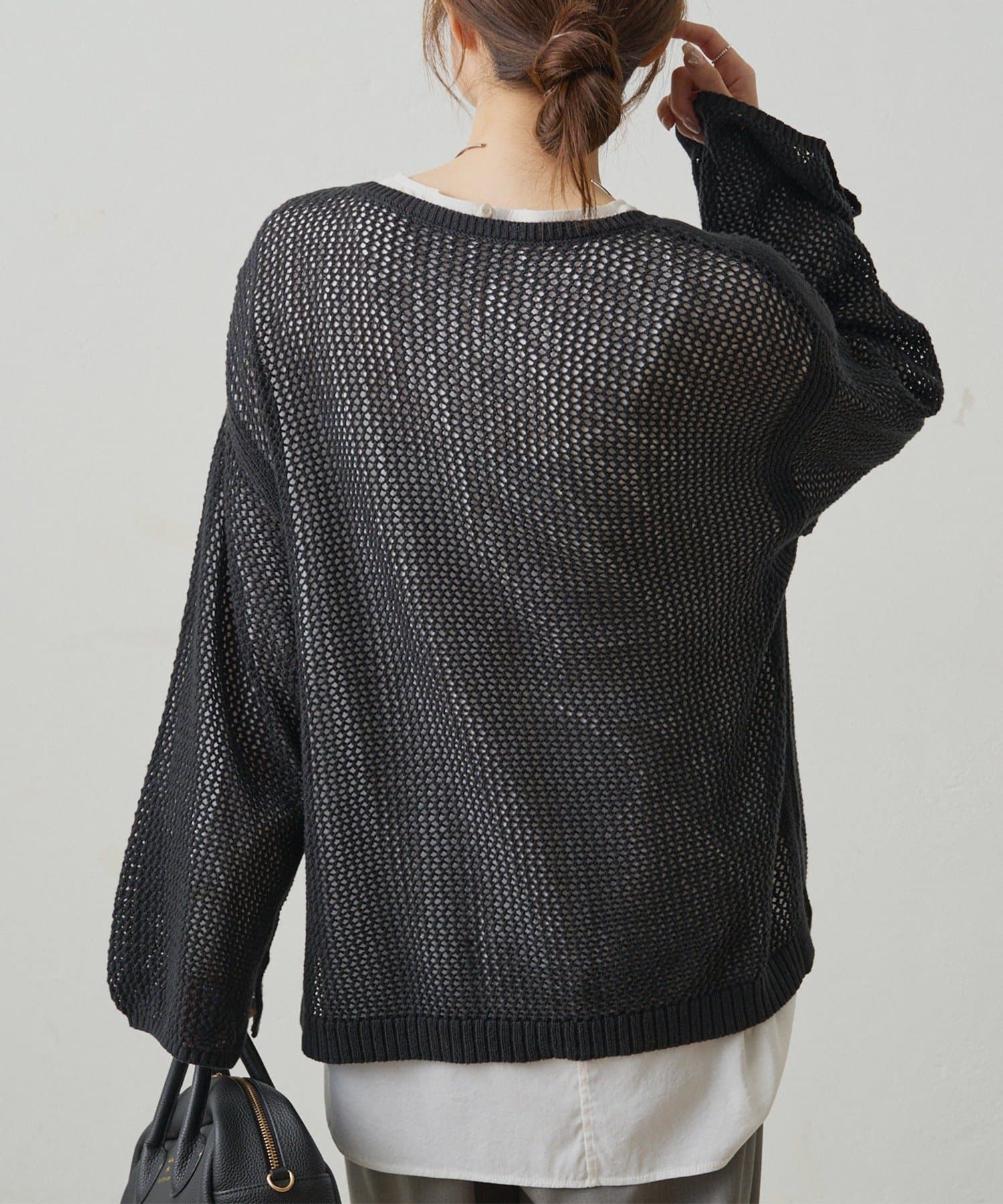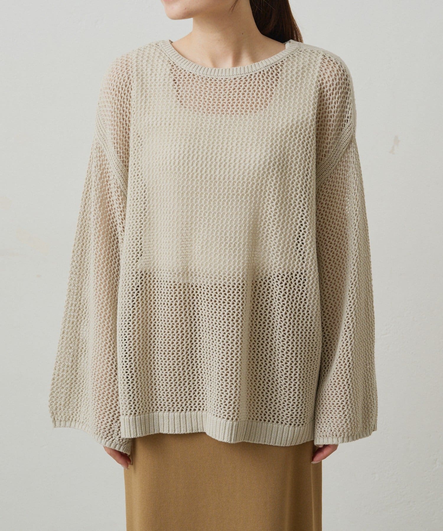 トレンドのメッシュ編みが大人カジュアルなニット。