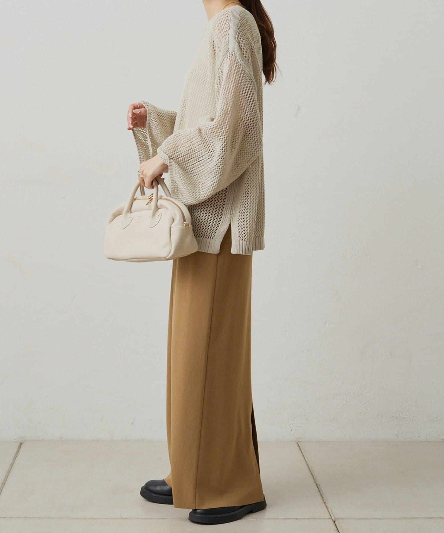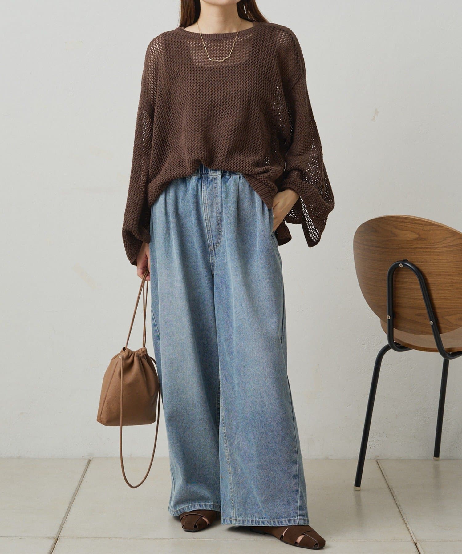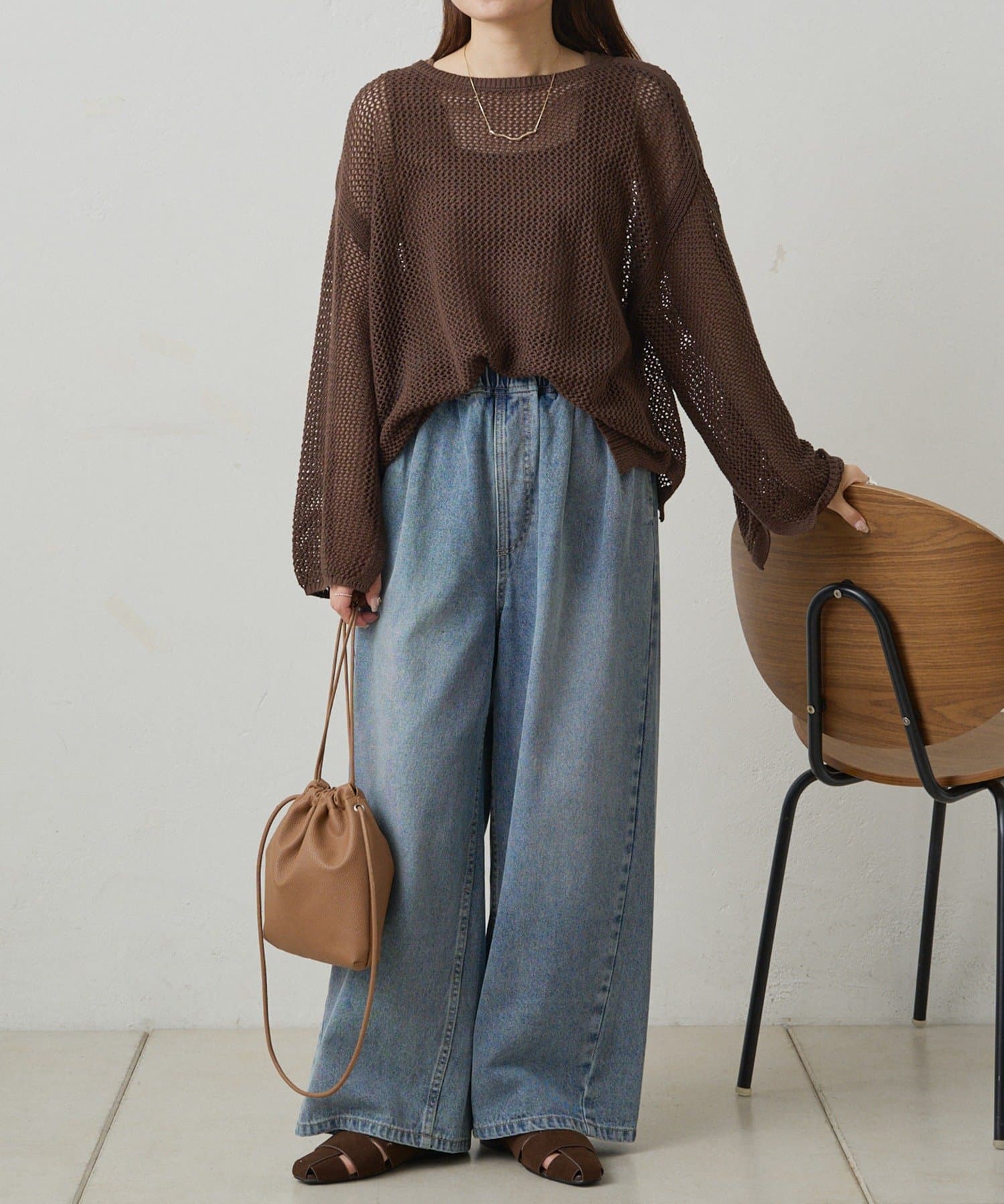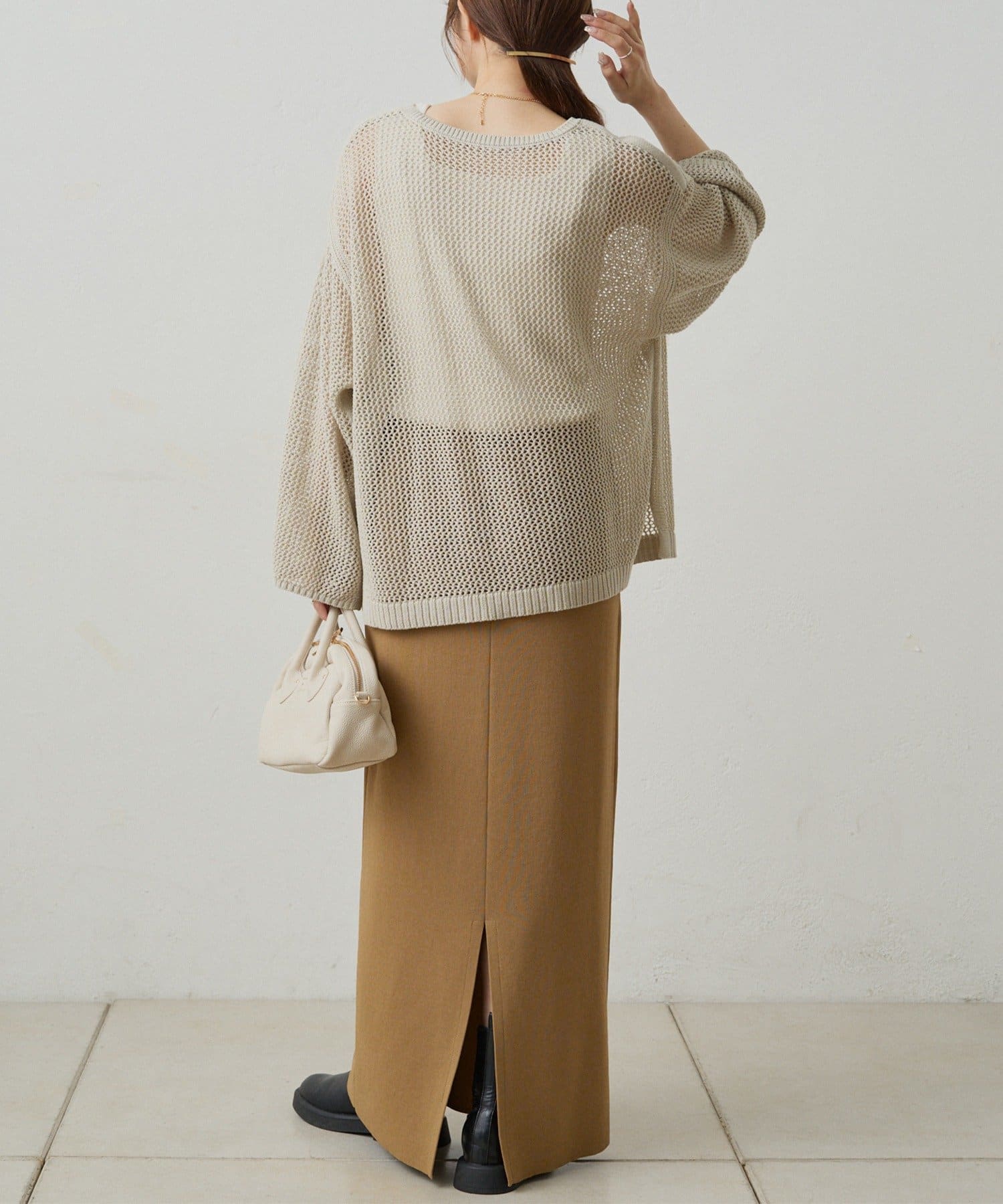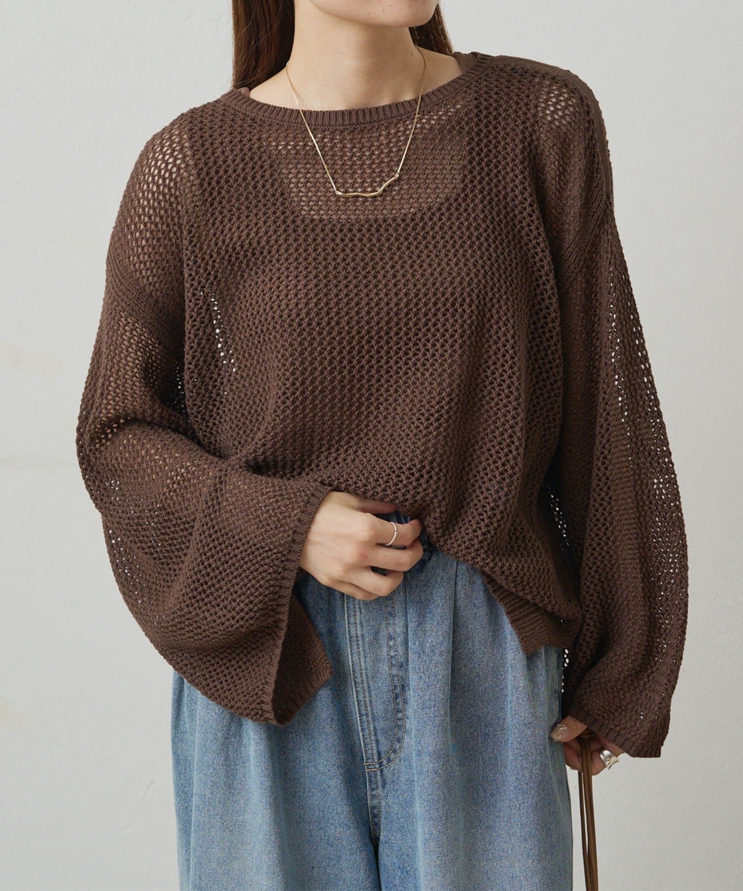 トレンドのメッシュ編みが大人カジュアルなニット。