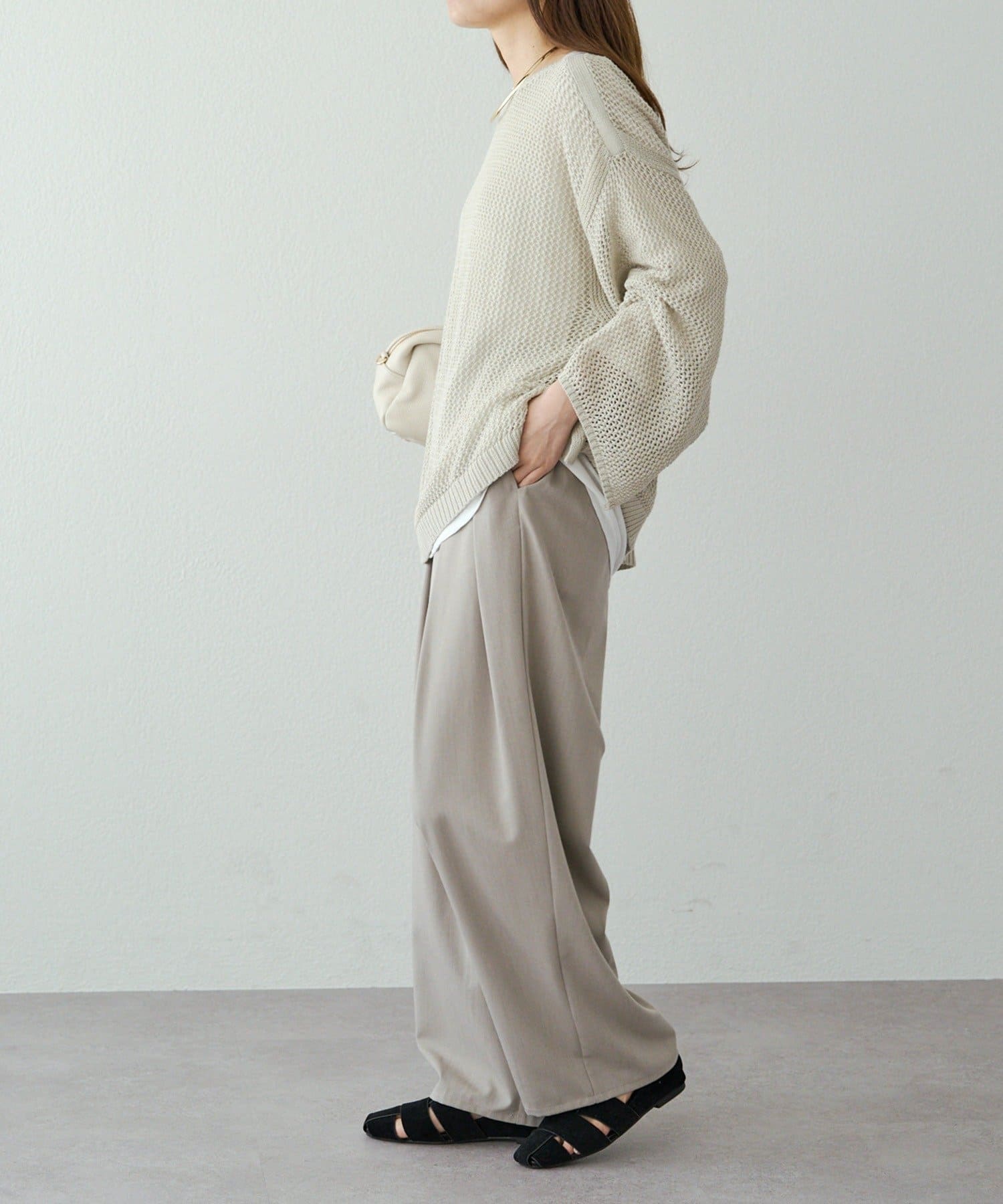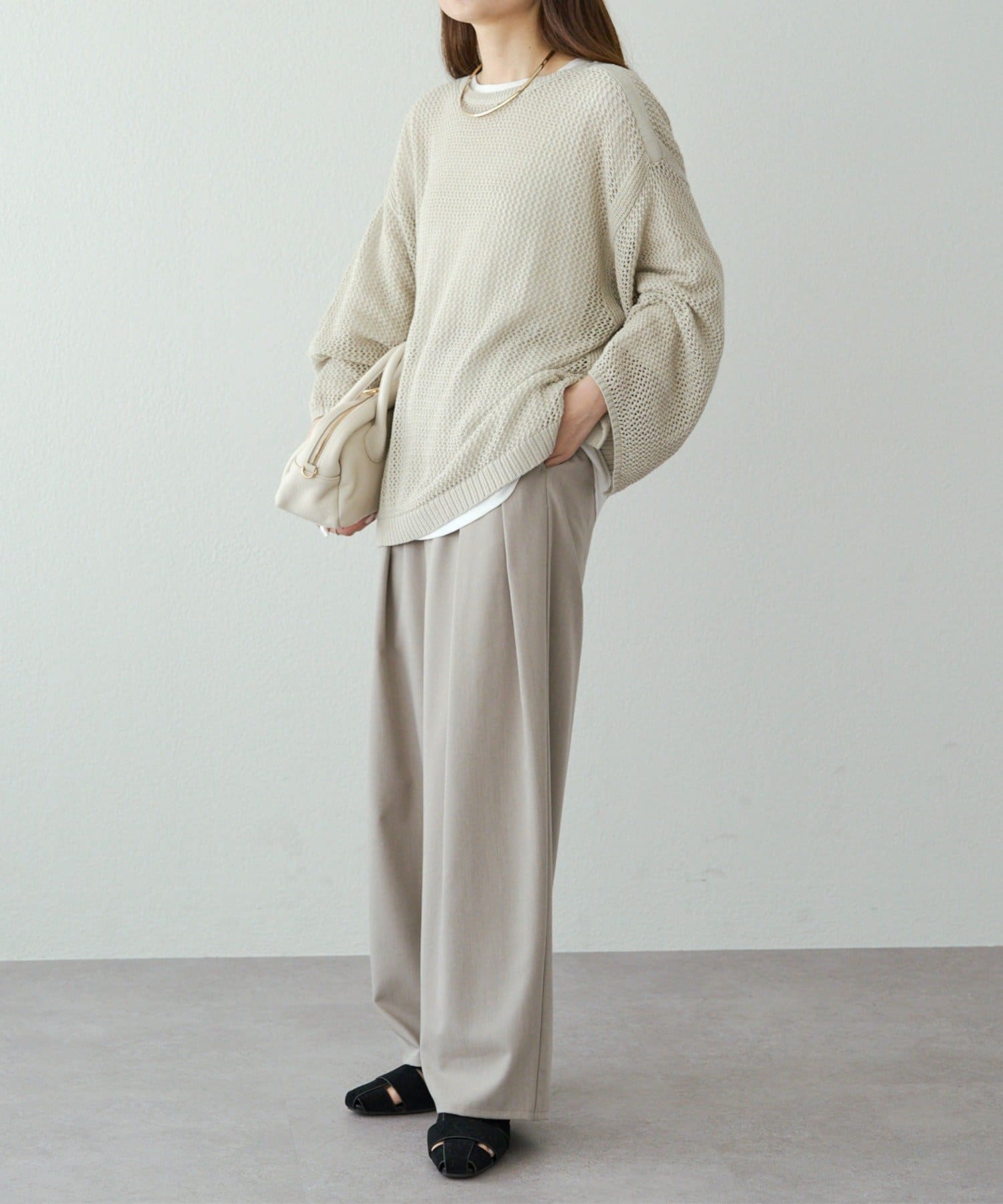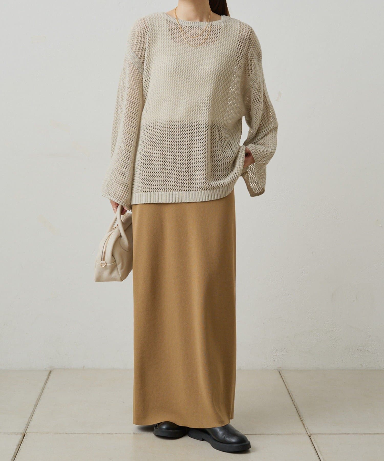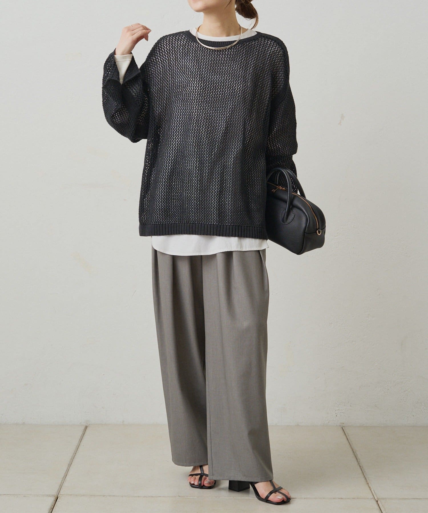 編み目が大き過ぎず上品なバランスでレイヤードを楽しめ、大人女性でもデイリーに取り入れやすい一着。
