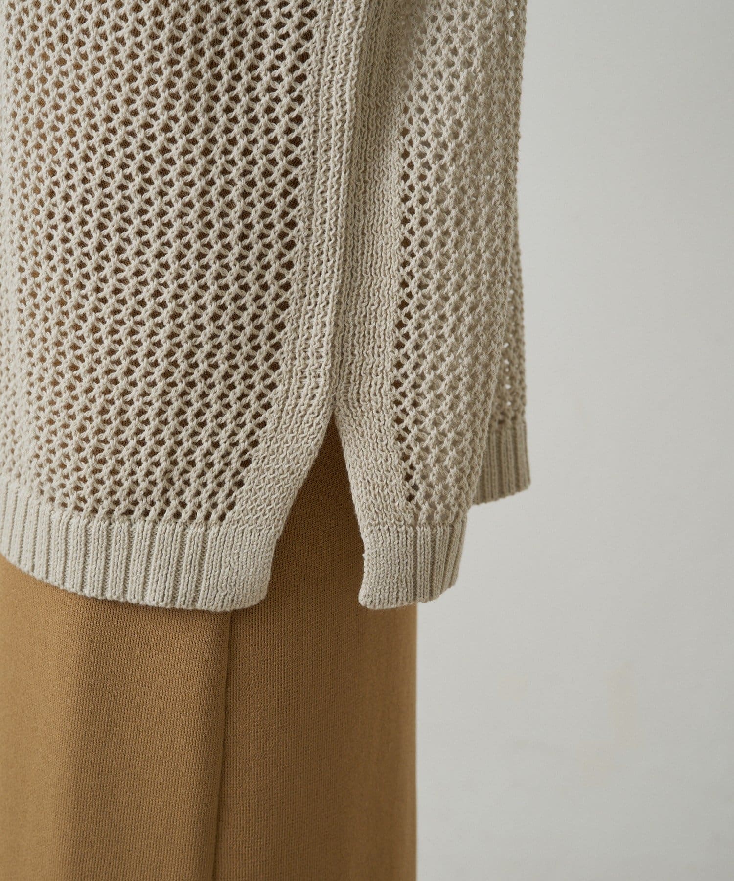 肌当たり柔らかな5Gのコットン糸を使い、メッシュ編みされたニットです。