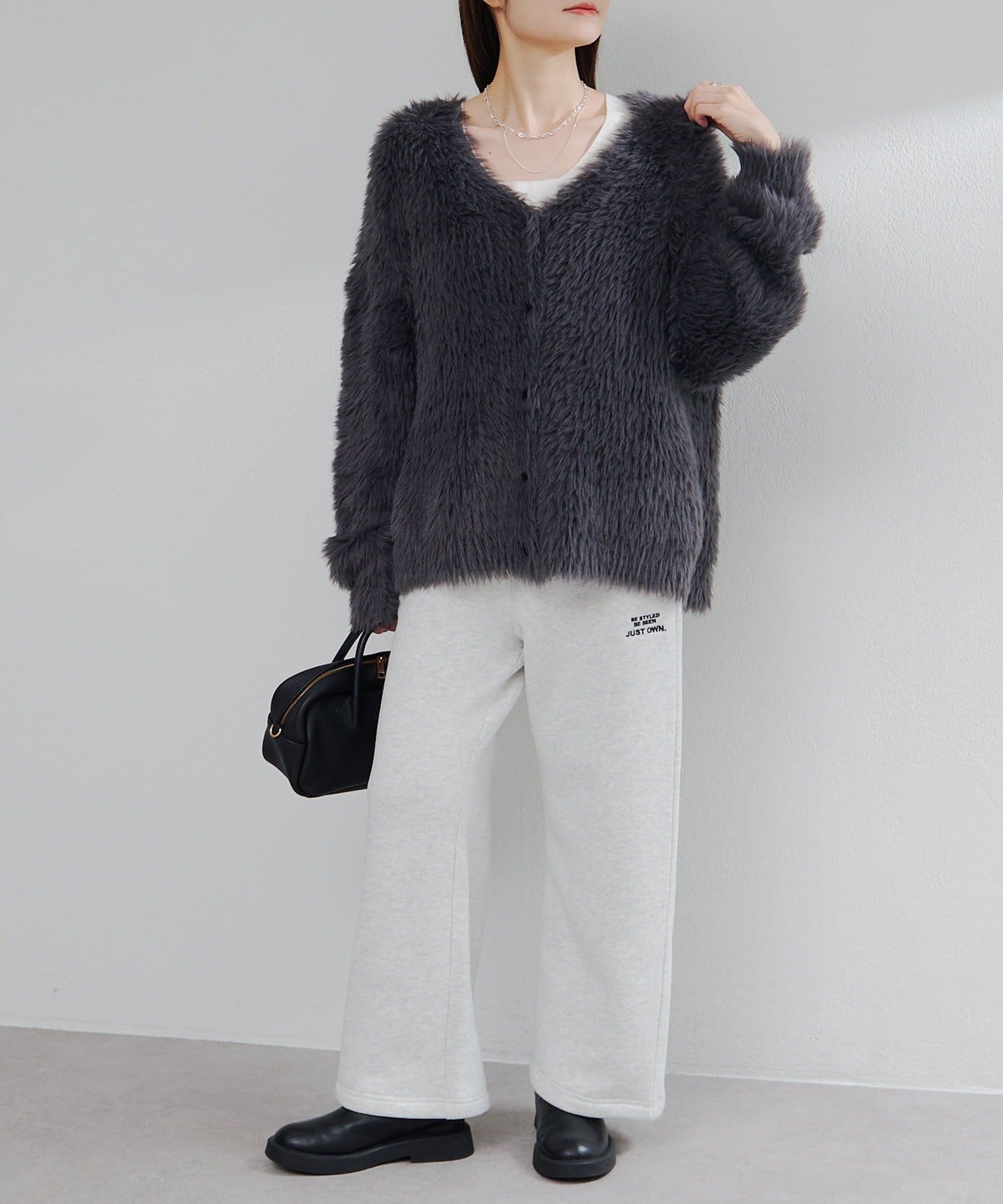存在感を放つ長めの毛足が魅力のシャギーニットカーディガン。