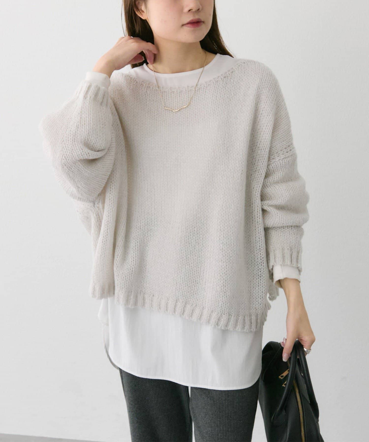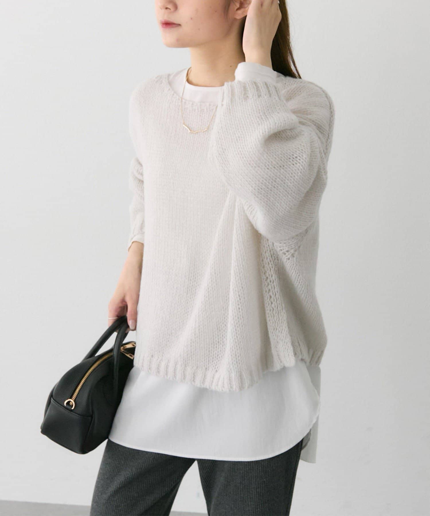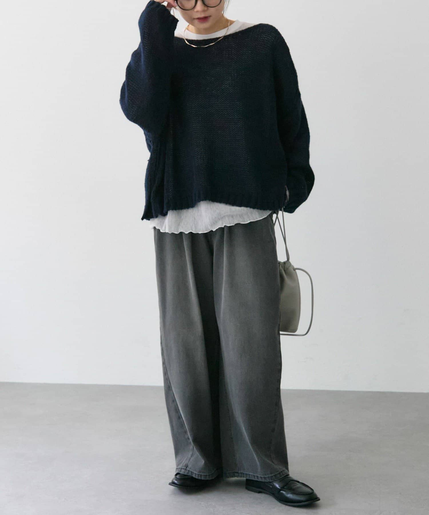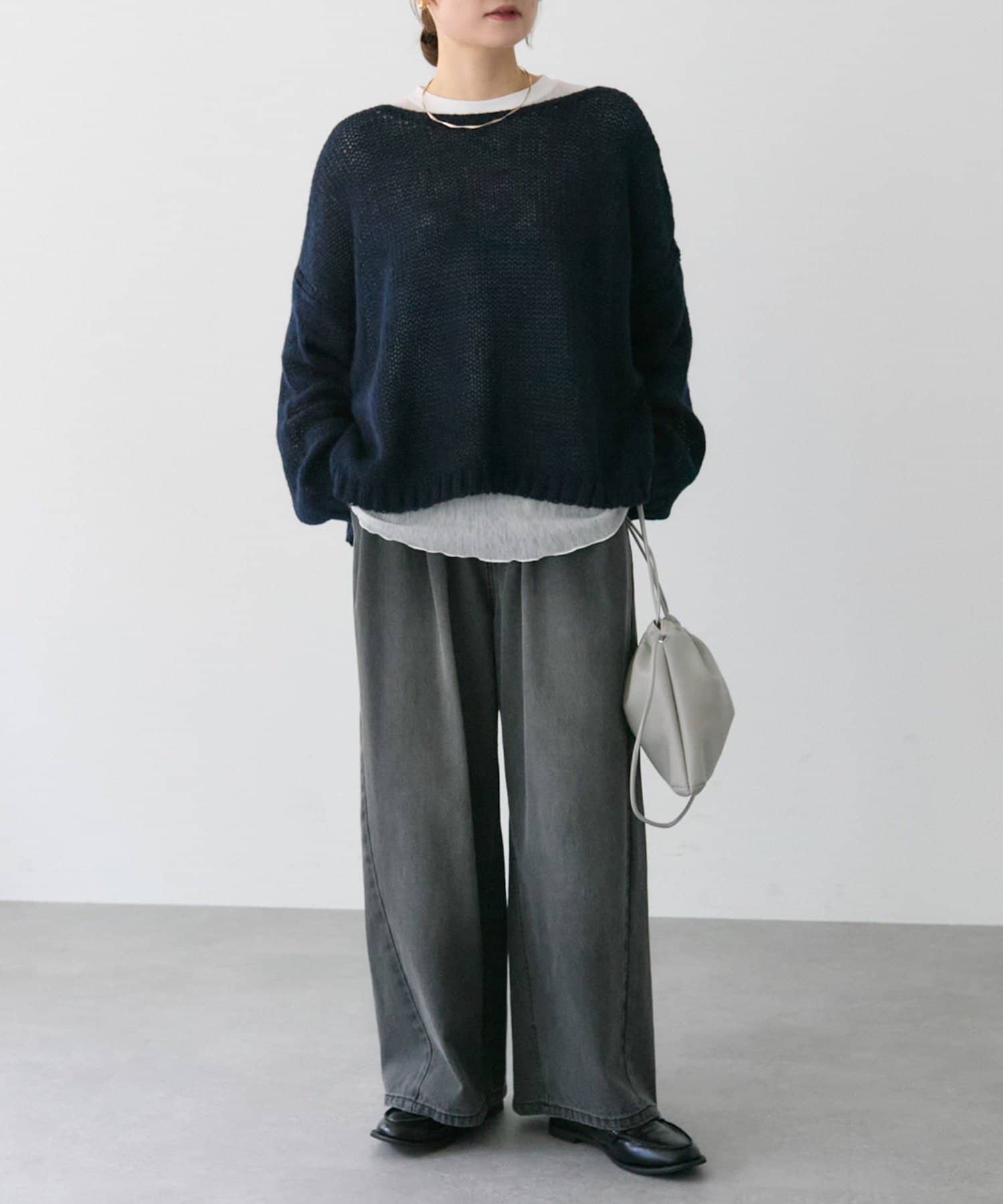 ゆったりとした薄手のニットは、レイヤードしても着ぶくれしにくくインナー選びが楽しかったです。