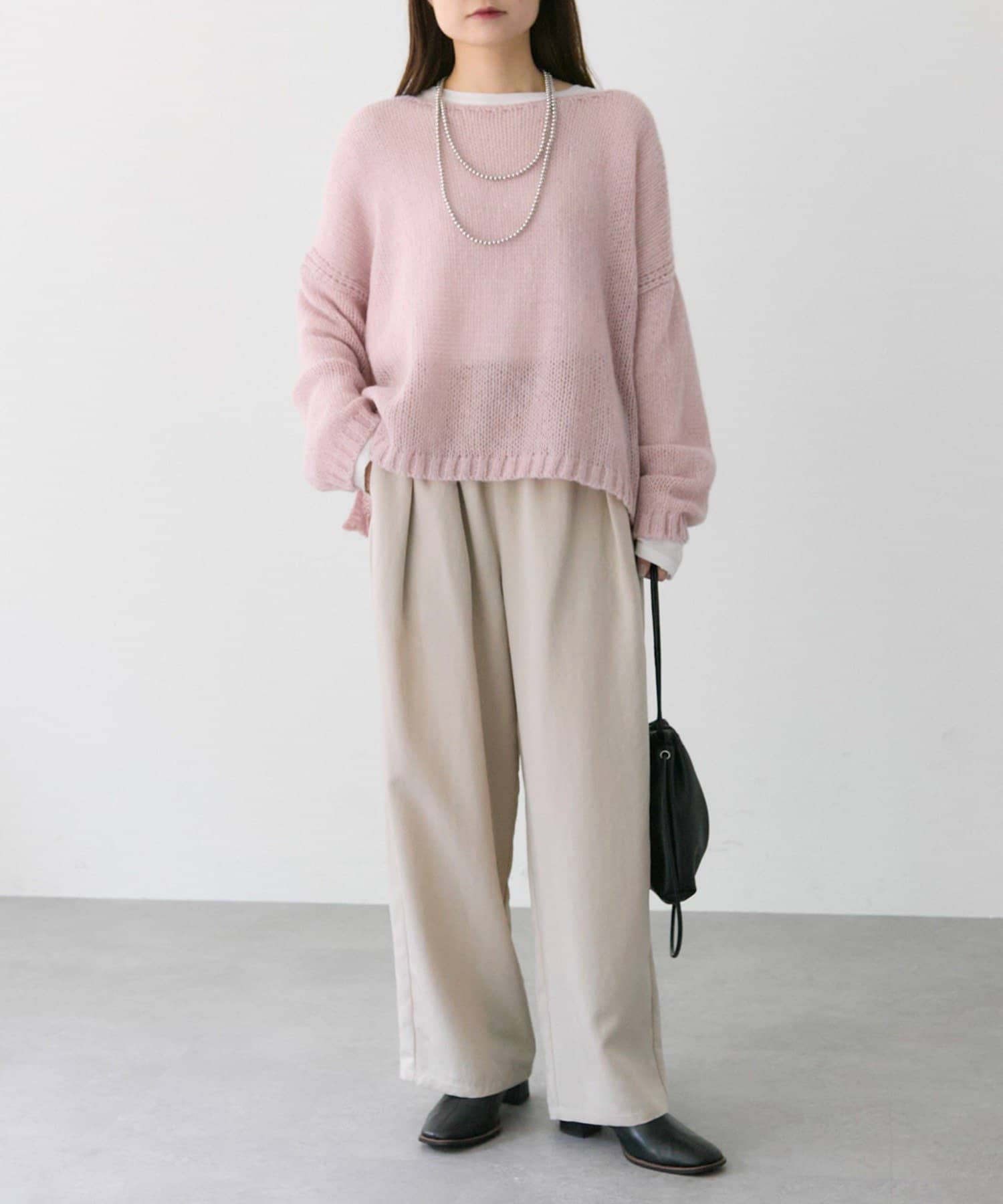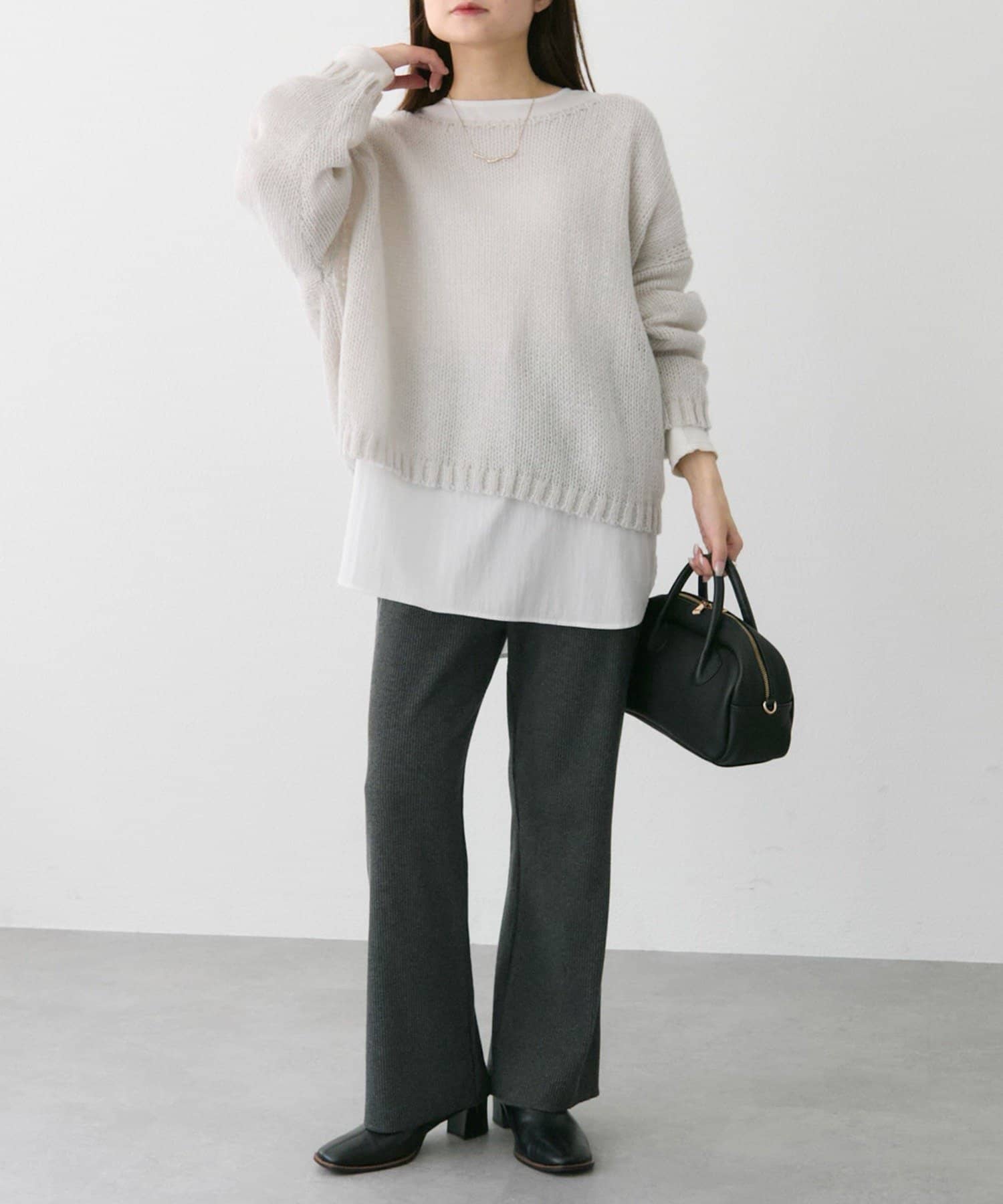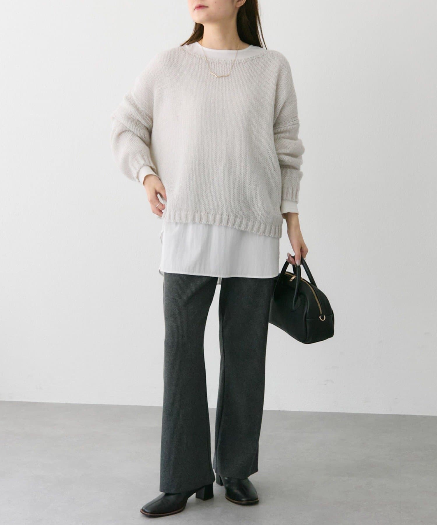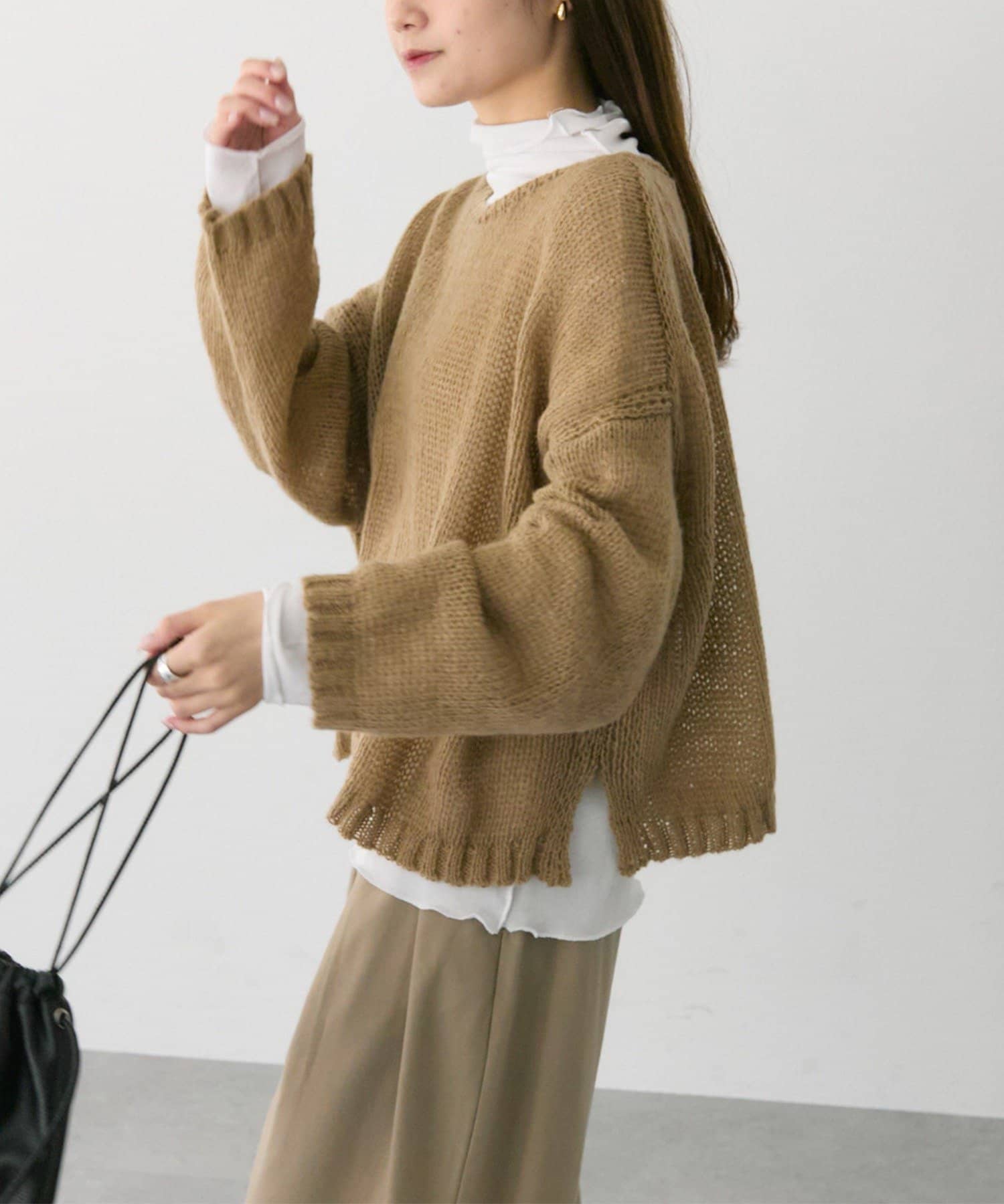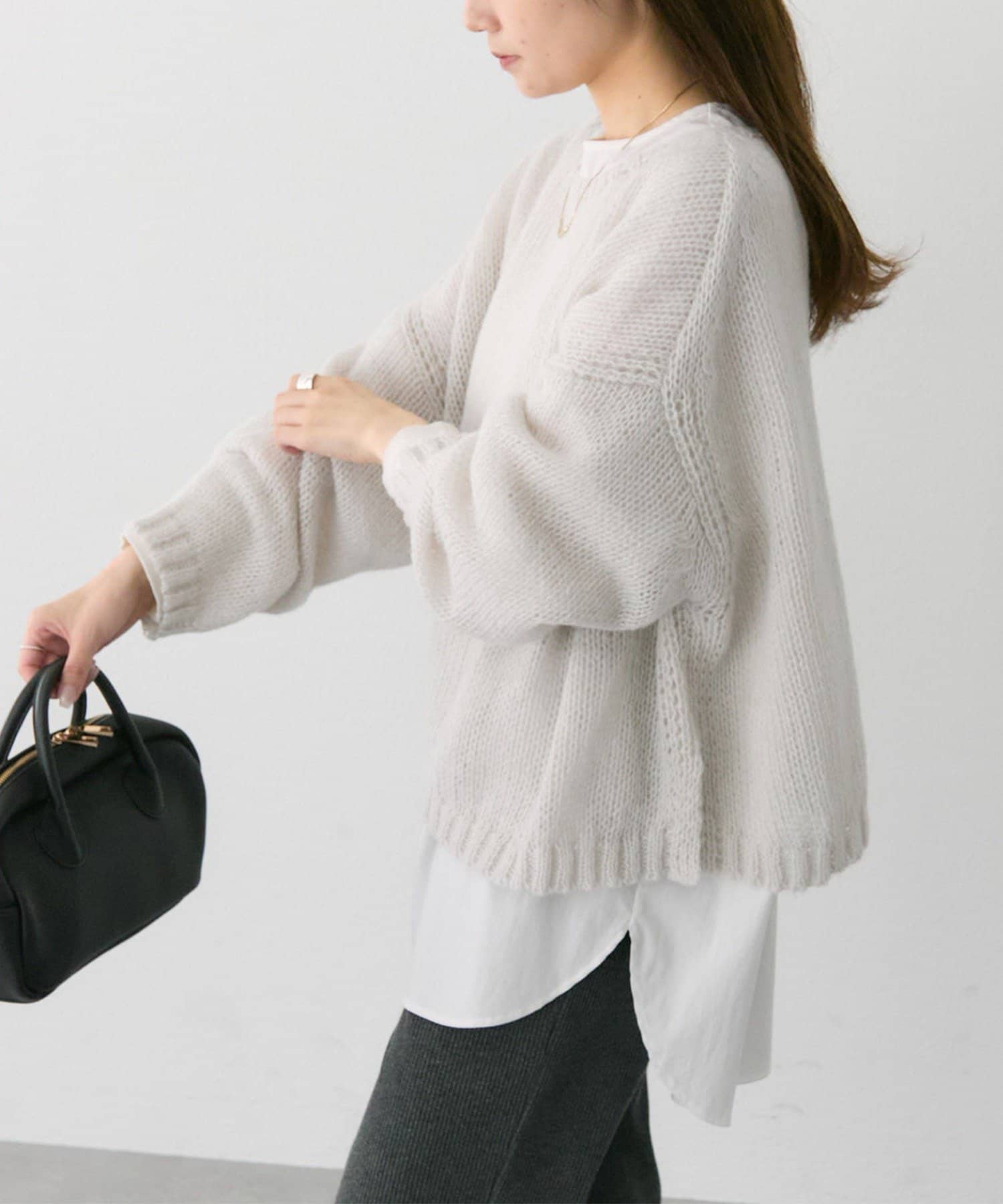 ゆったりとした薄手のニットは、レイヤードしても着ぶくれしにくくインナー選びが楽しかったです。