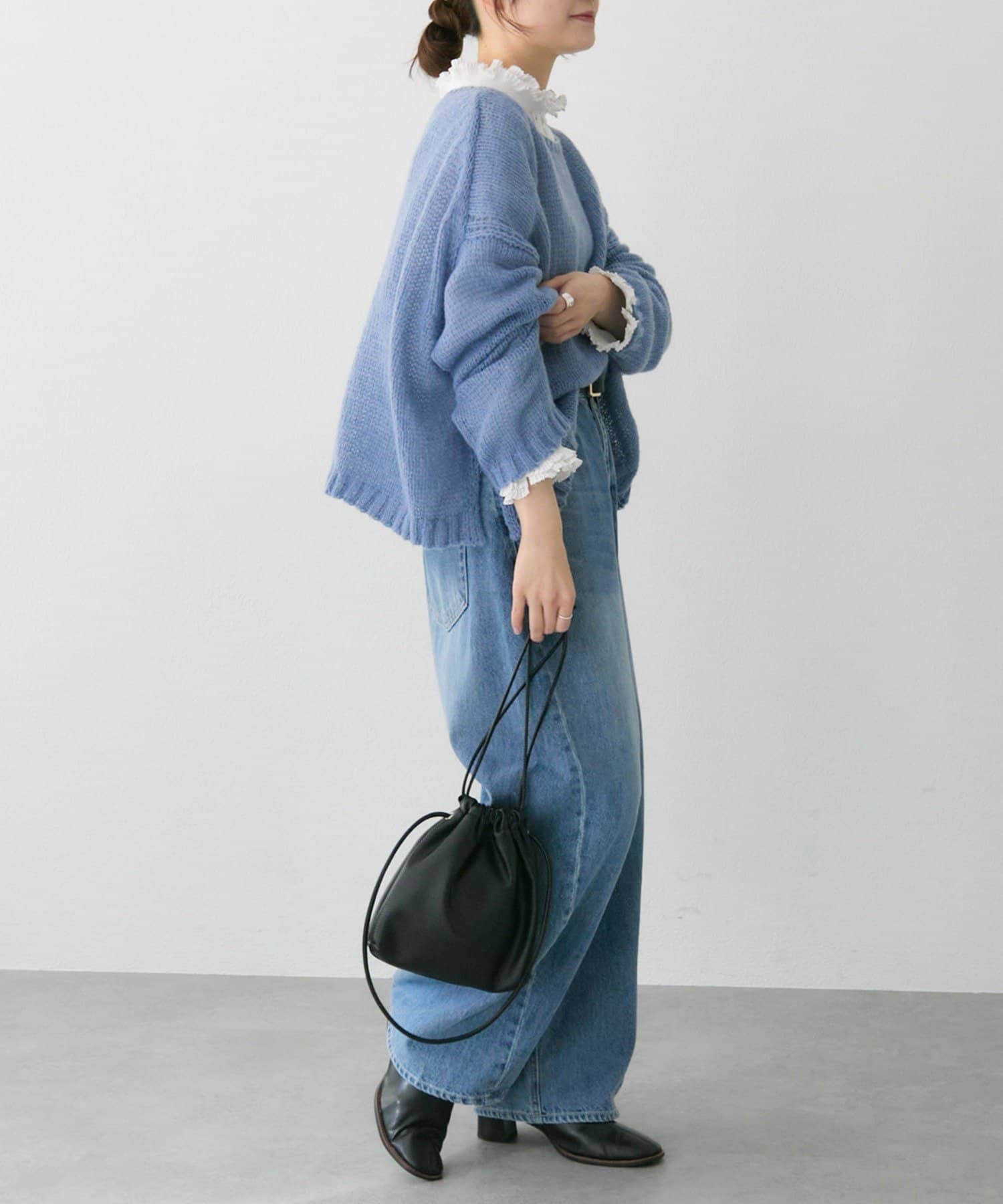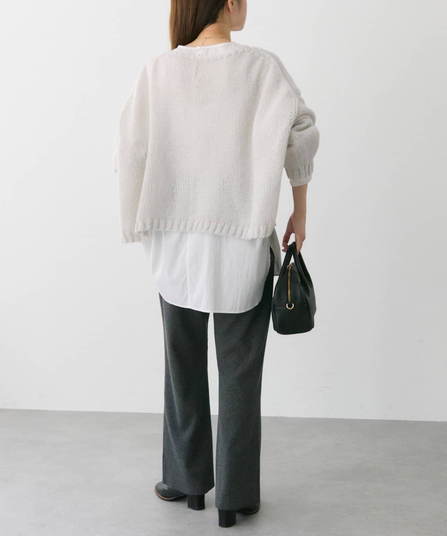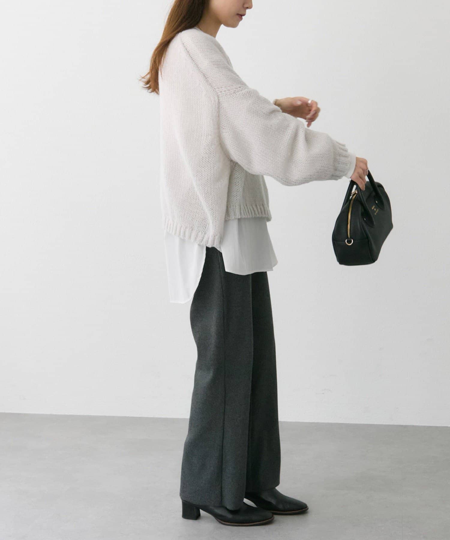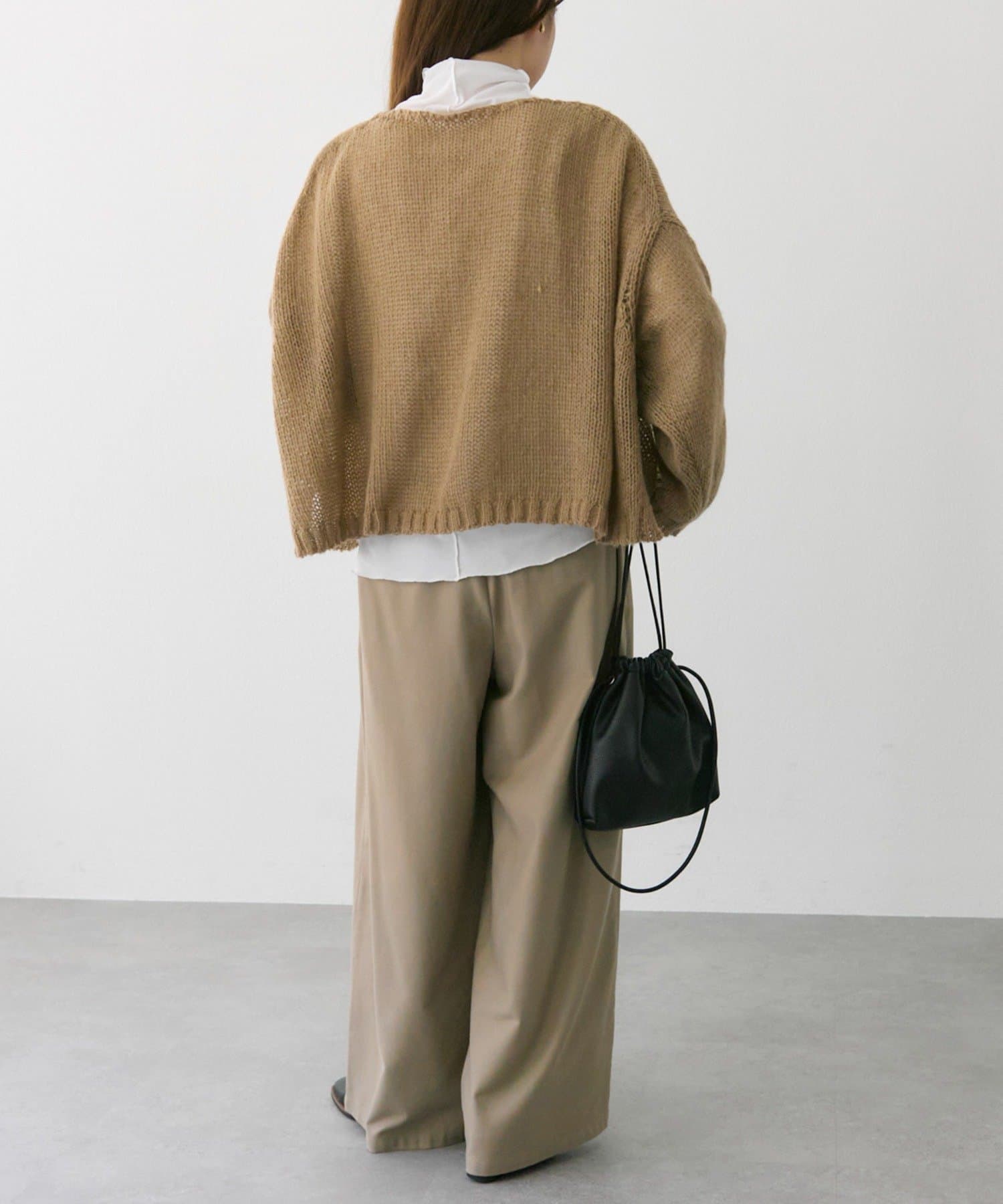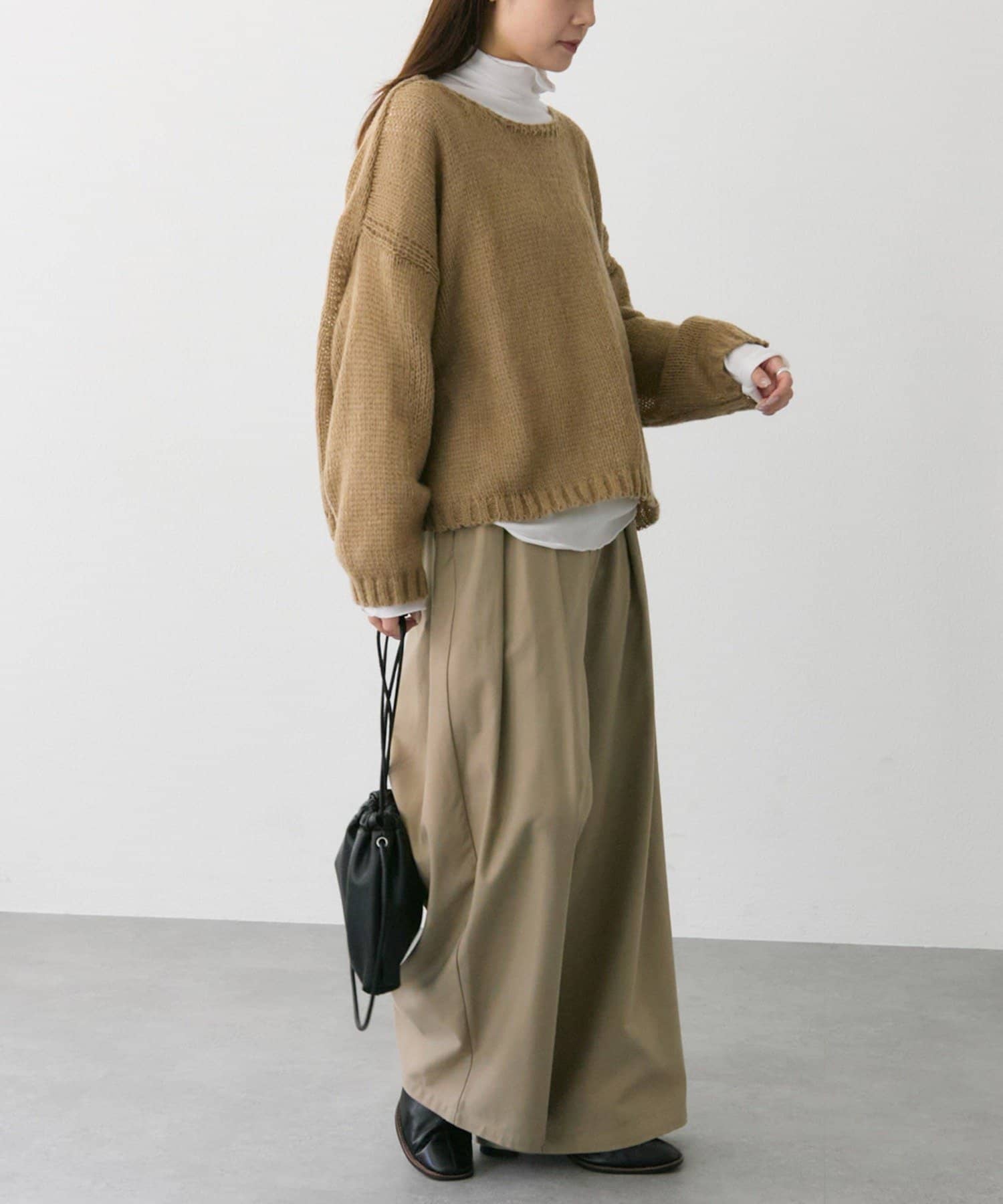着丈を短く設定することで、ゆったりフォルムのニットもスッキリと着こなしていただけます。