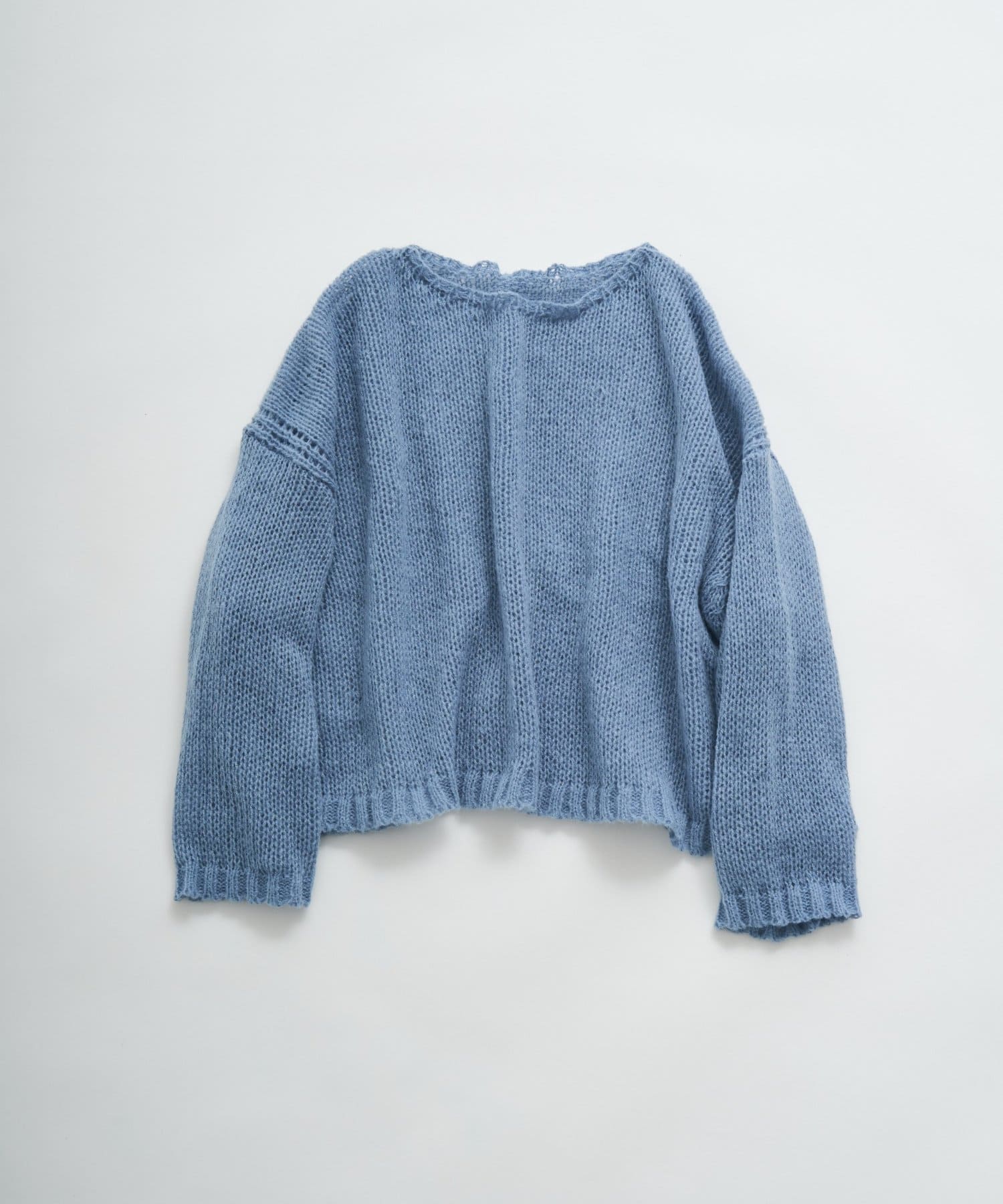 シンプルなローゲージで編まれたプルオーバーニット。