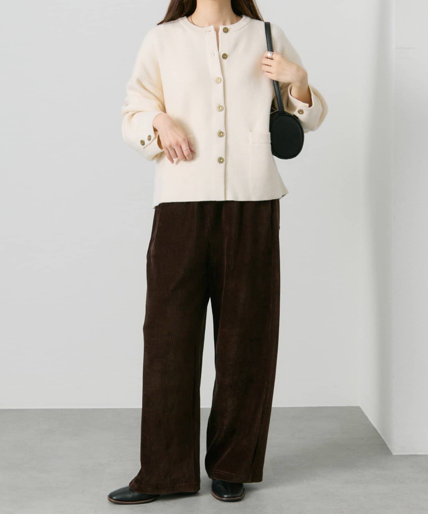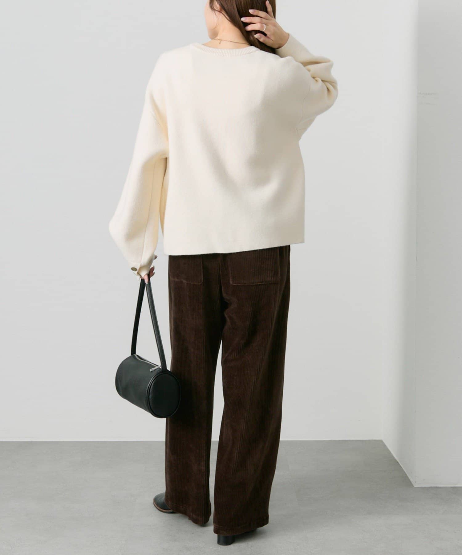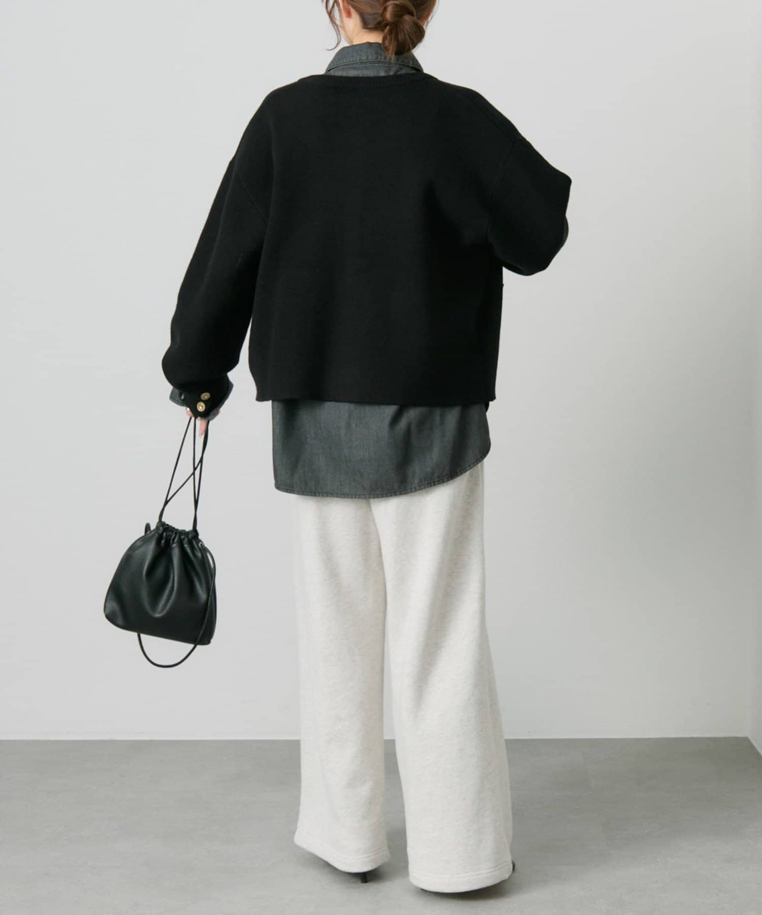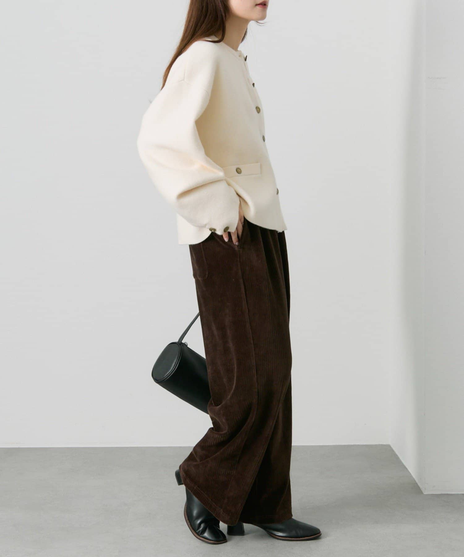 身幅やアームにゆとりを持ったサイジングなので、ブラウスやカットソーとの着合わせてもスムーズに着脱でき、気軽に羽織れます。
