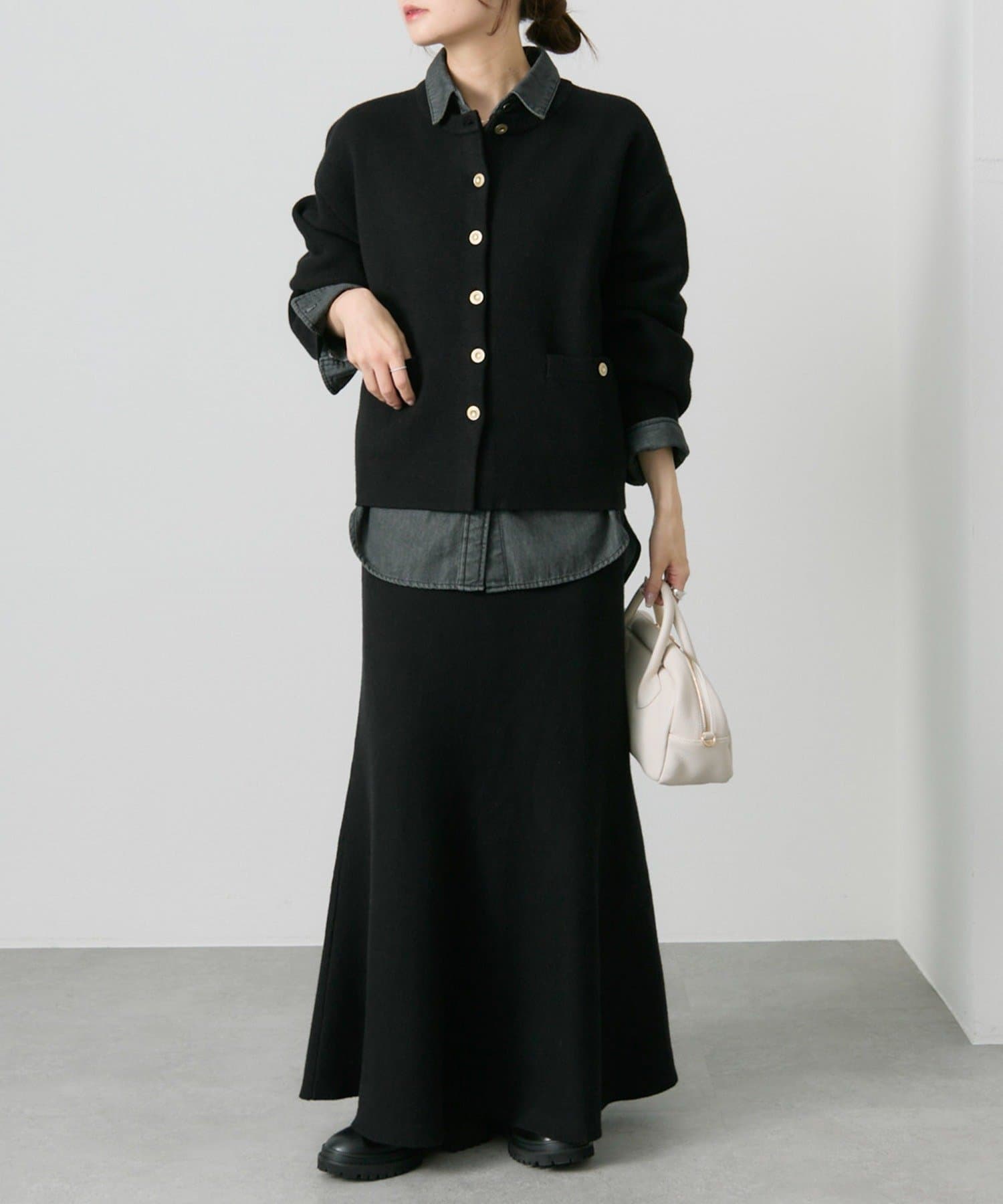 同素材のNo.0252010040のミラノリブニットスカートを合わせると、セットアップで着用して頂けます。