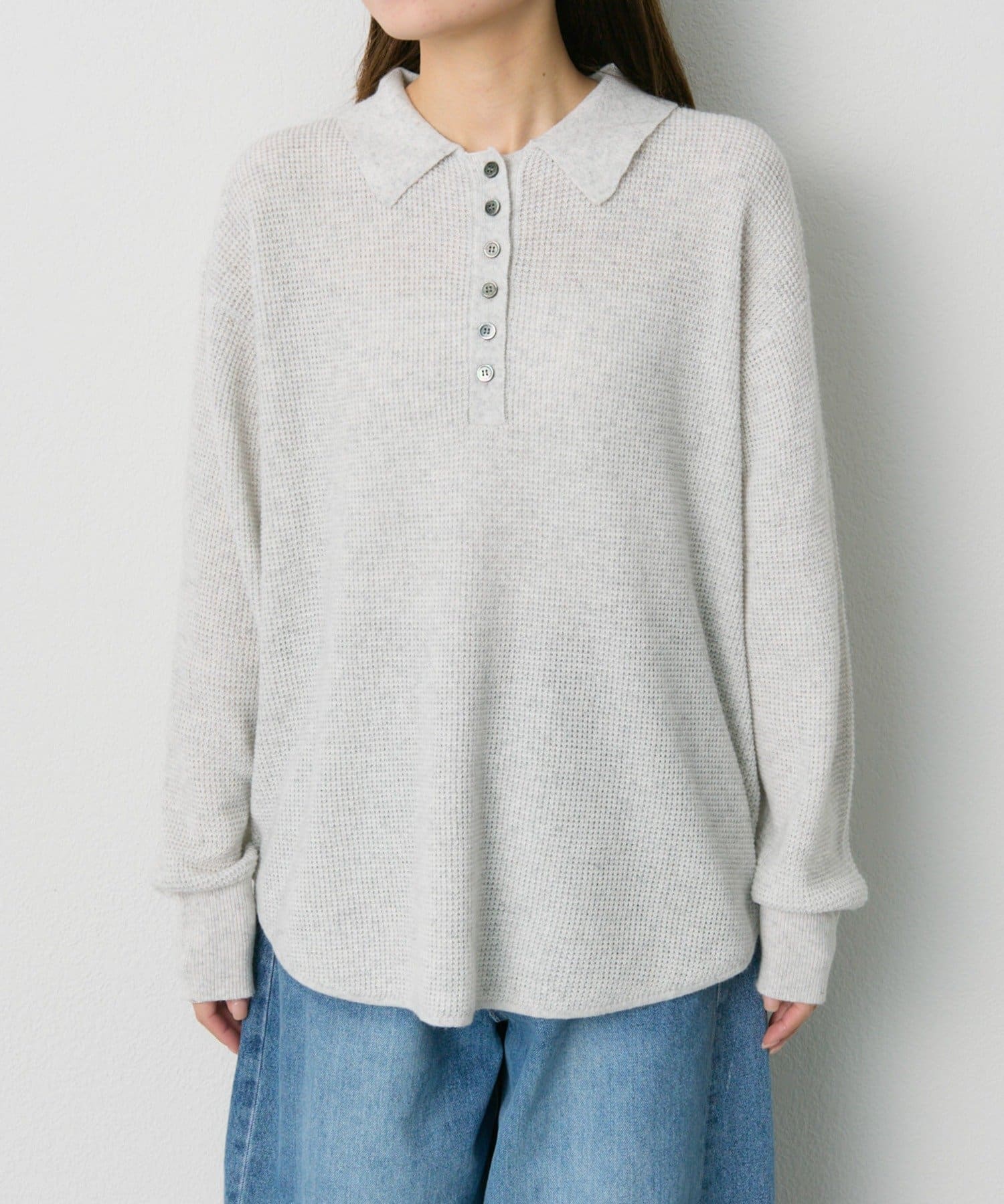ワッフルニットポロ